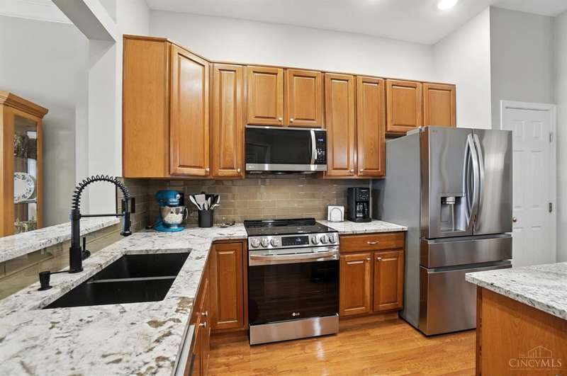 Prestigious Four Bridges living at its best! UPDATED Ranch style condo with walk-out LL offers one-floor living with a dedicated study-French doors for privacy, renovated kitchen (2020) with island seating, granite counters, SS appl (2024) subway tile backsplash, pantry & abundant cabinets. Open floorplan to dining and living room with cozy gas fireplace and walkout to 3-season deck overlooking a serene pond. Spacious Primary with en-suite updated bath (2022) and super shower! Walkout LL is perfect for entertaining-Family rm with 2nd fireplace, wet bar, a rec/media/flex space and updated full bath en-suite leading to bedroom with lots of natural light. Walk-out the LL onto the patio & enjoy the water view. Immaculately cared for and move-in Perfect. Back On Market due to Buyer financing.