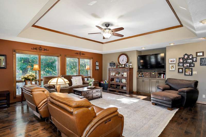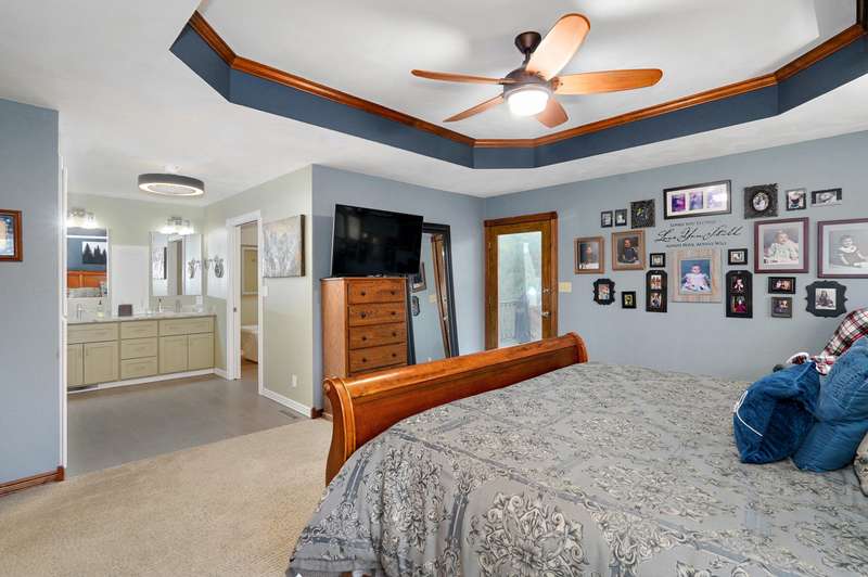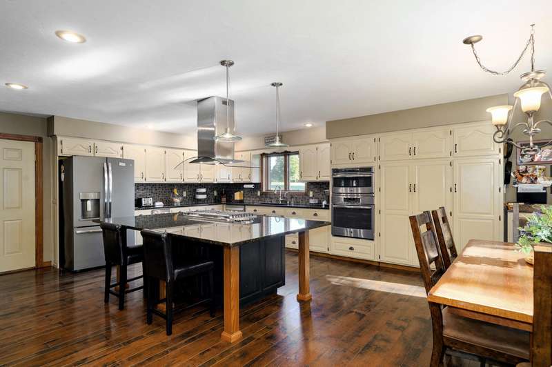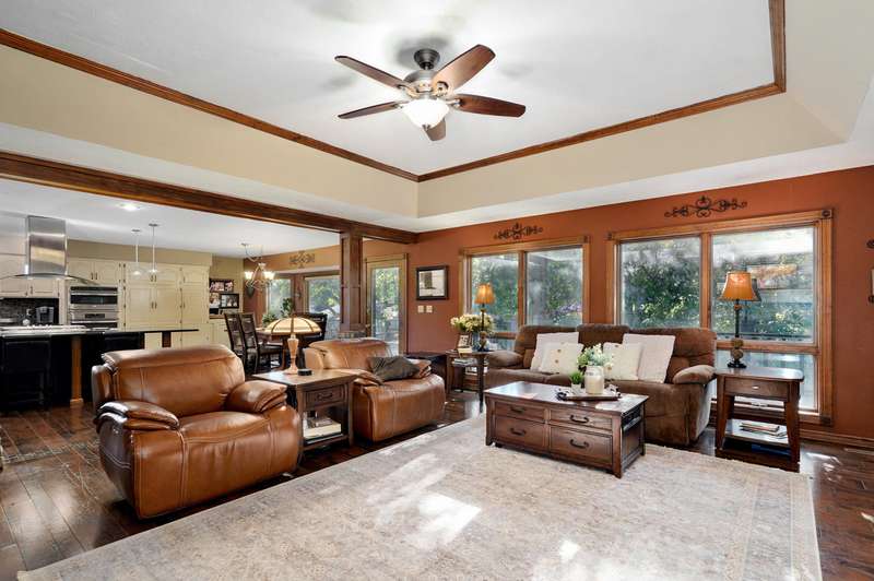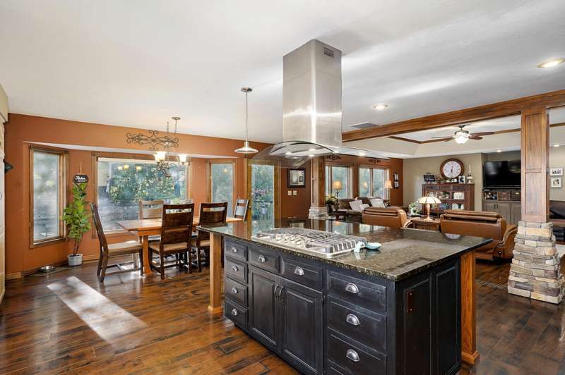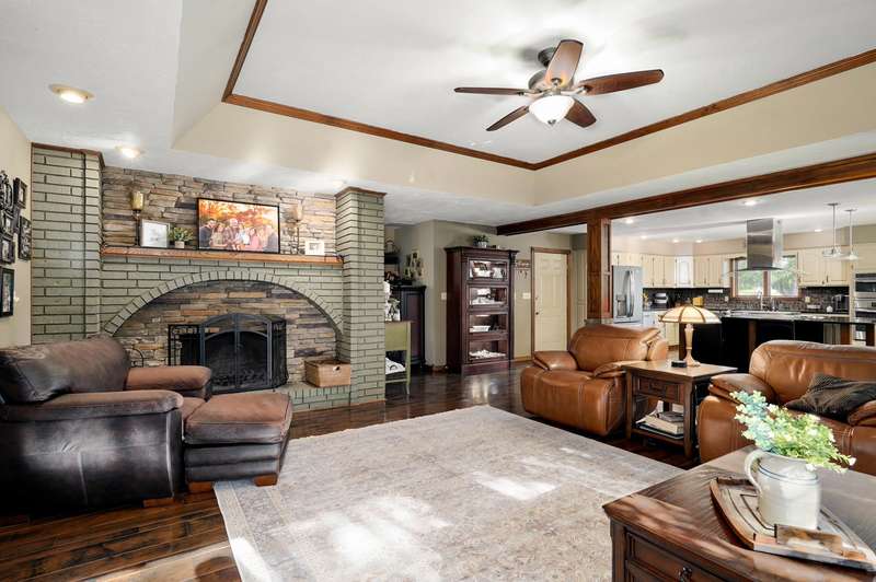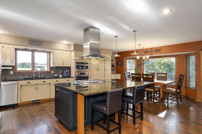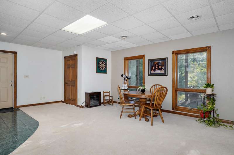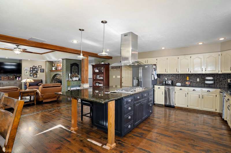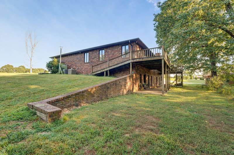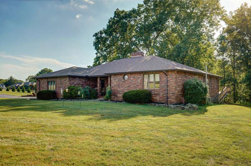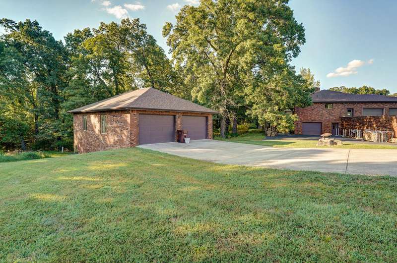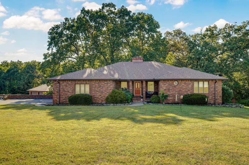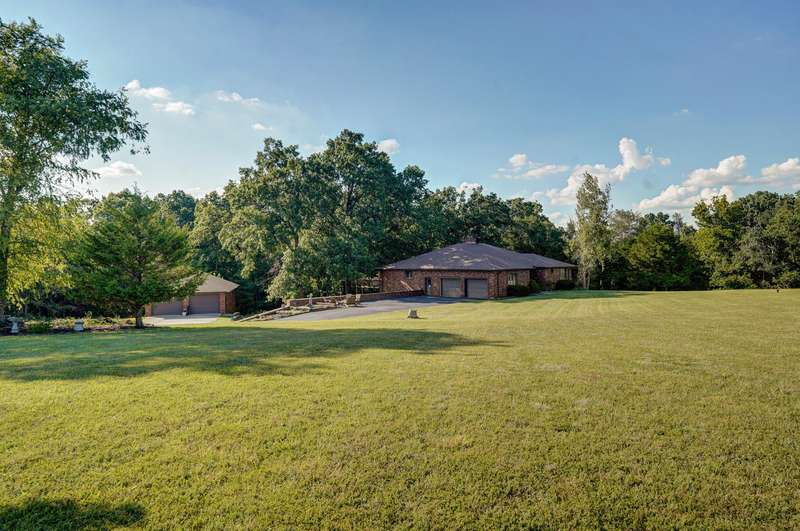 WOW!!! Great home with over 5000 sq ft and HUGE 2-STORY WORKSHOP on 4 ACRES!!! Beautifully updated walkout basement home with 4 bedrooms, 4 full baths plus half bath, 2 living areas with HANDICAP features and IN-LAW quarters backing up to woods and located on a quiet cul-de-sac. Chef's kitchen is open to living area and has lots of extras including expansive granite counters, custom cabinets, 5 burner gas cooktop, wall ovens, trash compactor, instant hot water tap, and center island with range hood! Gorgeous!! Living area boasts beautiful hardwoods, fireplace and windows overlooking wooded backyard. 2 Large Master Suites on main level! Primary master features walk-in closet, walk-in shower & soaking tub. Second master suite includes walk-in closet & zero entry shower. 3rd Bedroom, another full bath and 2 laundry facilities also on main level. Basement boasts a huge family room with SECOND KITCHEN, expansive wet bar and wood burning stove that is ducted to the whole house! One more huge bedroom with built in shelving & desk (non-conforming with no window) and full bath plus office plus lots of storage complete the basement. Two car garage on main level with additional oversized garage in basement too! There's also a generator inter-connect hook-up. BUT NOW THE WORKSHOP!! Over 3000 sq ft, with mini-split heat & ac, cement flooring, single phase electric, built-in workbench, welding exhaust fan, mechanics pit, & 4 garage doors... 2 up and 2 down. 4 YEAR OLD ROOF & NEWER HVAC TOO!! Just a few minutes outside Nixa in award winning Nixa schools.