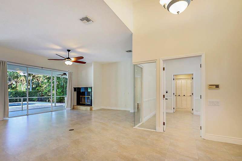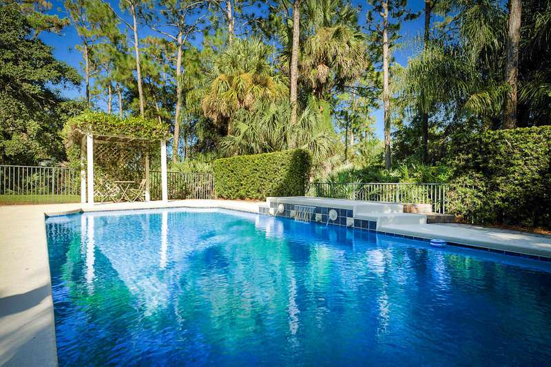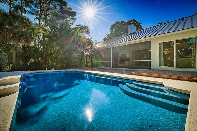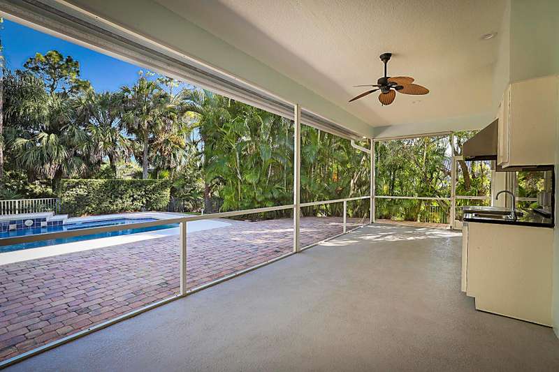 Escape to peaceful living in Old Trail at Ranch Colony--a gated community with 24/7 manned security and two of Jonathan's Landing championship golf courses. This 3BR/2BA home sits on 3/4 acre on the 14th hole of the Medal Course with a private pool, screen-enclosed patio, and summer kitchen. Features include a brand-new roof, fresh interior/exterior paint, fireplace, and wet bar for entertaining. The master bath offers new vanities, and the 3-car garage includes a golf cart bay. Enjoy serene views, nature, and quiet surroundings in this exceptional home--perfect for golfers and those who love a tranquil, country setting close to Jupiter's best amenities.