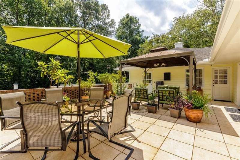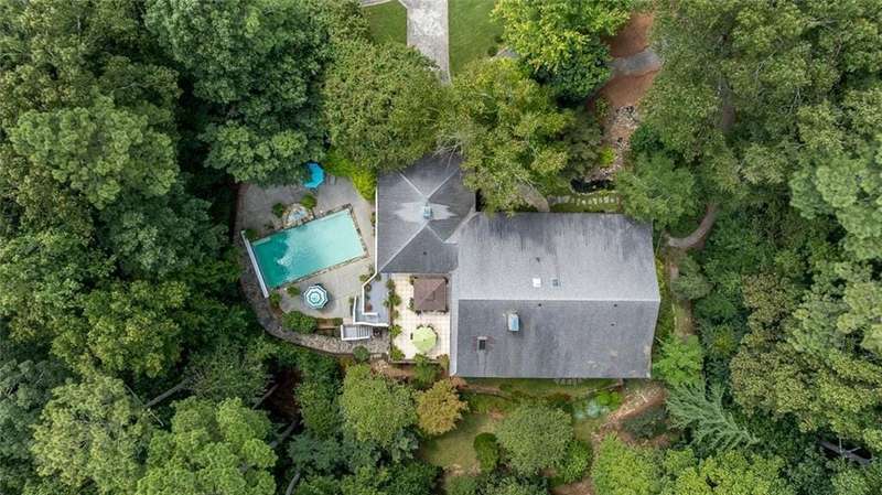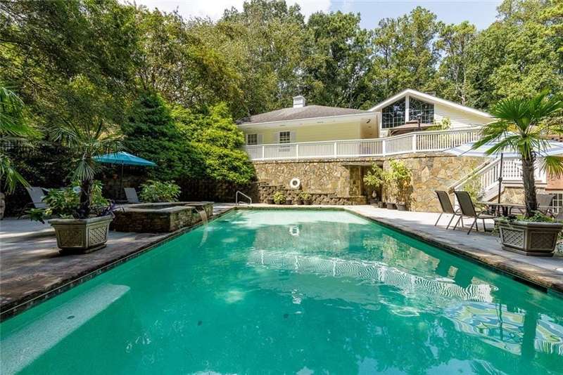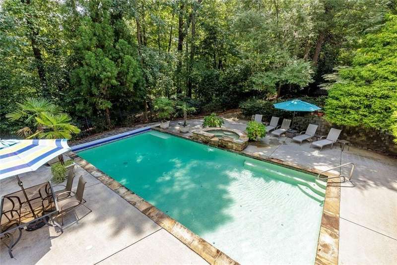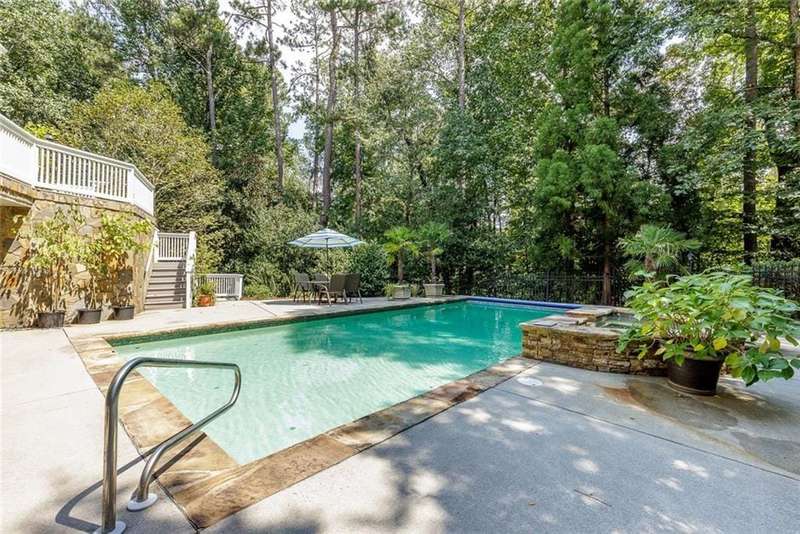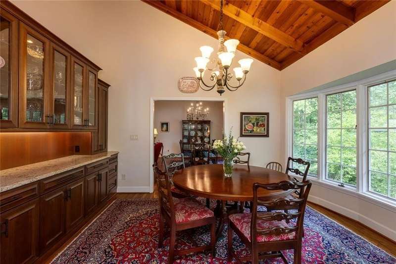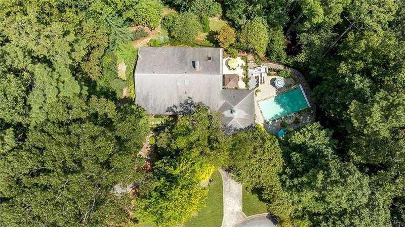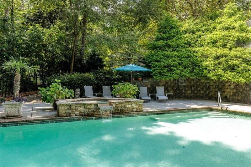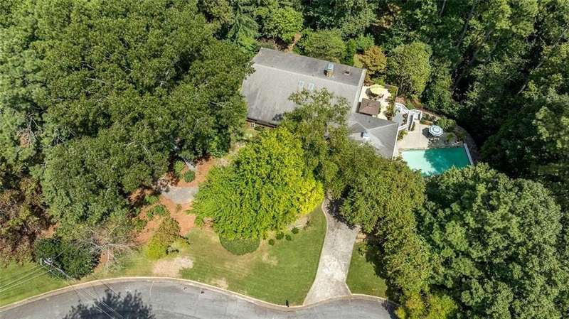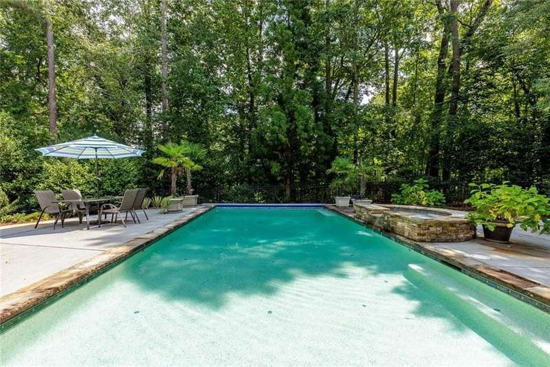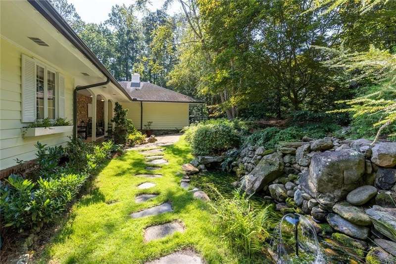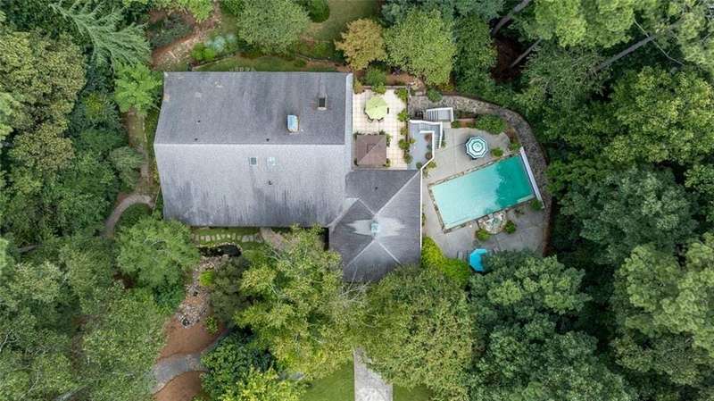 Discover an extraordinary one-and-a-half story custom residence, perfectly tucked away on a picturesque, professionally landscaped estate-sized cul-de-sac lot of over an acre. A private sanctuary, this property offers terraced walkways, lush gardens, and a serene backyard retreat with a heated Pebble Tec pool, waterfall spa, custom stonework, and seasonal views of Lake Northridge. Every detail inside and out reflects timeless craftsmanship and thoughtful design. The home welcomes with a charming front porch and tranquil fish pond, opening into a dramatic two-story stone foyer. Vaulted, beamed tongue-and-groove ceilings, expansive casement windows, and gleaming hardwood floors create a warm and airy flow throughout. The open-concept living and dining rooms boast soaring 20 ceilings, while the beautifully renovated kitchen is a chefs dreamcustom cabinetry with Rev-a-Chef accessories, quartzite countertops, tile backsplash, center island with seating, stainless steel appliances including gas cooktop and vent hood, microwave drawer, and a convenient Butlers Pantry. A separate breakfast room offers the perfect everyday gathering spot, while the spacious family roomwith its Palladian window, stacked-stone fireplace, and wet baropens directly to the terrace, blending indoor and outdoor living for effortless entertaining. The terrace itself overlooks the sparkling heated pool and fenced backyard, designed for both relaxation and family enjoyment. Features include lighted walkways and stairs, a pool cabana conveniently located off the terrace, pool storage, custom stone terraces, Trex decking, an automatic pool cover, and Jandy Aqua Link RS systemall creating a resort-like setting for gatherings large or small. The main-level primary suite offers a peaceful retreat with his-and-hers closets and a spa-like bath. Two additional bedrooms (one with custom built-ins) share a hall bath, while a large laundry room enhances main-level convenience. Upstairs, a light-filled loft with skylights overlooks the living room, alongside a spacious bedroom with full bath and generous walk-in attic storage. The terrace level features soaring ceilings and a fully equipped in-law suite/apartment with private entrance, including living and dining rooms, a full kitchen, bedroom, and full bath with step-less shower, plus abundant storage and workshop space. This exceptional property is ideally located near top-rated public and private schools, shopping, and dining, with easy access to Sandy Springs City Center, Dunwoody Village, downtown Roswell and Alpharetta, and GA 400. Residents enjoy a private neighborhood entrance to the scenic Island Ford Chattahoochee River Park, as well as proximity to Dunwoody Golf & Country Club. A rare offering, this home combines the beauty of nature, architectural distinction, and versatile family living into one unforgettable estate.