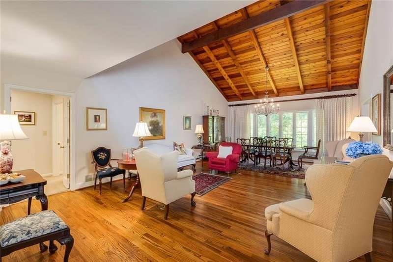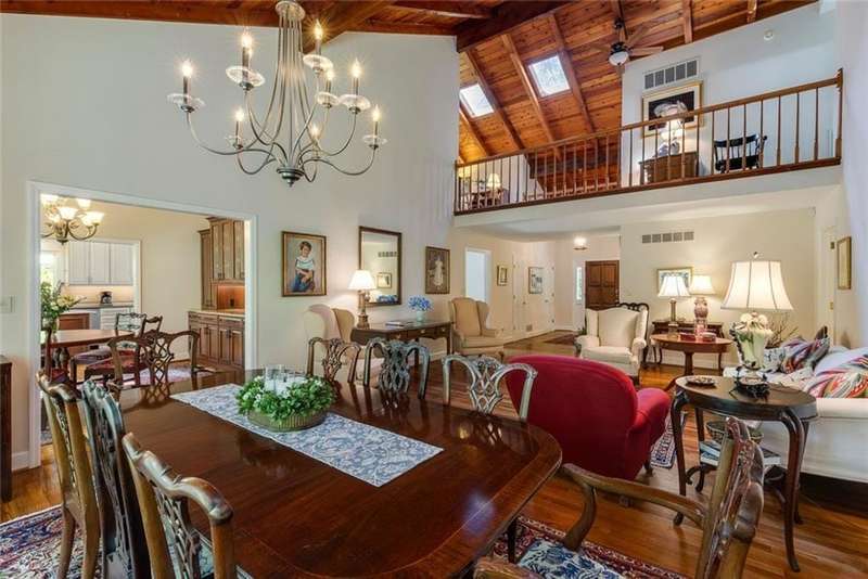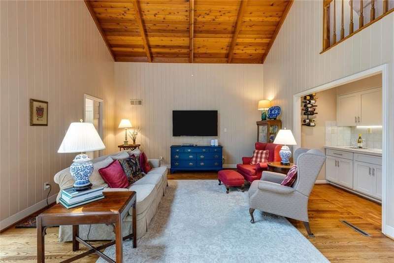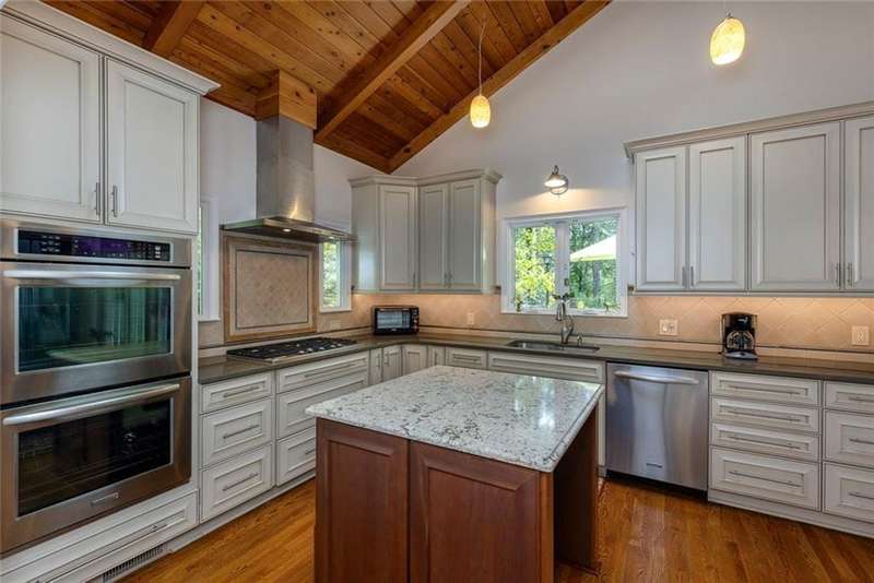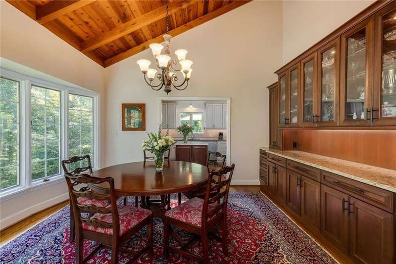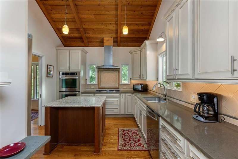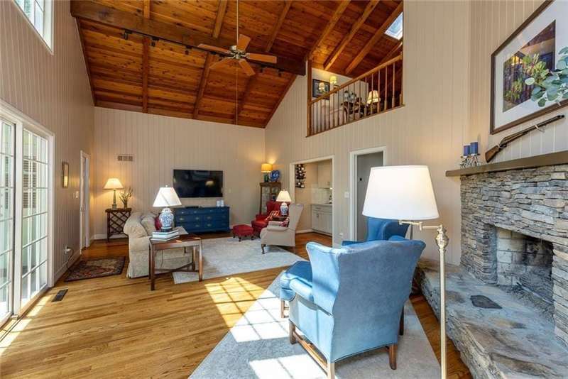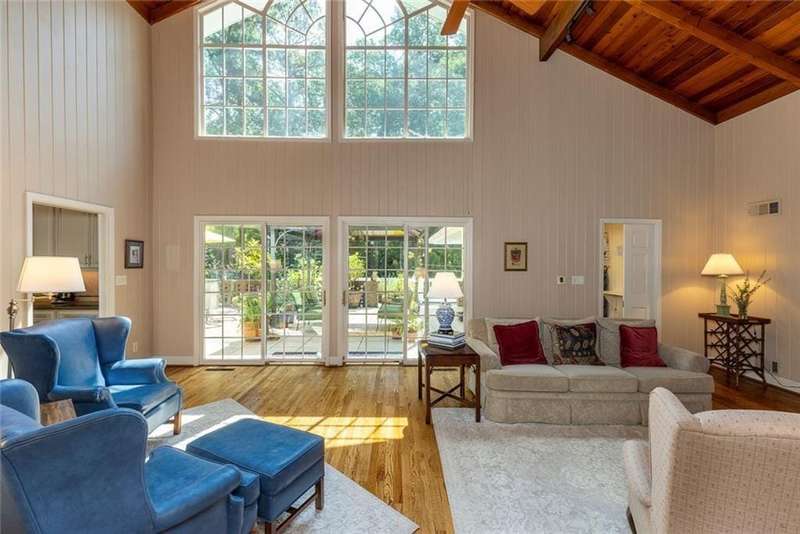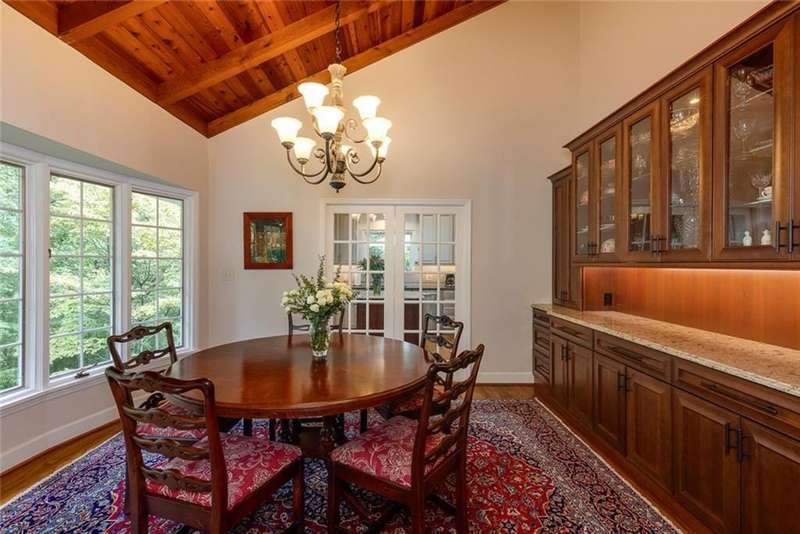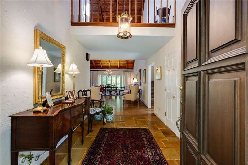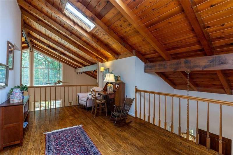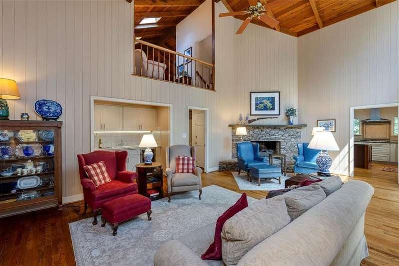Discover an extraordinary one-and-a-half story custom residence, perfectly tucked away on a picturesque, professionally landscaped estate-sized cul-de-sac lot of over an acre. A private sanctuary, this property offers terraced walkways, lush gardens, and a serene backyard retreat with a heated Pebble Tec pool, waterfall spa, custom stonework, and seasonal views of Lake Northridge. Every detail inside and out reflects timeless craftsmanship and thoughtful design. The home welcomes with a charming front porch and tranquil fish pond, opening into a dramatic two-story stone foyer. Vaulted, beamed tongue-and-groove ceilings, expansive casement windows, and gleaming hardwood floors create a warm and airy flow throughout. The open-concept living and dining rooms boast soaring 20 ceilings, while the beautifully renovated kitchen is a chefs dreamcustom cabinetry with Rev-a-Chef accessories, quartzite countertops, tile backsplash, center island with seating, stainless steel appliances including gas cooktop and vent hood, microwave drawer, and a convenient Butlers Pantry. A separate breakfast room offers the perfect everyday gathering spot, while the spacious family roomwith its Palladian window, stacked-stone fireplace, and wet baropens directly to the terrace, blending indoor and outdoor living for effortless entertaining. The terrace itself overlooks the sparkling heated pool and fenced backyard, designed for both relaxation and family enjoyment. Features include lighted walkways and stairs, a pool cabana conveniently located off the terrace, pool storage, custom stone terraces, Trex decking, an automatic pool cover, and Jandy Aqua Link RS systemall creating a resort-like setting for gatherings large or small. The main-level primary suite offers a peaceful retreat with his-and-hers closets and a spa-like bath. Two additional bedrooms (one with custom built-ins) share a hall bath, while a large laundry room enhances main-level convenience. Upstairs, a light-filled loft with skylights overlooks the living room, alongside a spacious bedroom with full bath and generous walk-in attic storage. The terrace level features soaring ceilings and a fully equipped in-law suite/apartment with private entrance, including living and dining rooms, a full kitchen, bedroom, and full bath with step-less shower, plus abundant storage and workshop space. This exceptional property is ideally located near top-rated public and private schools, shopping, and dining, with easy access to Sandy Springs City Center, Dunwoody Village, downtown Roswell and Alpharetta, and GA 400. Residents enjoy a private neighborhood entrance to the scenic Island Ford Chattahoochee River Park, as well as proximity to Dunwoody Golf & Country Club. A rare offering, this home combines the beauty of nature, architectural distinction, and versatile family living into one unforgettable estate.