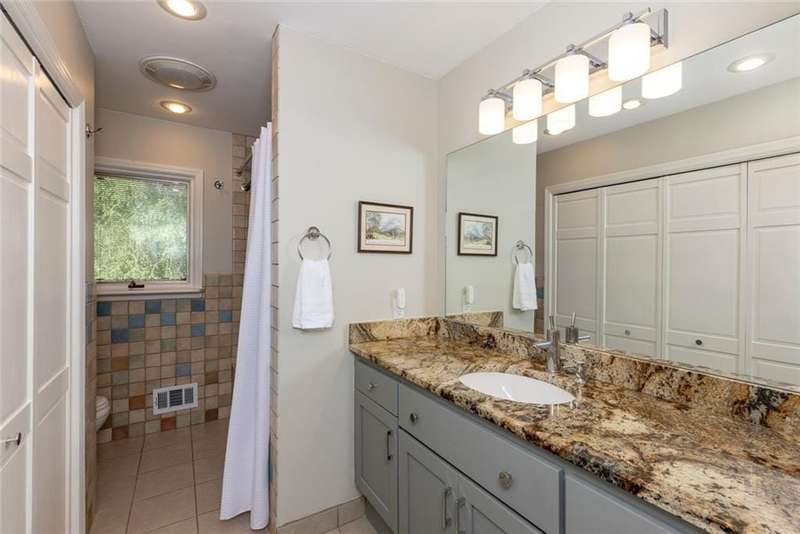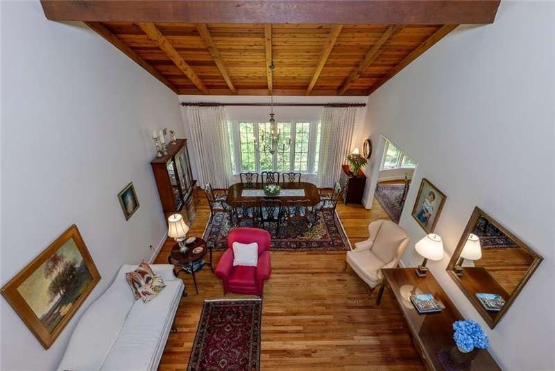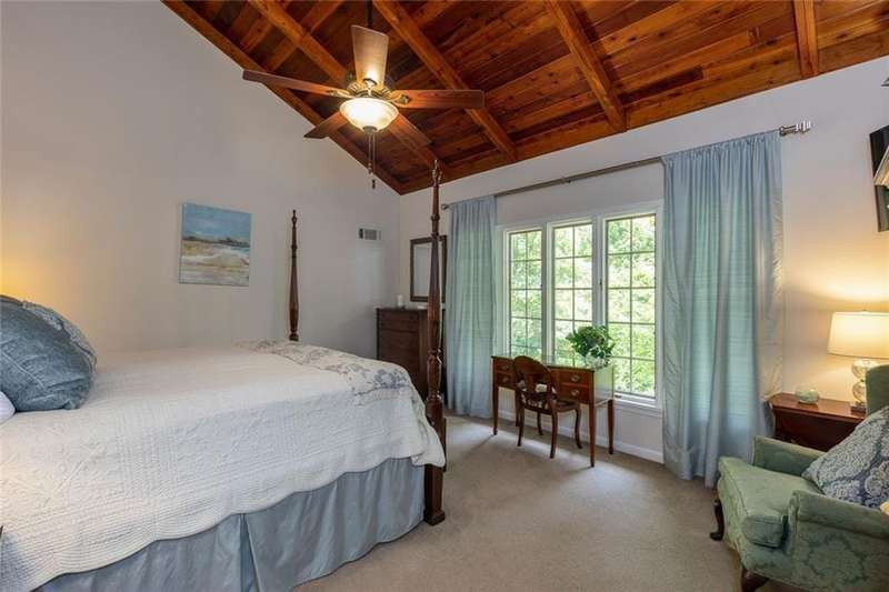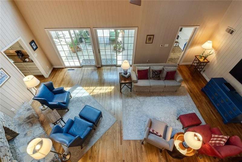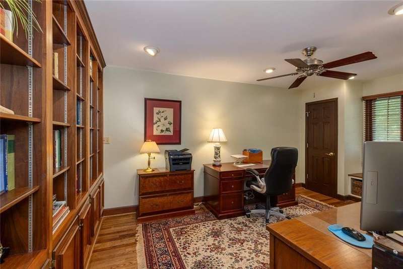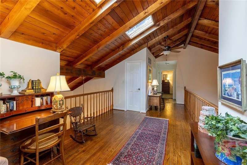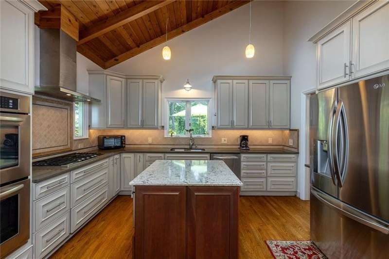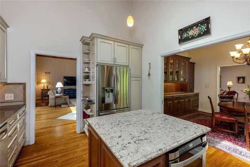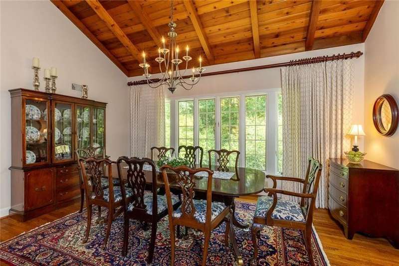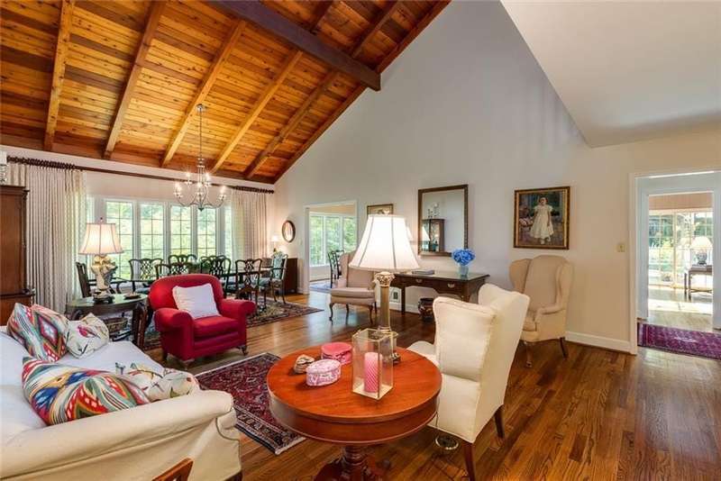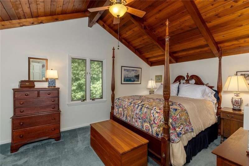 Discover an extraordinary one-and-a-half story custom residence, perfectly tucked away on a picturesque, professionally landscaped estate-sized cul-de-sac lot of over an acre. A private sanctuary, this property offers terraced walkways, lush gardens, and a serene backyard retreat with a heated Pebble Tec pool, waterfall spa, custom stonework, and seasonal views of Lake Northridge. Every detail inside and out reflects timeless craftsmanship and thoughtful design. The home welcomes with a charming front porch and tranquil fish pond, opening into a dramatic two-story stone foyer. Vaulted, beamed tongue-and-groove ceilings, expansive casement windows, and gleaming hardwood floors create a warm and airy flow throughout. The open-concept living and dining rooms boast soaring 20 ceilings, while the beautifully renovated kitchen is a chefs dreamcustom cabinetry with Rev-a-Chef accessories, quartzite countertops, tile backsplash, center island with seating, stainless steel appliances including gas cooktop and vent hood, microwave drawer, and a convenient Butlers Pantry. A separate breakfast room offers the perfect everyday gathering spot, while the spacious family roomwith its Palladian window, stacked-stone fireplace, and wet baropens directly to the terrace, blending indoor and outdoor living for effortless entertaining. The terrace itself overlooks the sparkling heated pool and fenced backyard, designed for both relaxation and family enjoyment. Features include lighted walkways and stairs, a pool cabana conveniently located off the terrace, pool storage, custom stone terraces, Trex decking, an automatic pool cover, and Jandy Aqua Link RS systemall creating a resort-like setting for gatherings large or small. The main-level primary suite offers a peaceful retreat with his-and-hers closets and a spa-like bath. Two additional bedrooms (one with custom built-ins) share a hall bath, while a large laundry room enhances main-level convenience. Upstairs, a light-filled loft with skylights overlooks the living room, alongside a spacious bedroom with full bath and generous walk-in attic storage. The terrace level features soaring ceilings and a fully equipped in-law suite/apartment with private entrance, including living and dining rooms, a full kitchen, bedroom, and full bath with step-less shower, plus abundant storage and workshop space. This exceptional property is ideally located near top-rated public and private schools, shopping, and dining, with easy access to Sandy Springs City Center, Dunwoody Village, downtown Roswell and Alpharetta, and GA 400. Residents enjoy a private neighborhood entrance to the scenic Island Ford Chattahoochee River Park, as well as proximity to Dunwoody Golf & Country Club. A rare offering, this home combines the beauty of nature, architectural distinction, and versatile family living into one unforgettable estate.