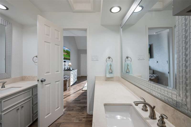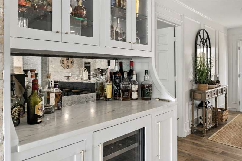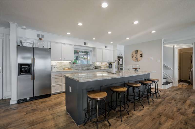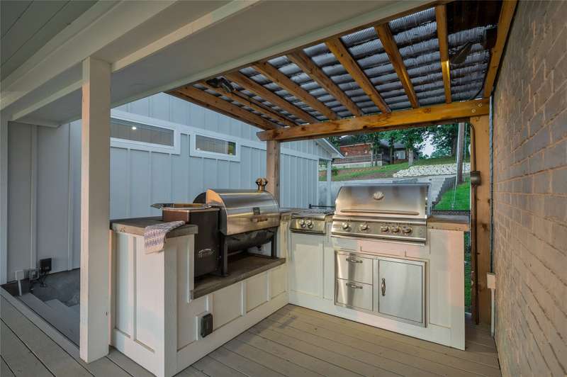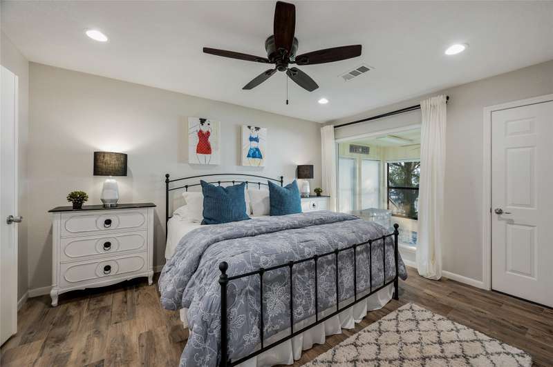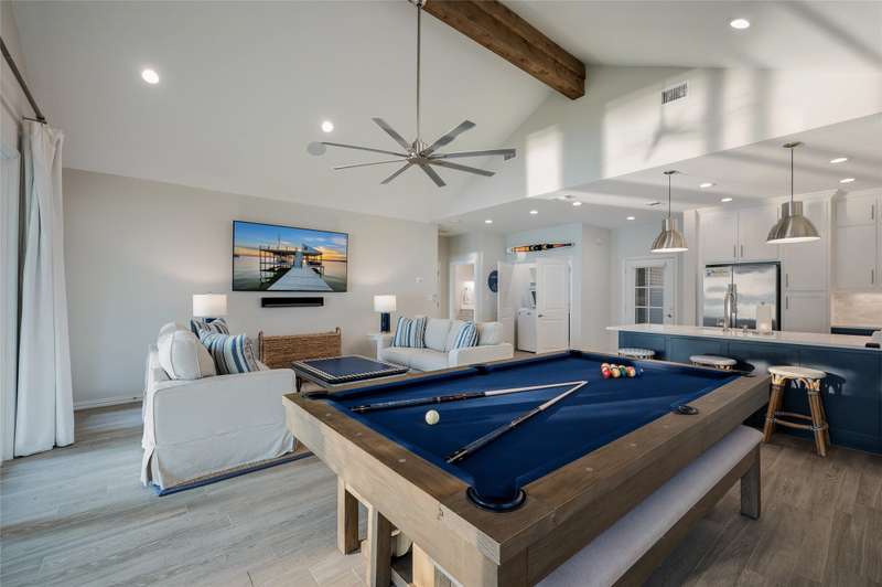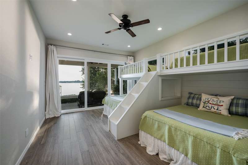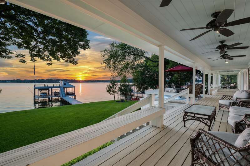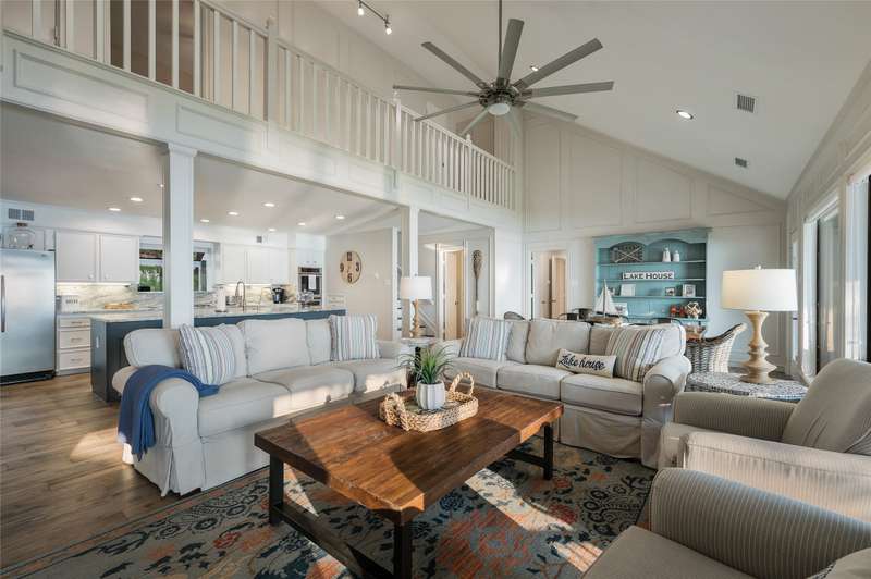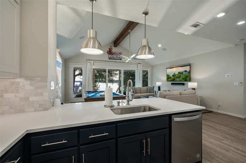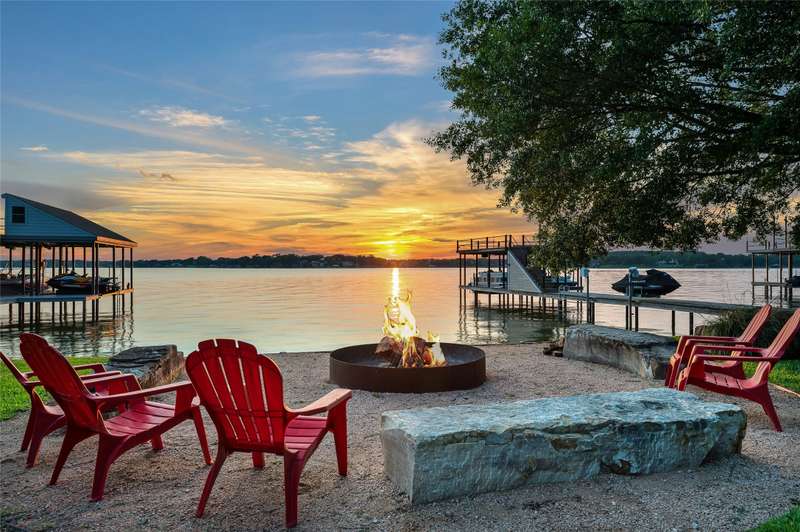 Stunning double lot estate with main home and guest house totaling 3,165 sf on one-half acre with wide open water views and some of the deepest water you'll find on Cedar Creek Lake. This tastefully updated home gives modern, coastal vibes and has room to sleep and entertain a crowd. The main home has 4 bedrooms, 3 and 1 half baths, soaring vaulted ceilings, wood-burning fireplace, built-in bar with wine cooler, a sunroom that can double as a guest bedroom, full utility room, and walls of glass to the lake. The guest house, built in 2019, shares a deck with outdoor kitchen and includes a bunkroom and full bathroom, kitchen, and laundry. The large, updated boathouse has two boat slips - one is equipped with heavy duty, double cable, double motor lift system for your wake boat - double Sea-Doo lift, and plenty of storage for all your water toys. Extras include a touchless boat cover, spider misting system, sprinkler system from lake pump, golf cart garage, under deck storage with work bench and professional landscaping with outdoor lighting, and a beautiful firepit area at the water's edge to enjoy amazing sunsets.