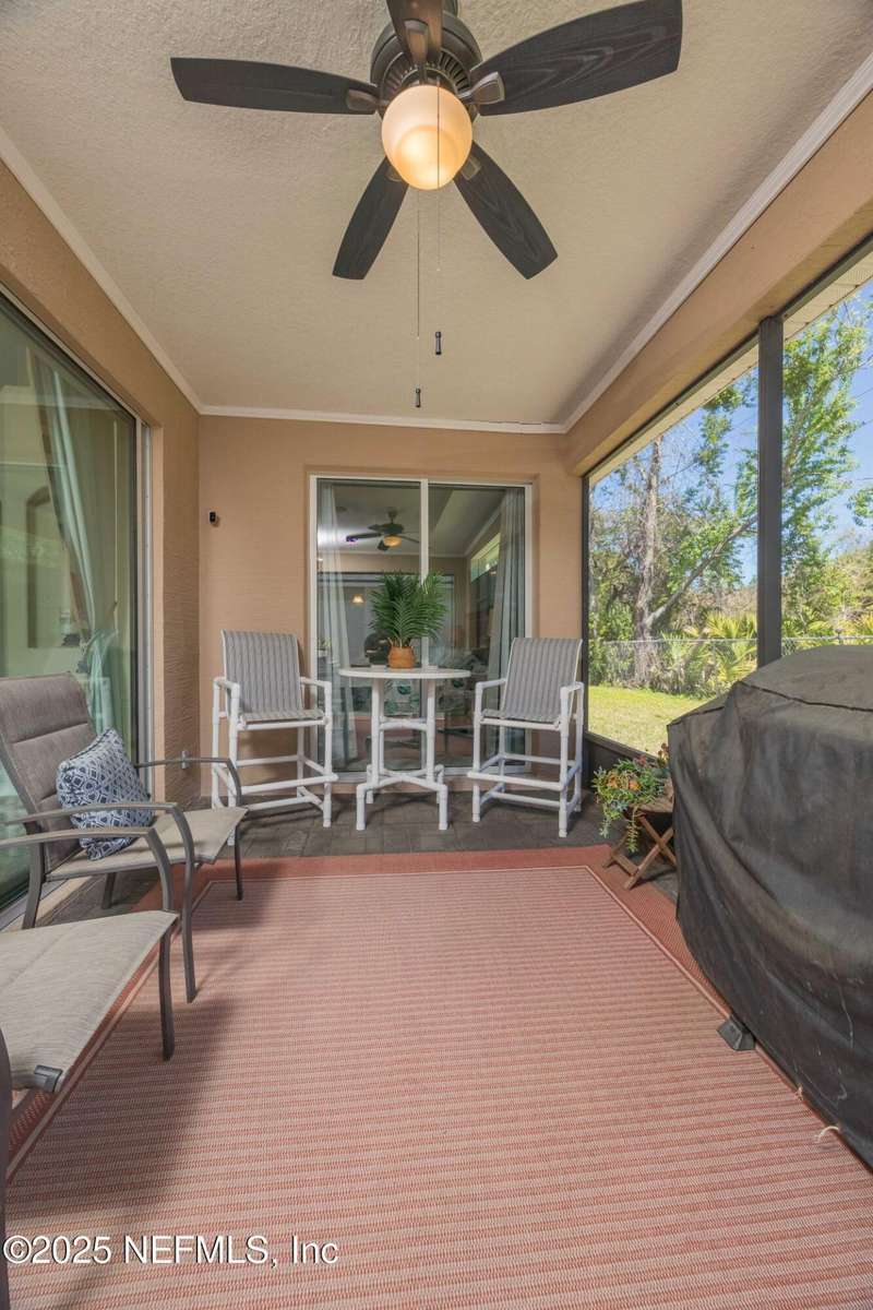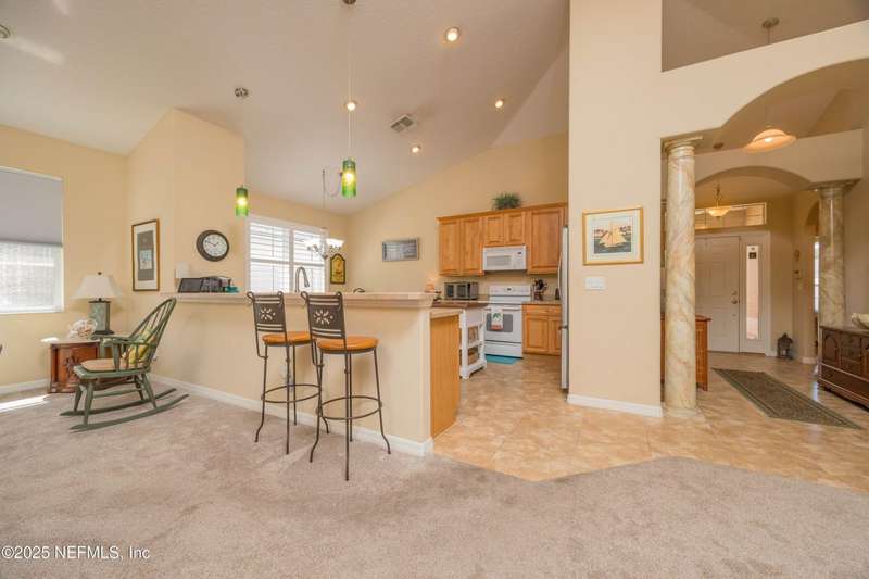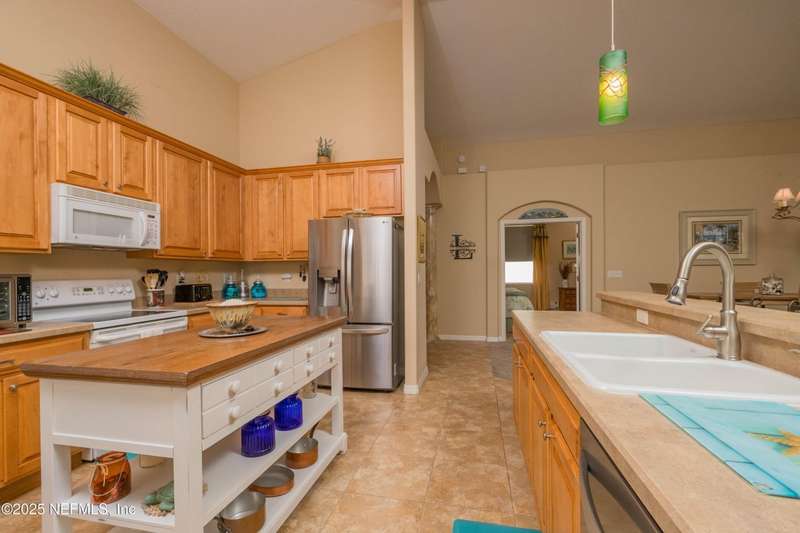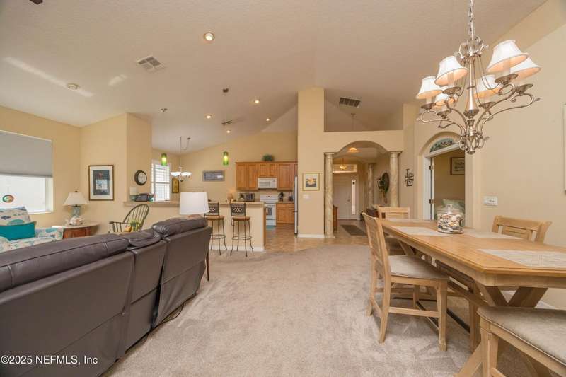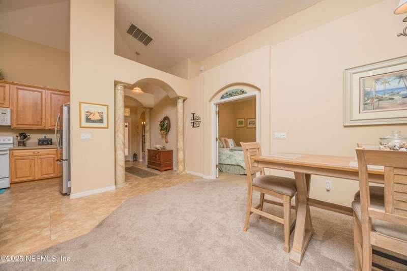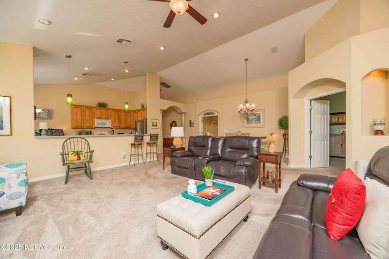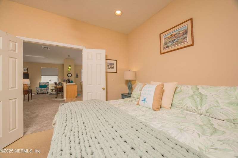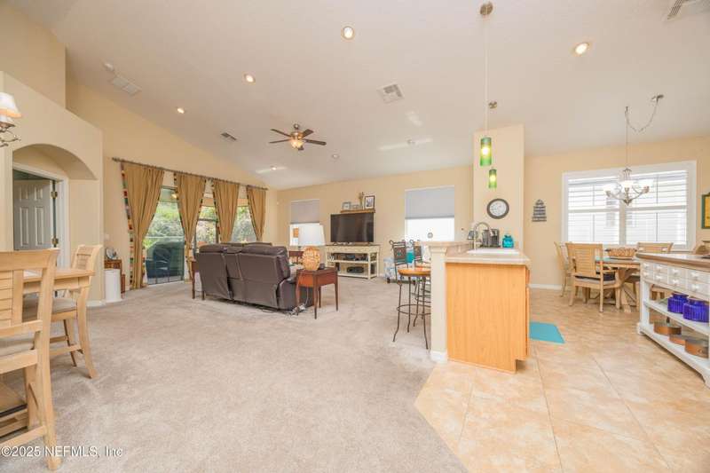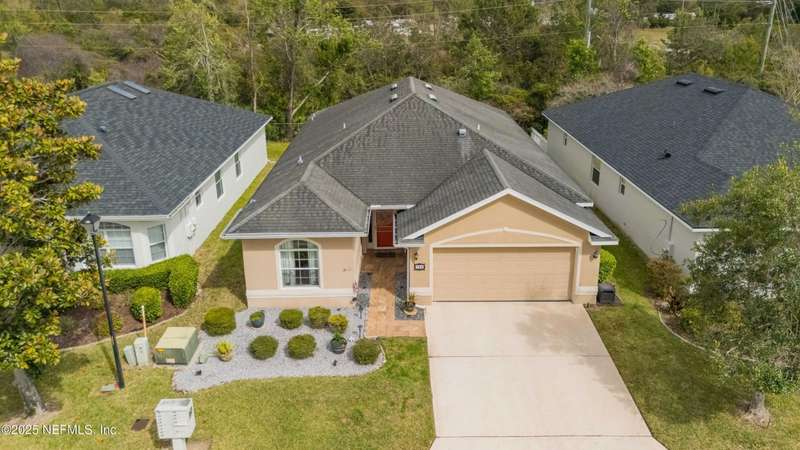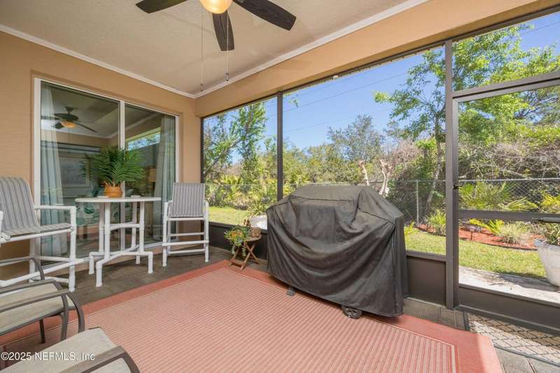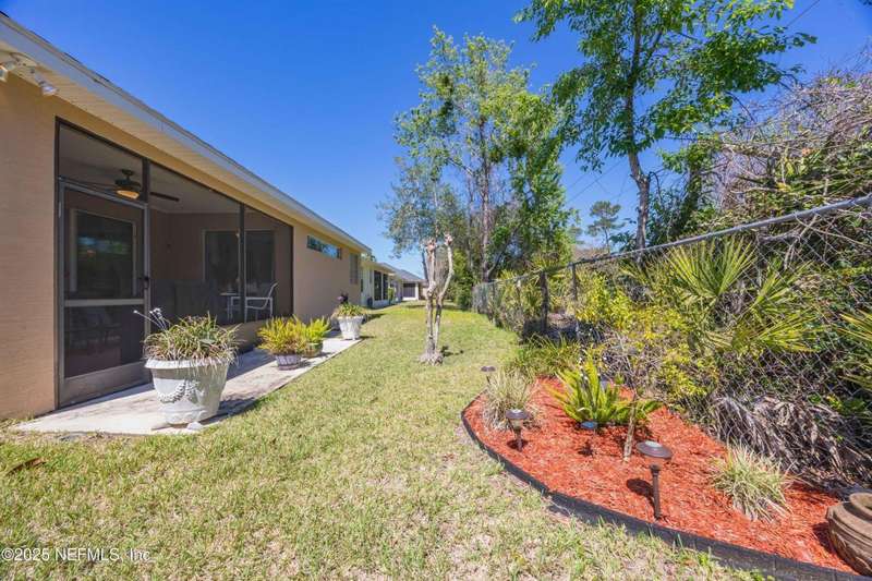 LOW MAINTENANCE, LOW PRICE & LOW HOA FEE (LAWN CARE INCLUDED) MAKES THIS SPACIOUS CONCRETE BLOCK 3BR/2BA A PERFECT COMBINATION FOR A LAID BACK LIFESTYLE! Ideal as a main residence or as a vacation home. Enter the wide, tall foyer to a roomy eat in kitchen with lots of cabinets, counters & a built in desk! Formal dining room & large living room with high ceilings & lots of light lead out to 17x10 screened lanai overlooking private treed yard backing to a greenbelt/preserve. At the back of the home is the spacious owner suite with huge walk in closet, high eyebrow window & sliders leading to screened lanai. Owner bathroom includes double vanity, garden tub & a separate beautifully tiled shower. 2nd bedroom includes big walk in closet & Murphy bed. Across the hall is the 3rd bedroom with 2nd bathroom, plus washer & dryer closet in between. Community pool & tennis. Less than 5 min to shopping & less than 15 min to the beach!