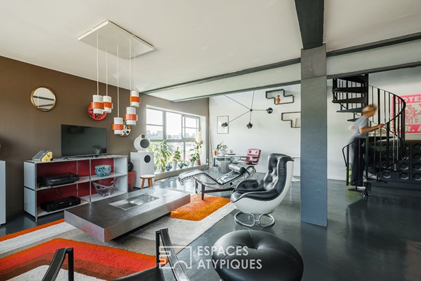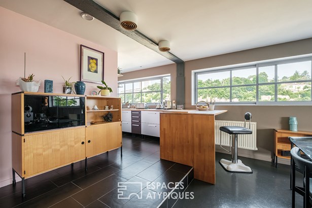 From the moment you enter, the space reveals its character: raw materials, polished, and exposed metal lend strong identity to this loft, redesigned with the spirit of an artist's studio. On the main level, the open-plan kitchen extends into a spectacular living area with minimalist lines, enhanced by a tucked-away office nook. The layout has been cleverly designed to maximize space, creating fluid transitions between rooms and inviting in natural light.