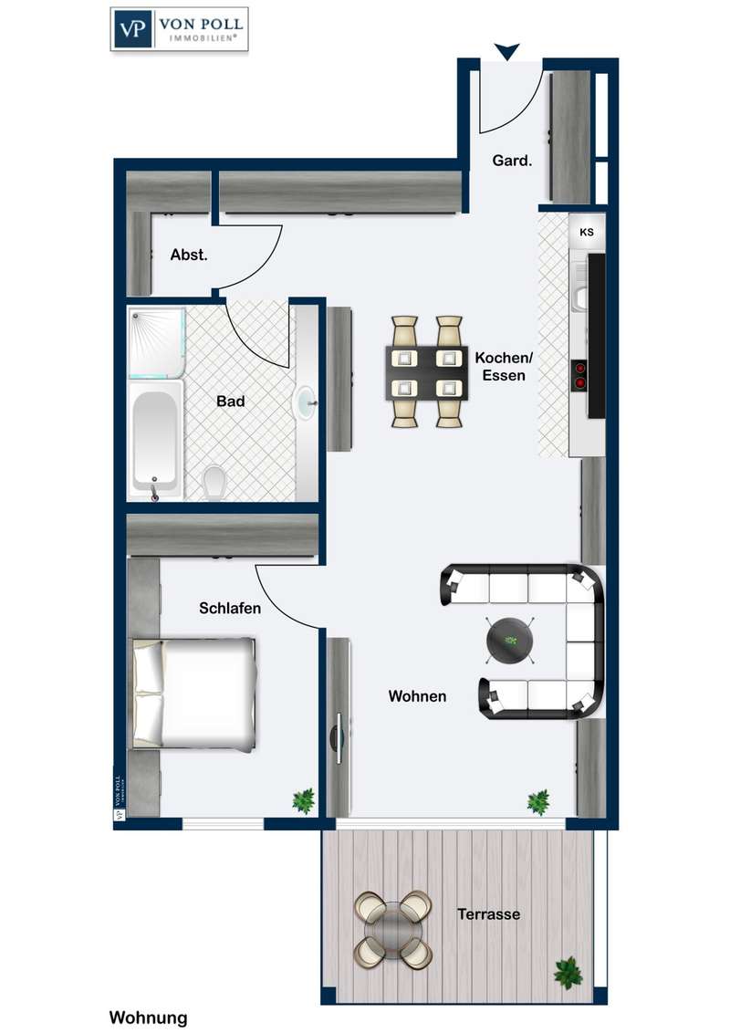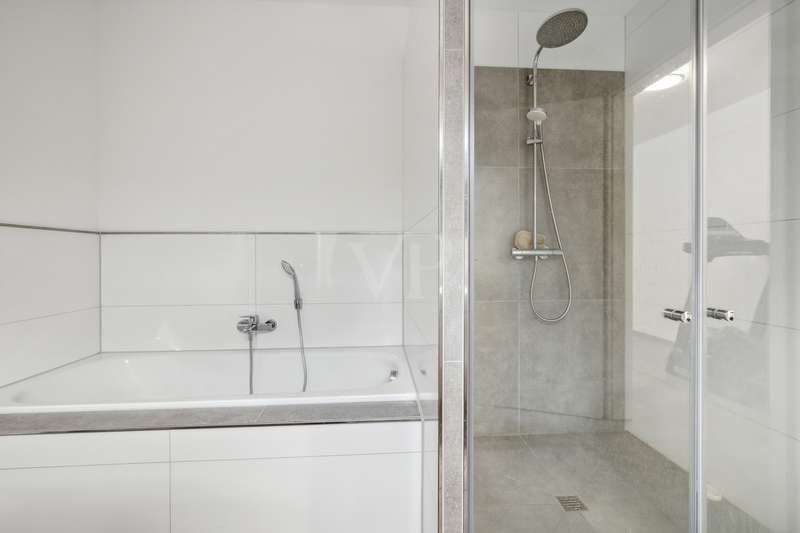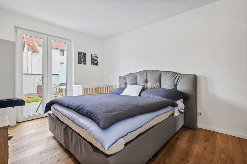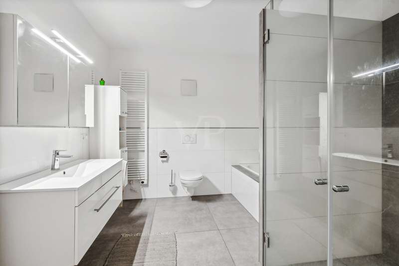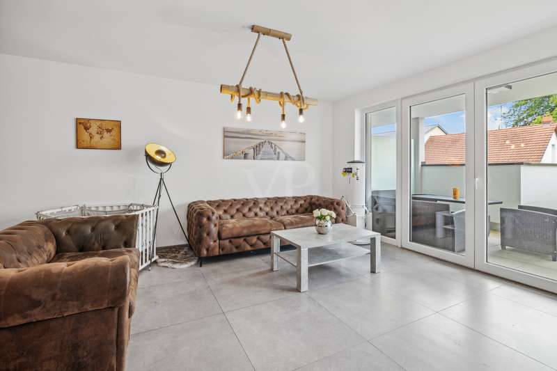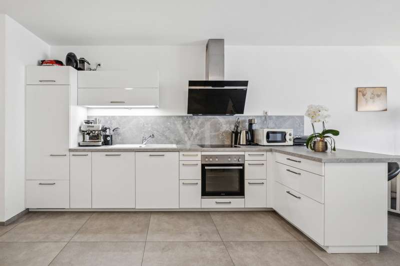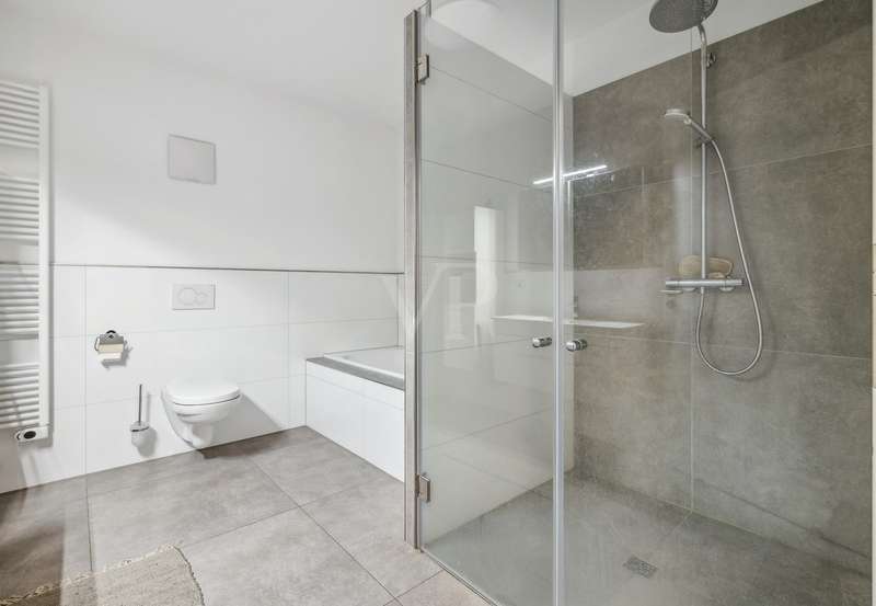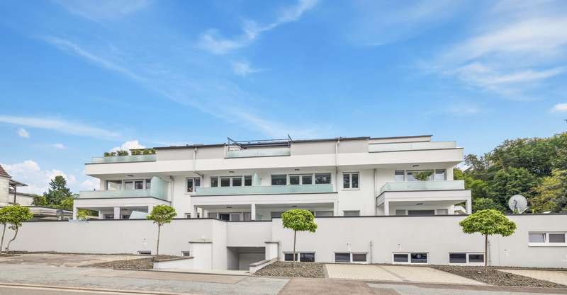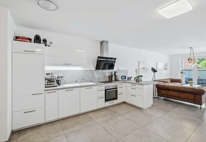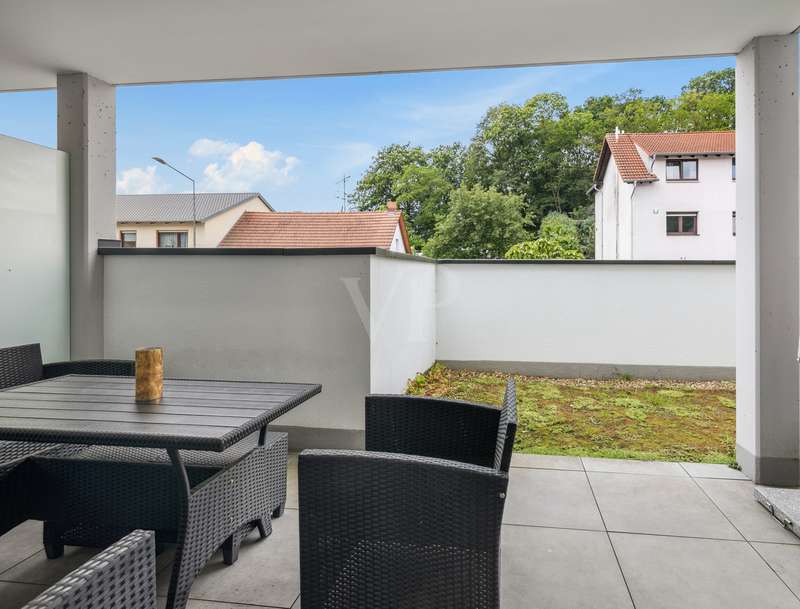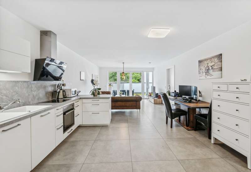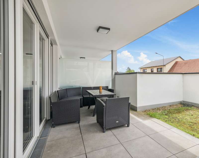 Welcome to your exclusive first floor apartment in Homburg! This apartment, built in 2020, offers an elegant and comfortable home on a generous 77 m². This apartment is entered through an inviting and open entrance area. From here, the view opens up into the heart of the apartment: the spacious and light-flooded living and dining area measuring approx. 44 m². This room is equipped with floor-to-ceiling window elements and gray tiled flooring and offers an elegant atmosphere. From here, you have direct access to the covered terrace, which can therefore be used as an extended outdoor living space not only in summer. The open fitted kitchen in white blends seamlessly into the modern design of the open-plan living space and creates a pleasant cooking atmosphere. A counter invites you to linger in comfort. This apartment also has a bedroom with parquet flooring and a floor-to-ceiling window element, which also offers access to the terrace. An adjoining bathroom, with the same tiled floor as in the living area, offers a floor-to-ceiling shower with double-sided glass door, a bathtub, a toilet, a washbasin with vanity unit and a towel radiator. An adjoining storage room completes this apartment in a practical way and offers additional storage space for household utensils. The underground parking space, which can be easily reached by elevator, is another highlight. The apartment also has its own cellar compartment and a laundry room with its own connection. The apartment is currently rented for a basic rent of € 800.00 plus an underground parking space of € 60.00 and ancillary costs of around € 220.00. This exclusive first floor apartment offers you a perfect combination of modern design, high-quality furnishings and practical functionality. See for yourself and arrange a viewing today.