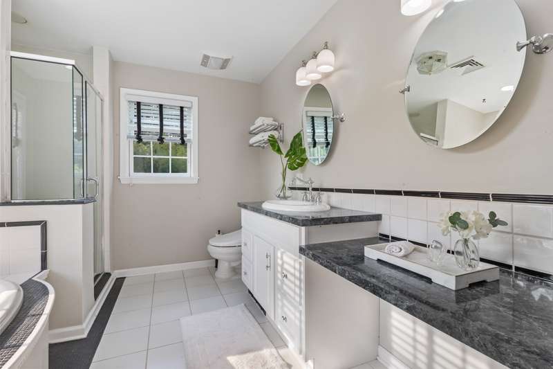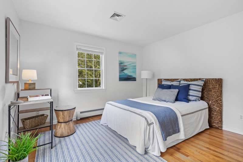 This timeless Colonial, completely rebuilt in 2002 with only the original foundation remaining, was thoughtfully designed for today's lifestyle. Sunlight fills the home through large windows, highlighting hardwood floors throughout and offering water views from several rooms. The main level features a spacious living room with a fireplace, a formal dining room, a comfortable family room, and a generous kitchen with an island, stainless steel appliances, abundant quality wood cabinetry, and ample counter space. A mudroom provides access to the large deck, complete with a pergola draped in wisteria-perfect for al fresco dining. Also on the first floor, a versatile office/bedroom with an adjacent half bath offers flexibility for guests or work-from-home needs. Upstairs, the primary suite serves as a private retreat with a sitting area, spacious walk-in closet, and nicely appointed full bath. Two additional bedrooms share a well designed full bath with double sinks and private shower area, and a convenient hallway laundry closet adds everyday ease. The partially finished lower level offers lots of flexible space ideal for a playroom or gym. Additional highlights include two garage bays, a private backyard, and the coveted perk of deeded water access just steps away at the end of the cul-de-sac. Launch your kayak or paddleboard, or simply enjoy the serene views. Ideally located close to the Riverside train station and all the exceptional amenities Greenwich has to offer