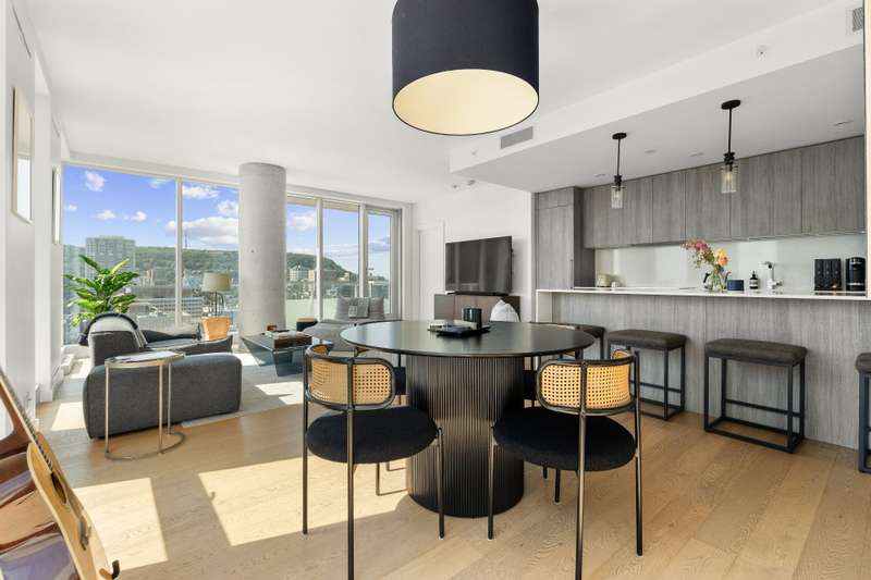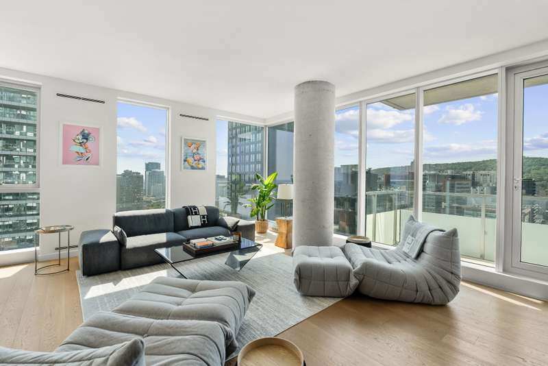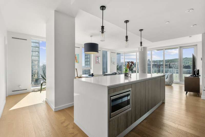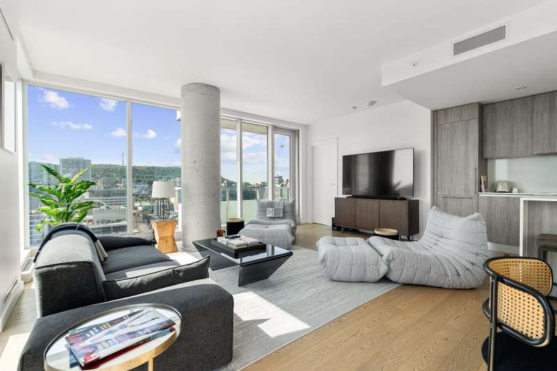 Golden Square Mile -- Corner Residence Luxurious and light-filled 2-bedroom, 2 + 1 bath corner condo with garage, soaring floor-to-ceiling windows, automated blinds, and two elegant walk-in closets. Exclusive building amenities include 24-hour concierge, state-of-the-art gym, indoor pool, sauna, outdoor jacuzzi, Sky Lounge, and landscaped private park. Prime location steps from McGill & Concordia Universities, metro, fine dining, boutiques, and groceries, with rapid access to the Ville-Marie Autoroute and Montreal's leading hospitals.