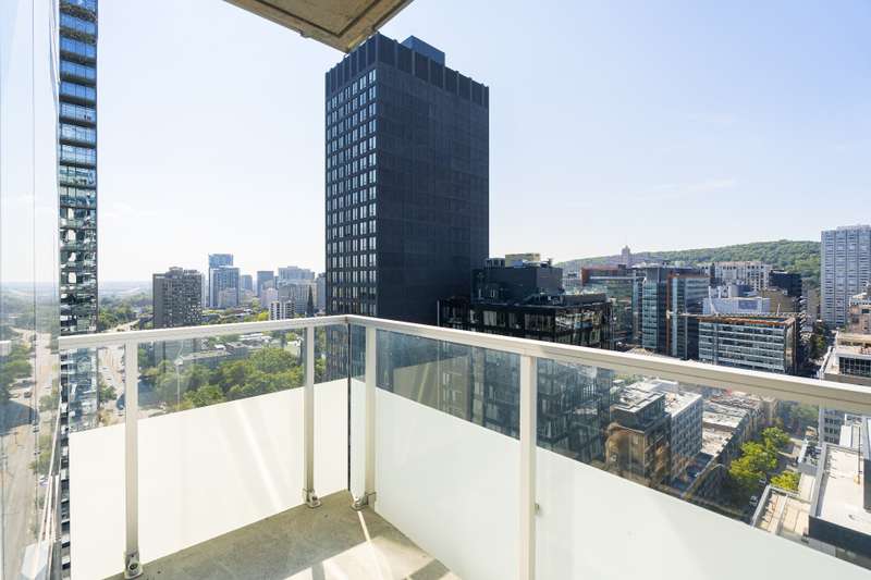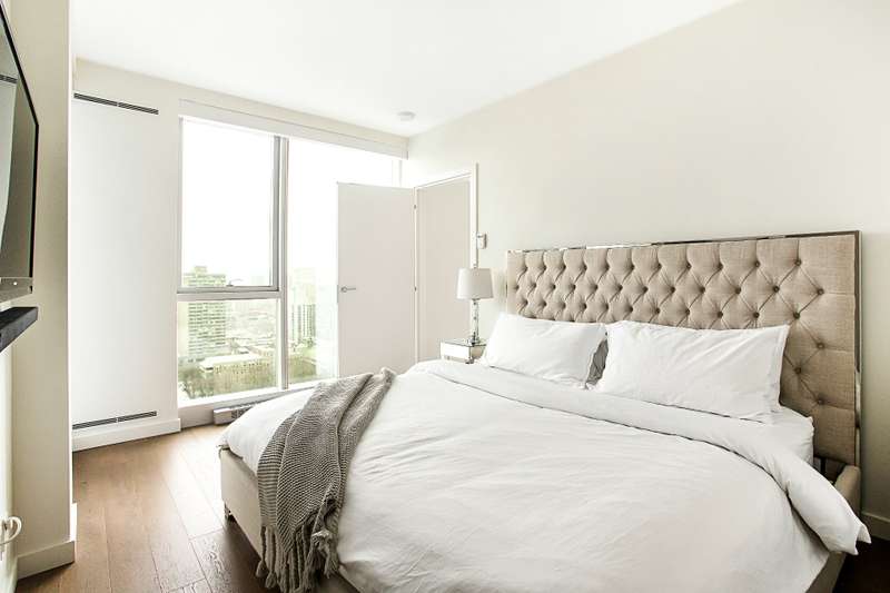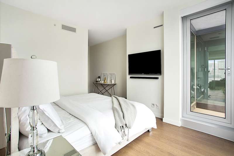 Golden Square Mile - Corner unit luxurious residence with light-filled 2-bedrooms, 2 + 1 bath with garage, soaring floor-to-ceiling windows, automated blinds, and two elegant walk-in closets. Exclusive building amenities include 24-hour concierge, state-of-the-art gym, outdoor & indoor pool, sauna and jacuzzi. Sky Lounge and landscaped private park. Prime location steps from McGill & Concordia Universities, metro, fine dining, boutiques, and groceries, with rapid access to the Ville-Marie autoroute and Montreal's leading hospitals.