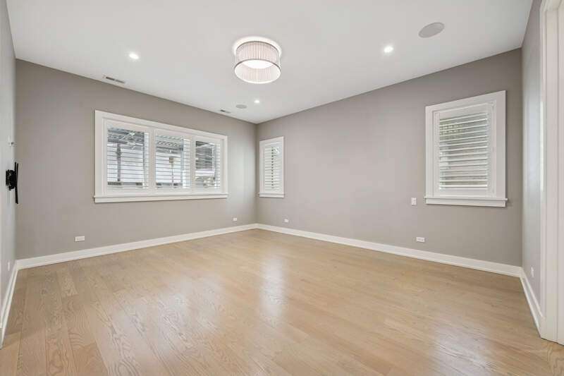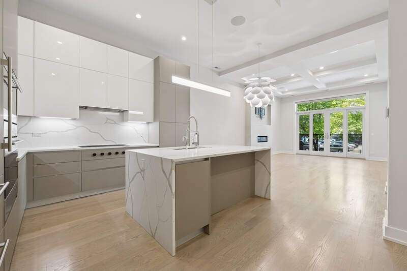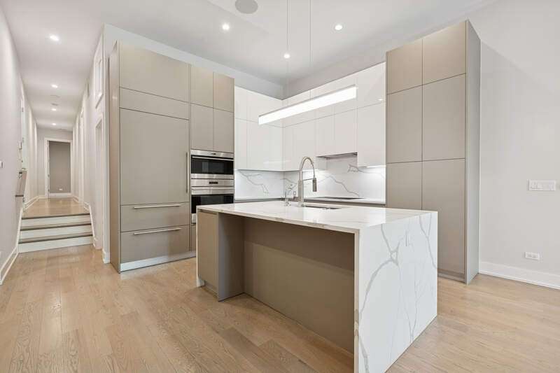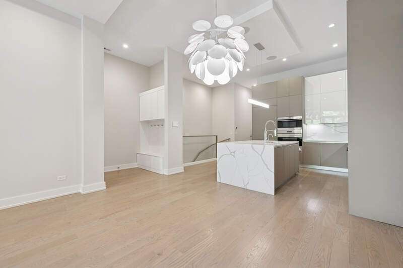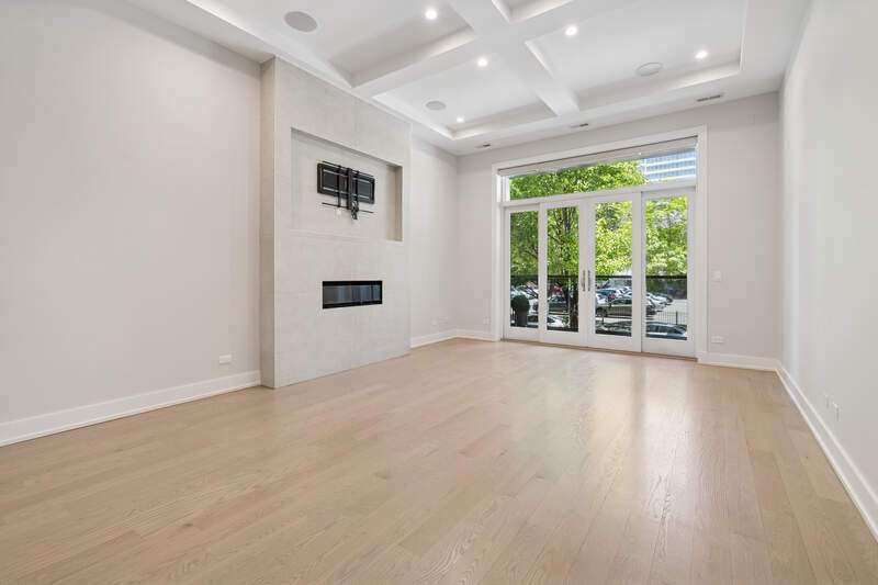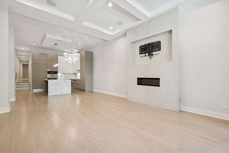Graciously sized with sleek, modern appointments, this pristine condo is ideally located in the heart of Chicago's vibrant West Loop neighborhood. With 3000 SQFT, 4 bedrooms, 3 baths, 2 large family rooms, and 2 outdoor spaces, this duplex down lives more like a single-family home. Highlights include soaring 12 ft coffered ceilings, 5" wide plank oak floors, and heating flooring throughout the residence. The living /dining room features a gas fireplace, floor to ceiling windows, French doors leading to a large balcony, and a separate dining area with chandelier. An open kitchen outfitted with custom Italian cabinetry by Copat, veined quartz countertops, Bosch, Sub-Zero, and Wolf appliances, and a center island with breakfast bar. Serene and spacious, the primary suite has plantation shuttered windows with two exposures, a custom walk-in closet, and a luxurious ensuite bath with an oversized steam shower, heated flooring, and dual vanities. The second bedroom has a walk-in closet and an ensuite bath with a second entrance off the hallway. An exclusive private deck with an outdoor kitchen is conveniently covered for comfortable use throughout the year. A walk-in laundry room with pantry space provides additional storage on the main level of this home. Downstairs, the lower level remains above grade and enjoys ample natural light through windows outfitted with plantation shutters. This level features a large recreation room, a fully equipped wet bar, two bedrooms with copious closet space, and a full bath. One oversized parking space with electrical charger is included in the price. This unique,8-unit elevator building is located just steps from parks, playgrounds, shopping, world-class restaurants, and nightlife the West Loop has to offer along with easy access to public transportation and the expressway.