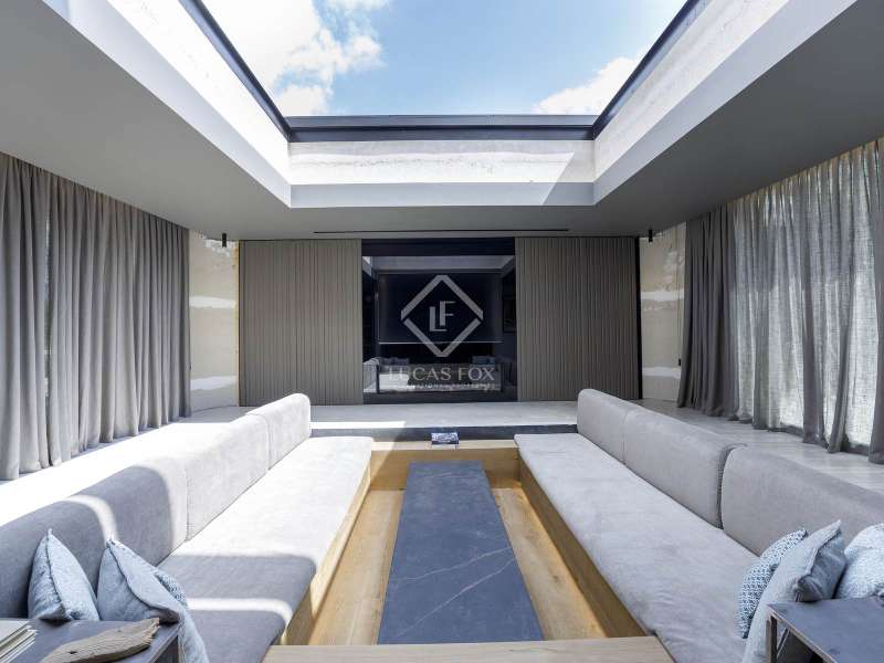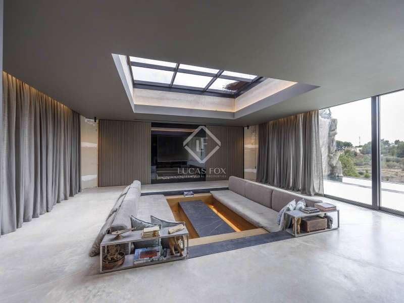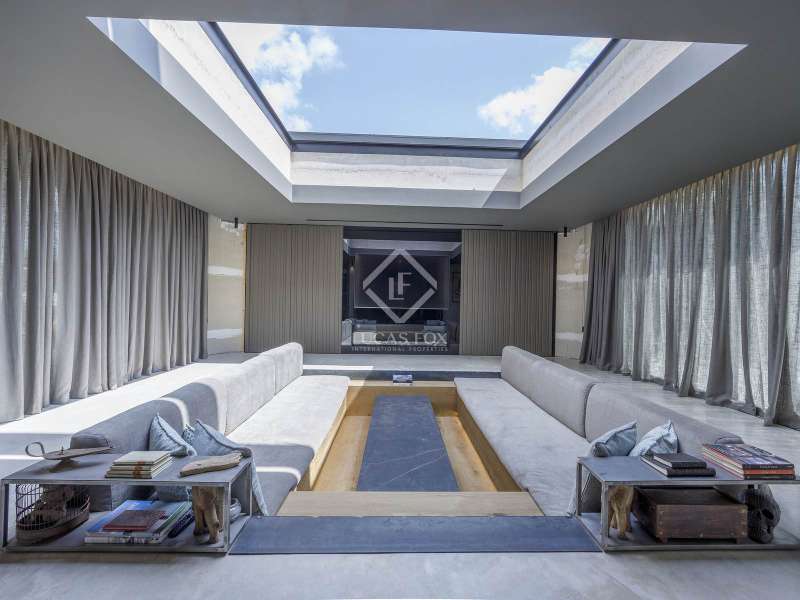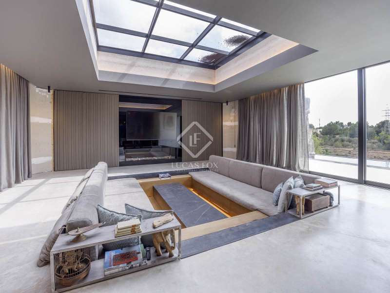 Lucas Fox presents this villa of approximately 500 m² built located in Godella. The property is designed with avant-garde materials and presents a very exclusive design. The property is located on a plot of approximately 1300 m². The entrance to the plot has a large garden area that combines sand and abundant tropical vegetation, which manages to provide a lot of privacy to the plot. At the entrance to the property, there is an imposing door that gives access to a magnificent living-dining room with a two-meter gas fireplace . The living room is a pleasant room with large sofas from which you can observe the sky through its retractable glass cover. The sofa area and the central table have underfloor heating. The space is completed with a large television. From the dining room you can see the terrace and the infinity pool with a themed waterfall. From the living room, there is access through hidden doors to the main bedroom and the study. The main bedroom has a private bathroom and dressing room room, as well as exclusive access to the pool area through the windows. Next to the main bedroom, there is a very bright study with access and views of the garden and therefore the main entrance of the plot. To the north, the dining room and a service bathroom are located. Next to the dining room there is a spacious and bright fully equipped kitchen with an island equipped with professional brand furniture and appliances such as a kitchen with an integrated extractor fan and a bar area. From the kitchen, there is access to the terrace and pool area, which has a large built-in table and a chill-out area from which you can see the infinity pool with a themed waterfall. It is worth noting the quality of the materials used, since in the pool both the perimeter crown and the interior are designed with natural stone tiles of Japanese origin. Through a sculptural staircase, you access the first floor, made up of the night area with four bedrooms and a games area or living room and a full bathroom that serves the entire floor. From a lifting platform, the main floor is connected to the lower floor , directly to the gym. On the lower floor is the car park with capacity for three vehicles, laundry area, gym and storage area, four bedrooms, a living room and a bathroom. The property has a heating and cooling system through ducts as well as an underfloor heating heating system. It also has a surveillance system with video analysis. Get in touch for more information.