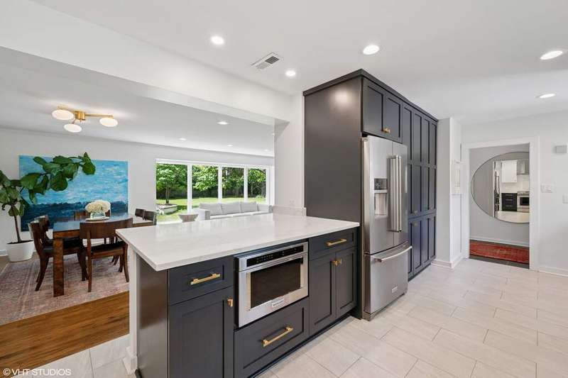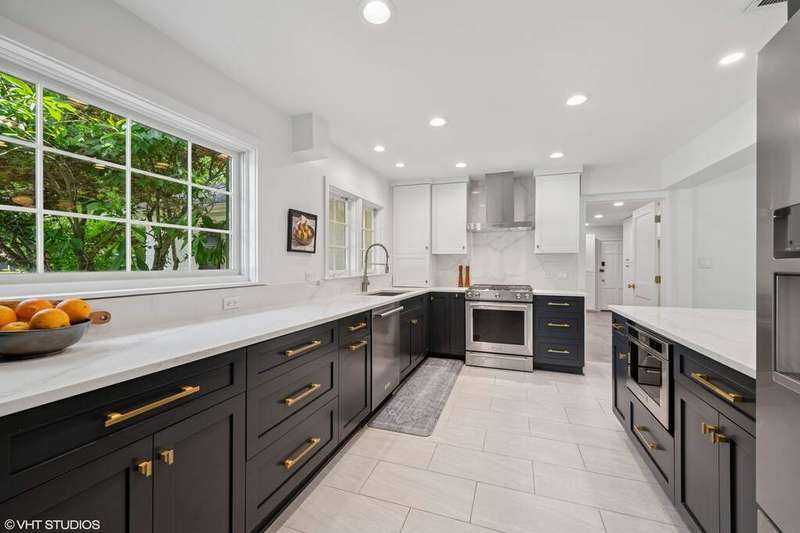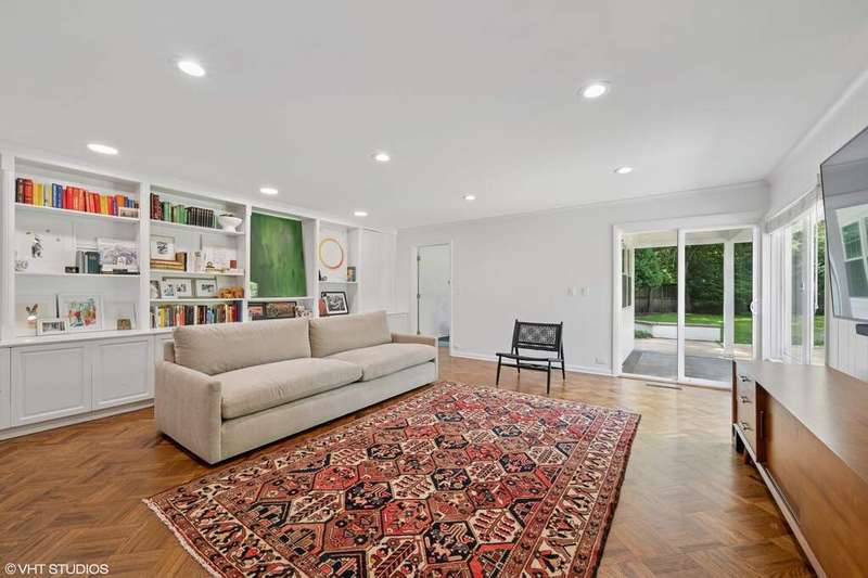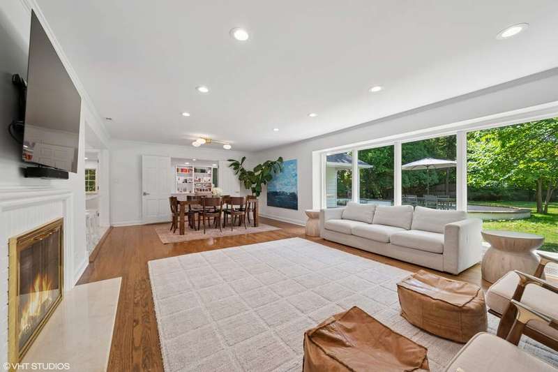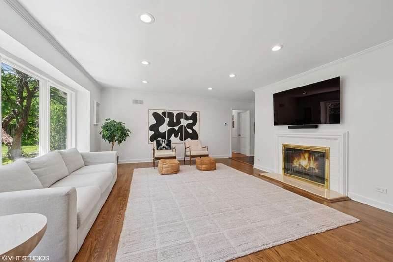 Welcome home! This beautifully updated 3-bedroom, 3-bath ranch rests on an sprawling half-acre lot with a circular driveway. Inside, a sun-filled living room with a fireplace and oversized windows offers serene views of the private backyard. A spacious family room with built-ins opens to the patio, while a separate office offers flexibility as a potential fourth bedroom. The renovated kitchen blends timeless design with modern functionality, featuring expansive white quartz countertops, brass hardware, stainless appliances and a peninsula with additional seating-an ideal hub for both cooking and entertaining. The dining area, positioned between the kitchen and living room, allows for effortless entertaining. The exceptionally large mudroom/laundry room is conveniently located off the kitchen and attached two-car garage. It features custom cabinetry, built-in lockers, side-by-side washer/dryer, folding counter and a deep sink. The private bedroom wing offers three bedrooms and three bathrooms. The primary suite boasts two custom walk-in closets, a built-in desk, and a luxurious en-suite bath. This spa-like retreat offers a glass walk-in shower and radiant heated floors, with a custom oak double vanity, quartz countertops, backlit mirror, and herringbone tile. From your front door, enjoy a short walk to Hubbard Woods shops, dining, schools, and the Metra. Nearby parks, the Skokie Lagoons, Tower Road Beach, Winnetka Golf Club, and Hubbard Woods Park offer endless recreation, with quick access to the Edens for an easy commute to Chicago.