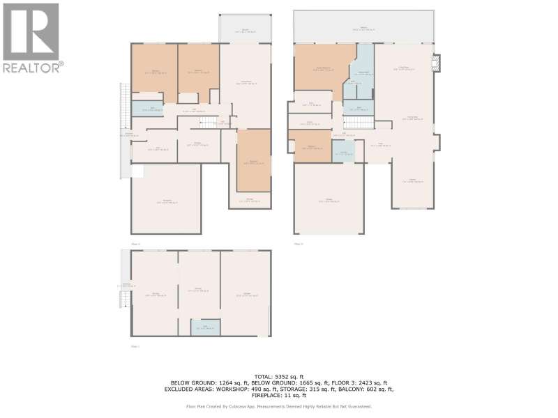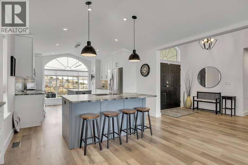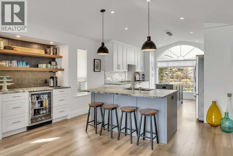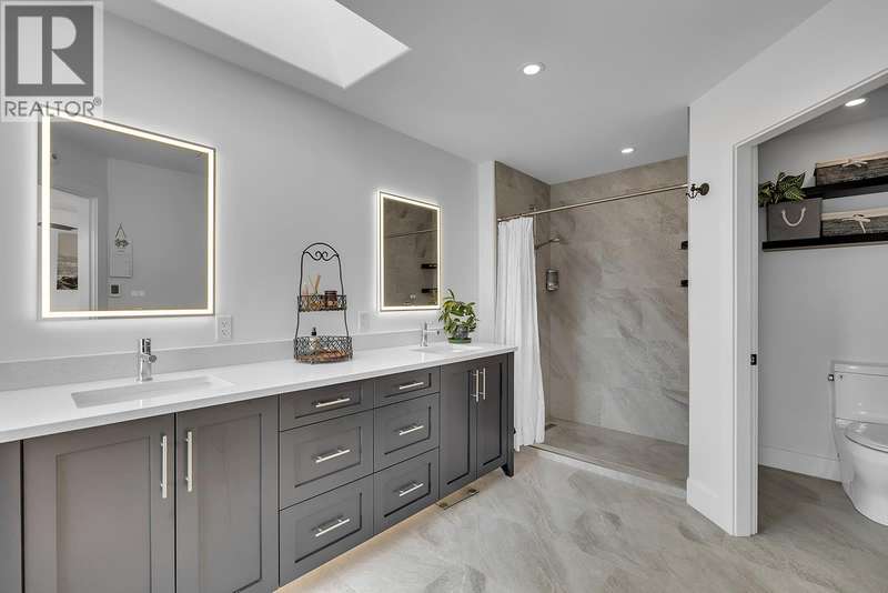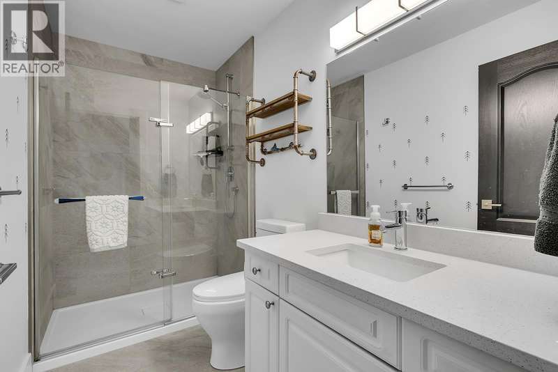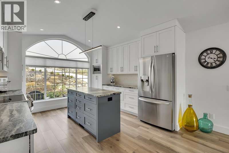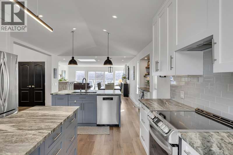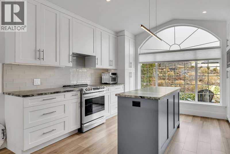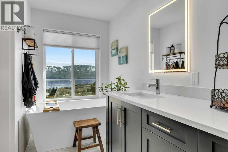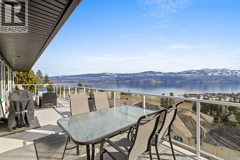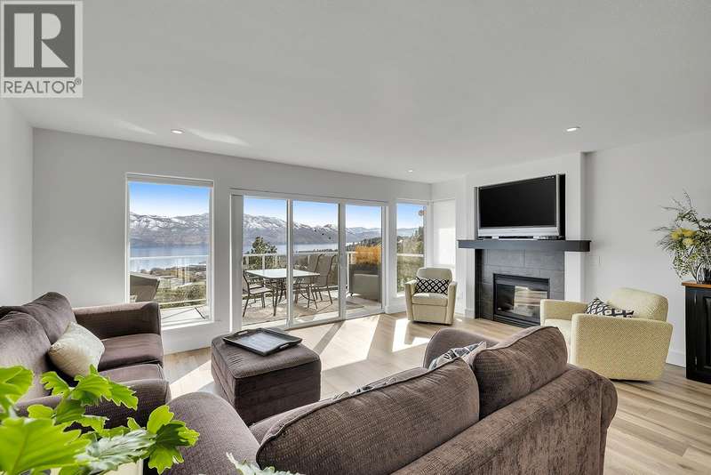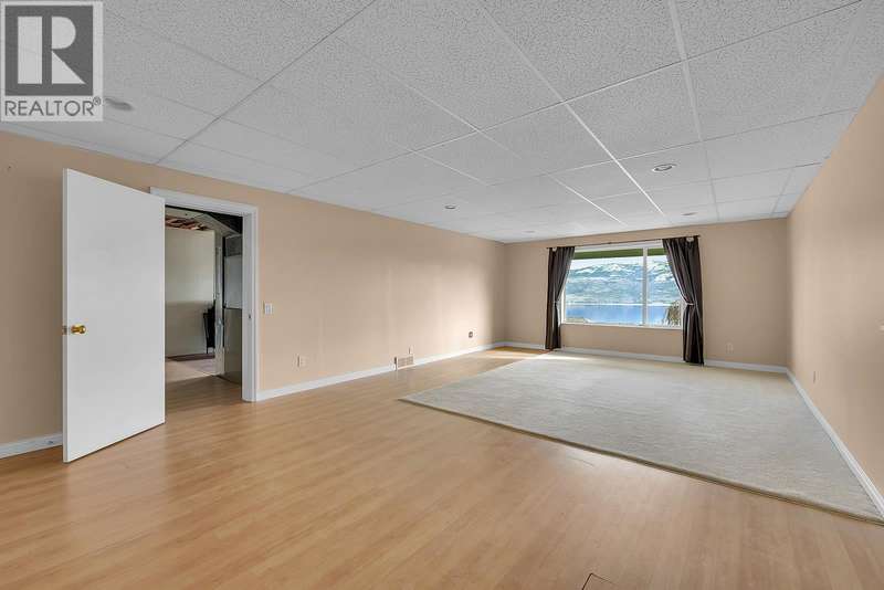 Don't miss this opportunity! B&B opportunity or extended family in-law suite or 2 -2 bedroom suites or just keep the older teenagers downstairs if desired. Extensive quality renovations with city permits. approx 5000 sq ft walk out rancher offering spectacular unobstructed lake views from all 3 levels! Beautiful in-law suite & possibility to rent main floor with the in-law suite for your extended family & possibility owners living accommodation on the lower 3rd bottom floor when in town or as another in law suite. You don't see this opportunity very often where home is designed for multi family living. Approx 2423 sq ft luxurious main floor featuring great room living, pantry, 2 bdrms, 2 bthrms & laundry. Approx 1665 sq ft Lower 2nd floor featuring 2nd kitchen, great room, 2 bdrms & full bthrm. Private exterior entry 3rd basement floor offering bathroom and living & storage rooms. Approx 885 finished & 399 sq ft unfinished. Located in sought after neighbourhood of Lakeview Heights where world class vineyards and restaurants, lakeshore parks, golfing and shopping are nearby to enjoy the Okanagan lifestyle. Large workshop separate from garage and storage area. Many features include main floor new kitchen, induction range, new luxury vinyl plank flooring throughout, all bathrooms renovated, heated flooring and soaker tub, shower and double sinks in ensuite. New built in vacuum with hide a hose retractable hose system on top 2 floors, vacuum plate in kitchen. New blinds have cellular shades. Media room. New air conditioner 2022. See floor plan (id:58403)