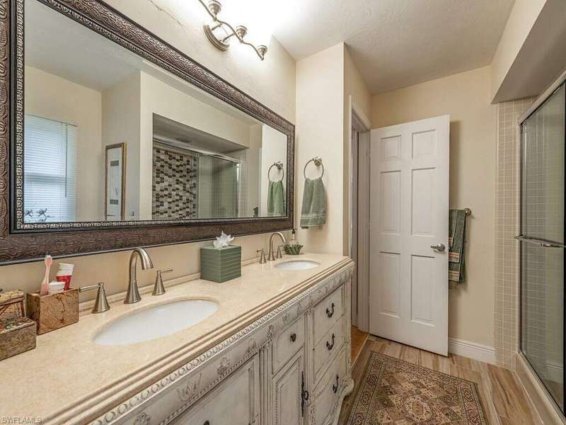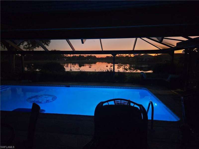 Welcome to your dream home! Enter this property through the charming front garden courtyard, complete with custom plantings, and prepare to be amazed by the stunning views that await you. The disappearing sliders in the great room open up to create an incredible 16-foot-wide panorama of the pool area, showcasing the serene lake and pristine golf course beyond. The great room is designed for versatility, offering ample space for both casual and formal living areas. It also includes room for a formal dining area, though the current owners have creatively used this space to accommodate a grand piano. Adjacent to this, you'll discover a chef's dream kitchen. Designed and crafted by the owner, a master carpenter, the kitchen features custom-built cabinets and a center island made from a single, full slab of quartz measuring an impressive 5x10 feet. The kitchen is further enhanced by upgraded stainless steel appliances, an 8x7-foot walk-in pantry-perfect for storing everything you need to host large gatherings-and a cozy breakfast nook with bay windows that offer picturesque views of the pool, lake, and golf course, often visited by graceful Snowy Egrets. Connected to the kitchen is a casual family room, an ideal space for relaxing, snacking, and watching TV. The home boasts three fully remodeled bathrooms, each updated with new frameless shower doors, vanities, and modern toilets. The luxurious master suite is truly a retreat, spanning 21x17 feet and featuring sliding doors that lead directly to the pool area. Step outside to the recently resurfaced pool area, adorned with elegant stamped concrete. The lanai includes a built-in summer kitchen and a new cage with large, unobstructed picture windows that frame the breathtaking views of the lake and golf course. The pool area also features see-through hurricane shutters that can be controlled remotely via your smartphone. This home is not only beautiful but also highly efficient. The owner has invested in 55 solar panels and two backup batteries, a $147,000 upgrade, resulting in an average electric bill of just $37 per month. Additionally, the property includes a private well, minimizing water costs. The garage is equipped with an electric car charger, and the driveway is scheduled to be upgraded with brick pavers in March. In addition, the roof was replaced in 2023 and the outside completely repainted in 2024. With every detail thoughtfully designed, this home offers unparalleled comfort, luxury, and sustainability. It's truly a property that has it all-and it's ready for you to call it home.
