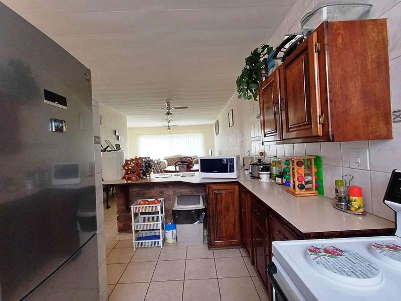 Open plan kitchen with loads of cupboard space, Hob, under counter oven & extractor fan. Space for large fridge and other appliances