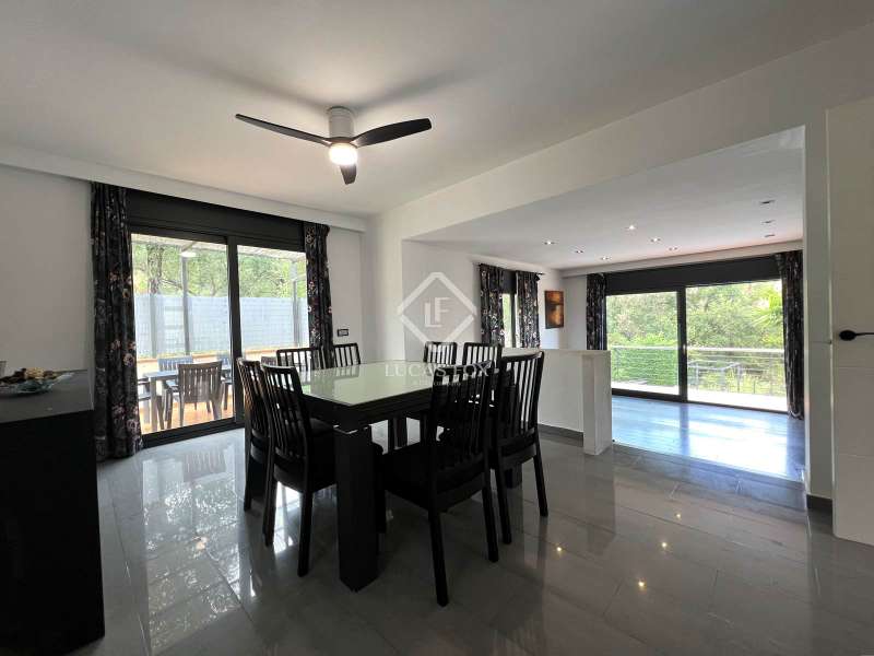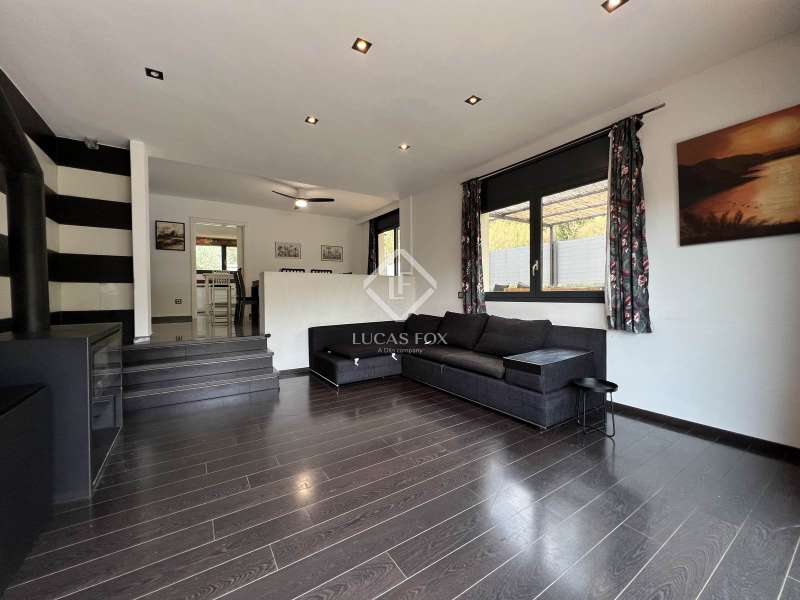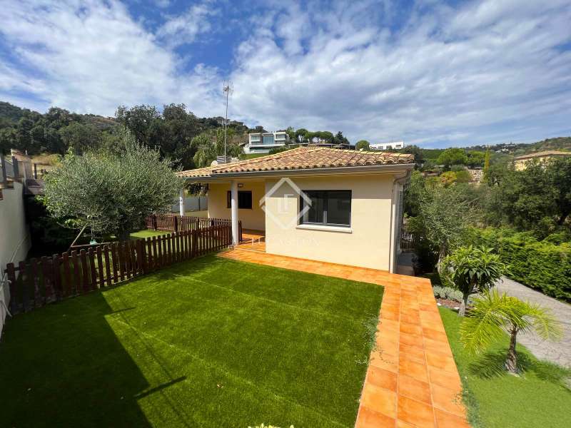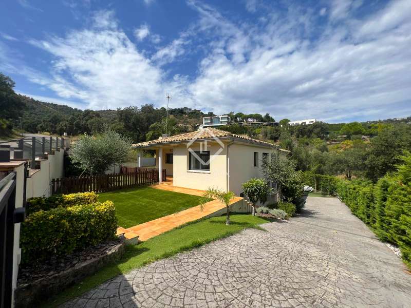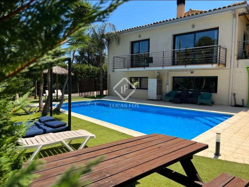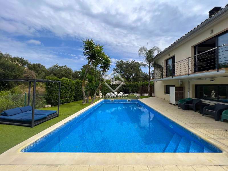 Villa Gina, fantastic villa with garden and private pool located in an idyllic, quiet and safe setting, in the Cim d'Aro development , in Platja de Aro, less than 2 kilometers from the town centre and its beaches and wonderful coves. The villa features a contemporary design that combines style and functionality. It has spacious and bright rooms and an intelligent layout . The house is divided into two levels. On the upper or access floor , we find the night area, consisting of two double bedrooms and a full bathroom with shower. In addition, we find the master double bedroom with a full bathroom and access to the terrace with views of the garden and the mountains. On the other hand, in the day area, there is a fully equipped separate kitchen, which leads to the living-dining room on two levels. This space has access to the large terrace and the garden , which has a private pool, exterior dining area , chill-out area, and a children's playground. The lower floor is accessed by an elegant staircase. It has a large multipurpose room, currently used as an study and games room, a double bedroom , a toilet, a utility room and a large garage with capacity for several vehicles. Exterior, there is a sunny swimming pool with plenty of privacy, where you can spend time with your family in a quiet and welcoming atmosphere. The garden has exterior lighting and an automatic irrigation system, with a covered porch and a chill-out area around the pool. The property has high quality features such as non-slip porcelain floors, both inside the property (shiny floors) and exterior (porches, stairs). In addition, it includes a Zimbabwe marble staircase, air conditioning and heat pump. All rooms have built-in wardrobes, telephone network and radio/television connection. For greater comfort, it has electric shutters and video intercom, windows with thermal break that maintain the temperature both in winter and summer. Finally, there is a complete quality kitchen with drawers with brakes, lacquered anti-fingerprint doors and Silestone countertop. Please contact for more information.