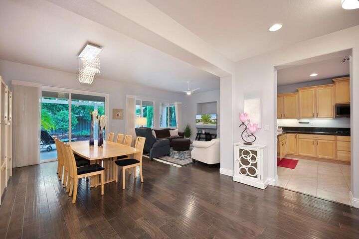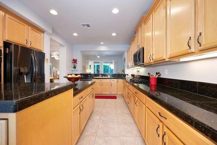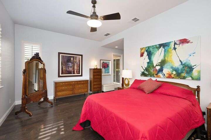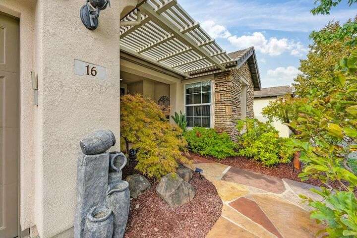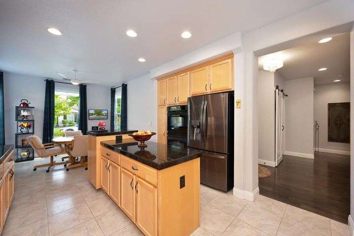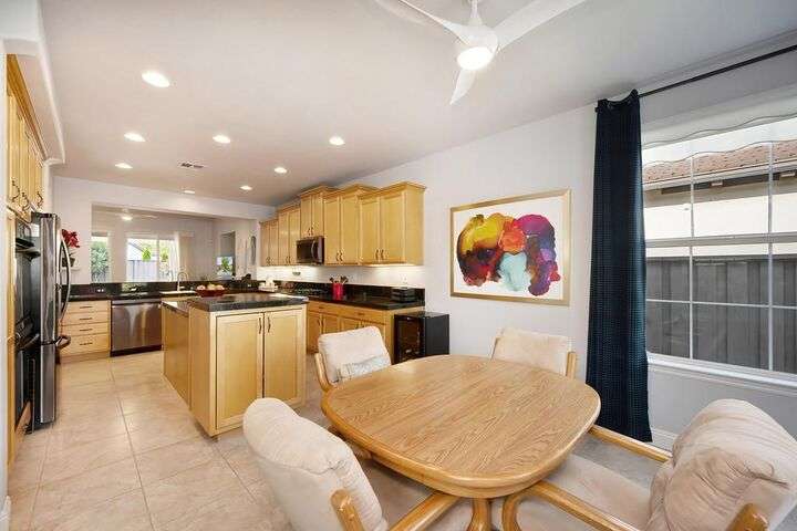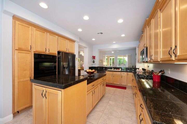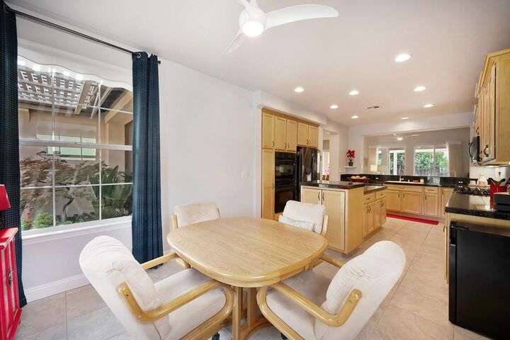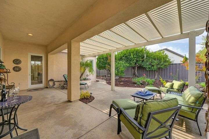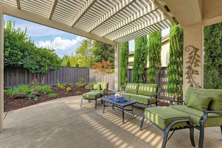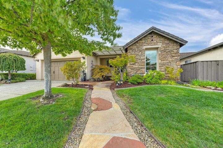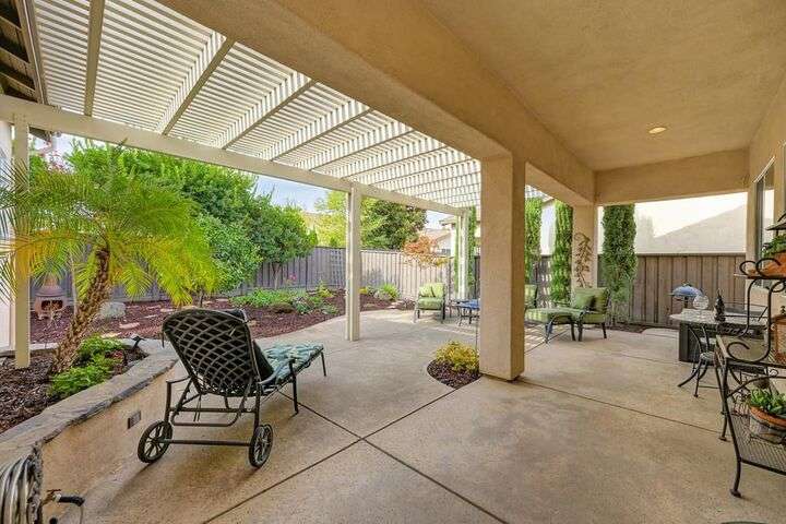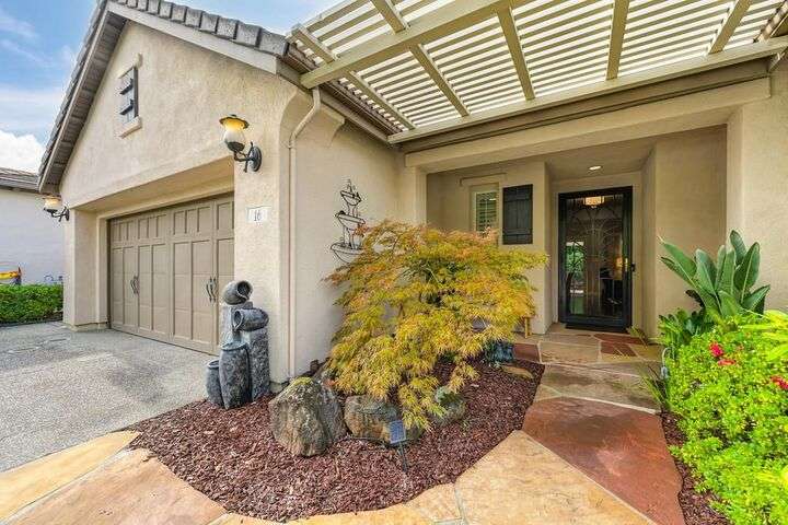 An entertainer's dream in the premiere 55+ active adult gated resort community of Heritage Park. This desirable light-filled open-concept home offers 2 beds/2 baths in 1722 sf. A front patio and a gracious foyer lead to a spacious living/dining room w/ engineered wood floors, a gas fireplace and large windows with views of the backyard. The eat-in kitchen w/ many windows to the front yard includes granite tile counters, breakfast bar, large island, quality appliances and loads of cabinets for ample storage including the laundry room and 2 car garage. The guest bedroom and bath are away from the living areas and the main bedroom is secluded in the back w/ a large en-suite bathroom and walk-in closet. The front and backyard landscape is well-designed to be low maintenance w/ seasonal color and has beautiful trees which offer shade and privacy. The back covered patio w/ extended pergola invites al fresco dining w/ family and friends or relaxing w/ a glass of wine. Heritage Park's world-class amenities include a 25,000 sf clubhouse w/ indoor/outdoor pool, a restaurant, ballroom, library, fitness center, aerobics room and 5 one-acre parks for activities like gardening, biking, walking, water volleyball, bocce ball, tennis and pickle ball. A friendly and welcoming community awaits you!