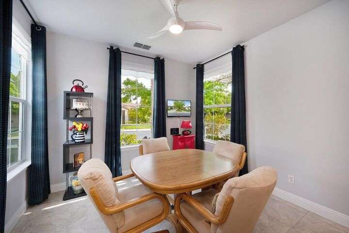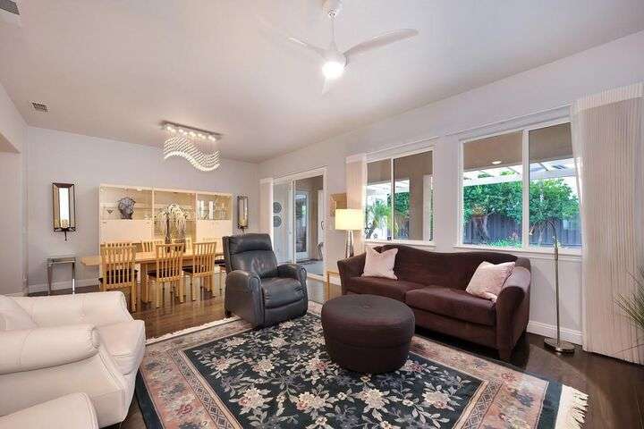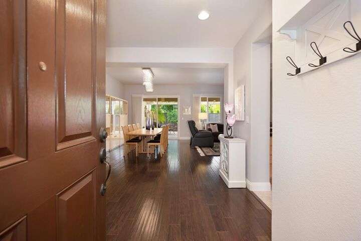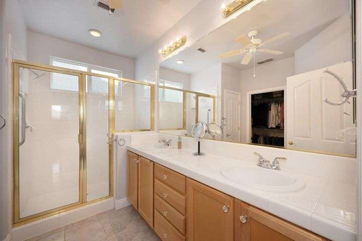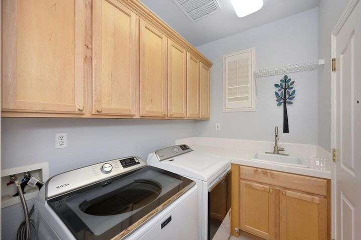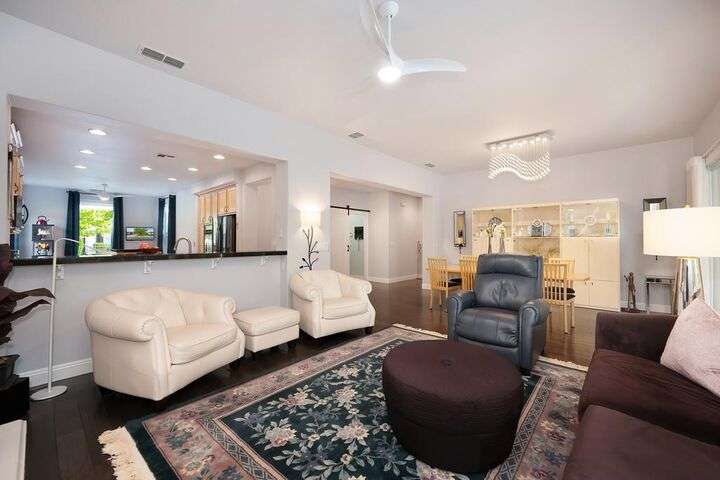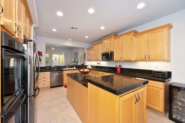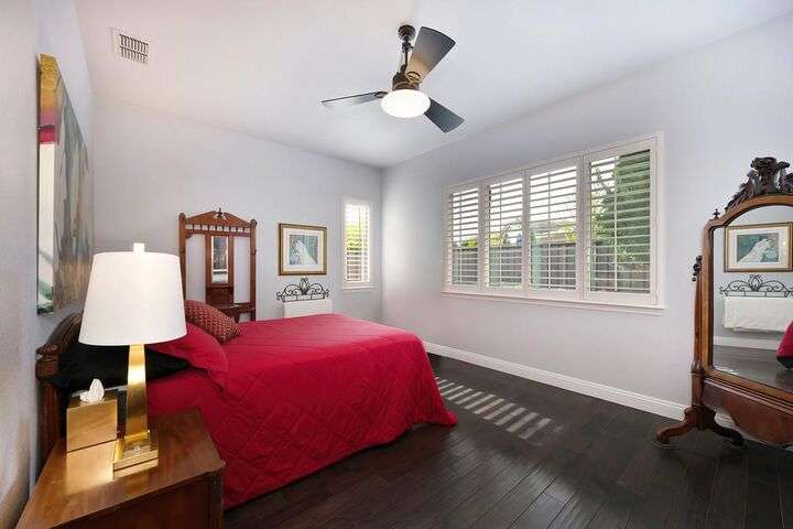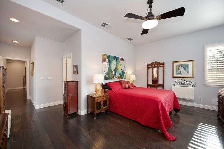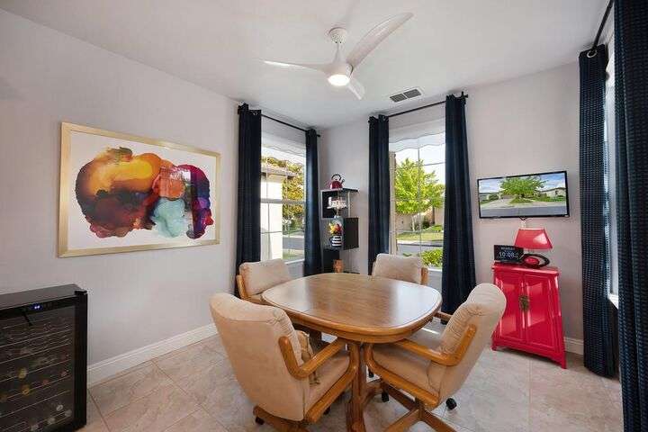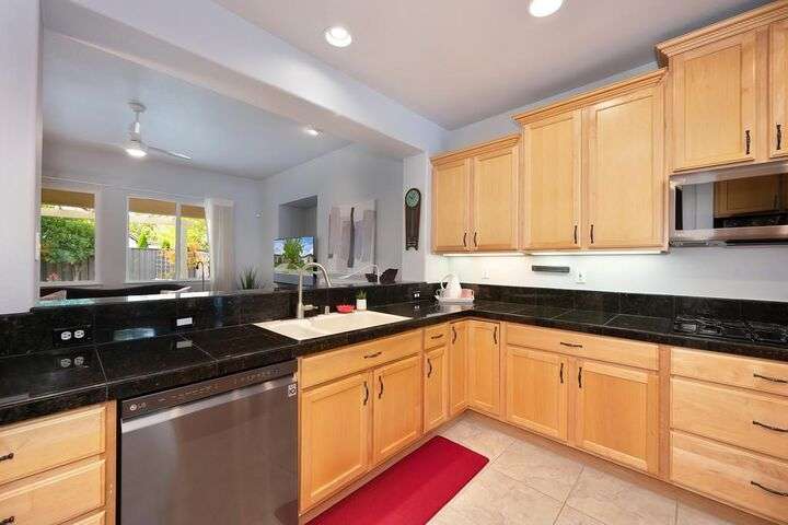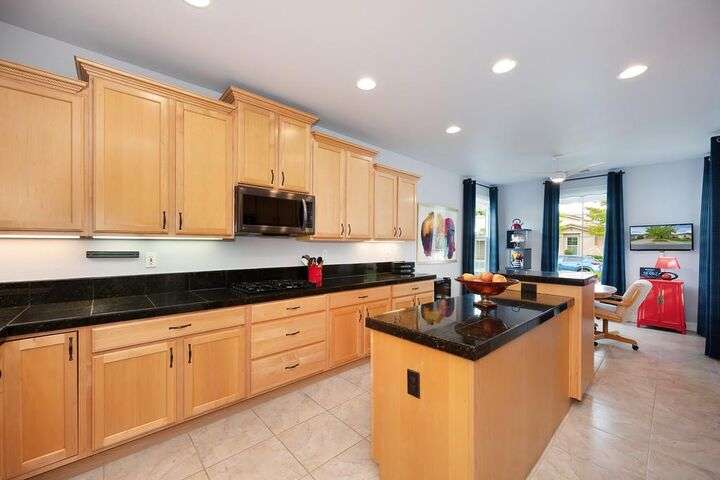 An entertainer's dream in the premiere 55+ active adult gated resort community of Heritage Park. This desirable light-filled open-concept home offers 2 beds/2 baths in 1722 sf. A front patio and a gracious foyer lead to a spacious living/dining room w/ engineered wood floors, a gas fireplace and large windows with views of the backyard. The eat-in kitchen w/ many windows to the front yard includes granite tile counters, breakfast bar, large island, quality appliances and loads of cabinets for ample storage including the laundry room and 2 car garage. The guest bedroom and bath are away from the living areas and the main bedroom is secluded in the back w/ a large en-suite bathroom and walk-in closet. The front and backyard landscape is well-designed to be low maintenance w/ seasonal color and has beautiful trees which offer shade and privacy. The back covered patio w/ extended pergola invites al fresco dining w/ family and friends or relaxing w/ a glass of wine. Heritage Park's world-class amenities include a 25,000 sf clubhouse w/ indoor/outdoor pool, a restaurant, ballroom, library, fitness center, aerobics room and 5 one-acre parks for activities like gardening, biking, walking, water volleyball, bocce ball, tennis and pickle ball. A friendly and welcoming community awaits you!