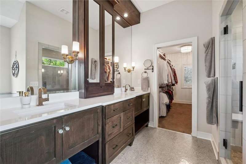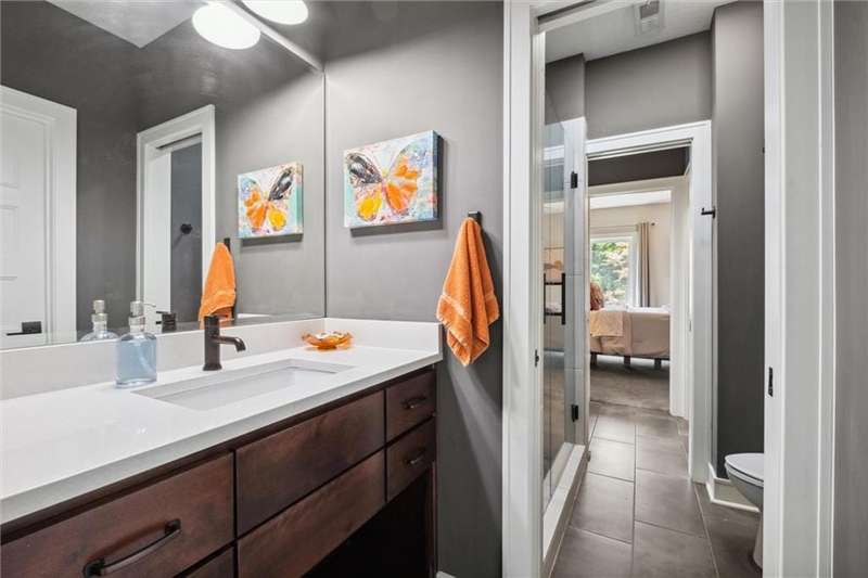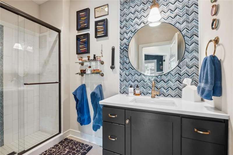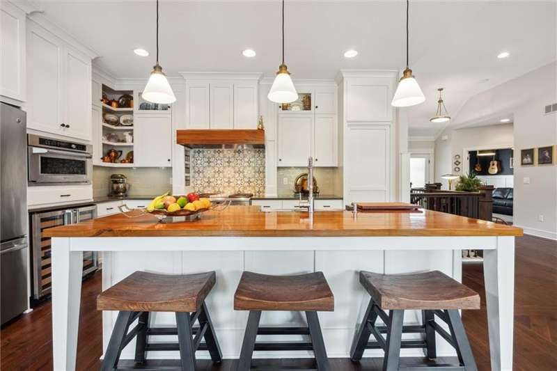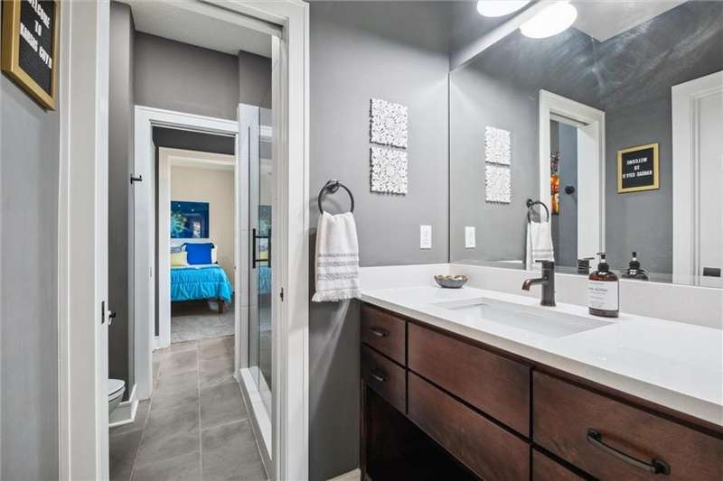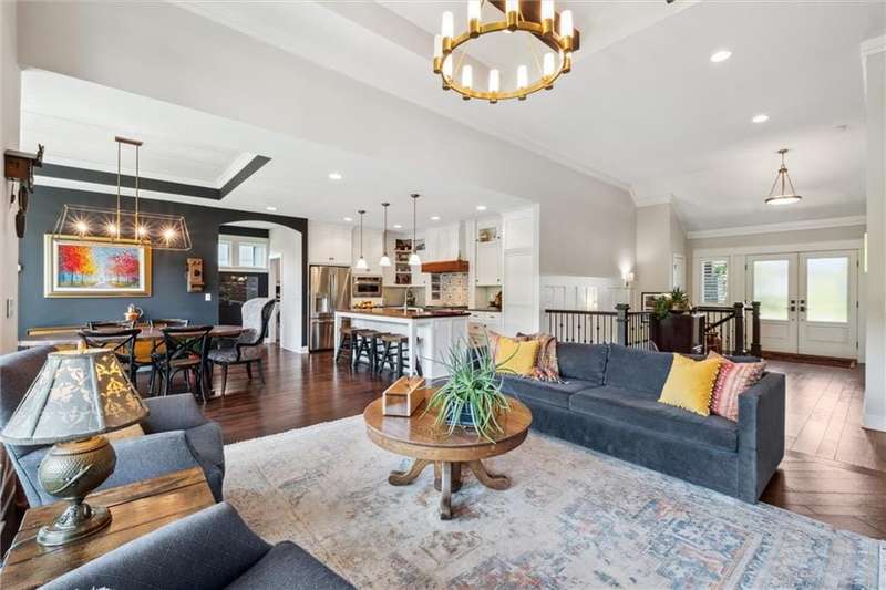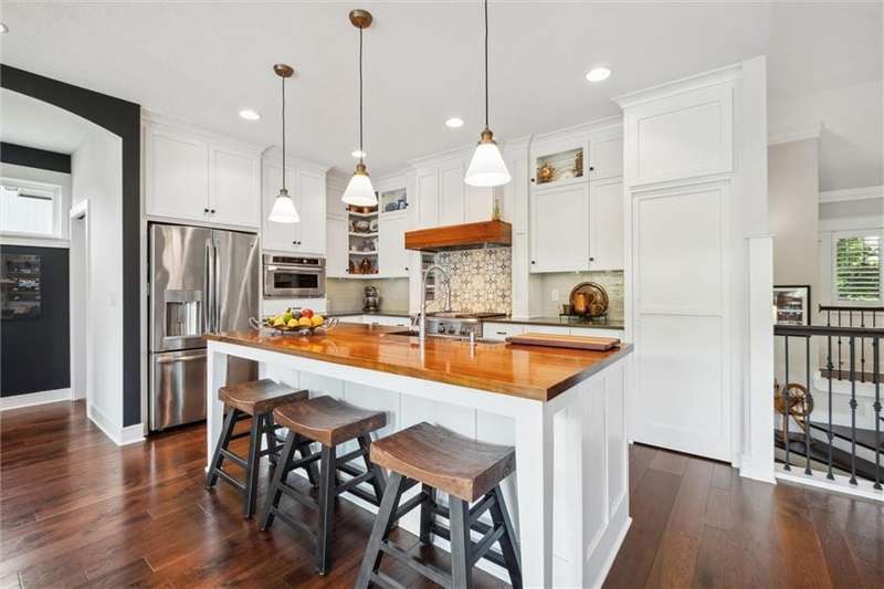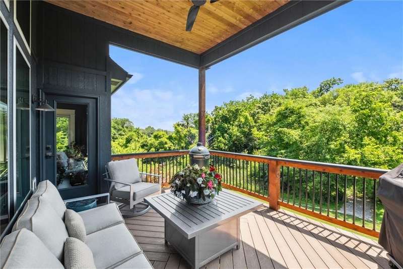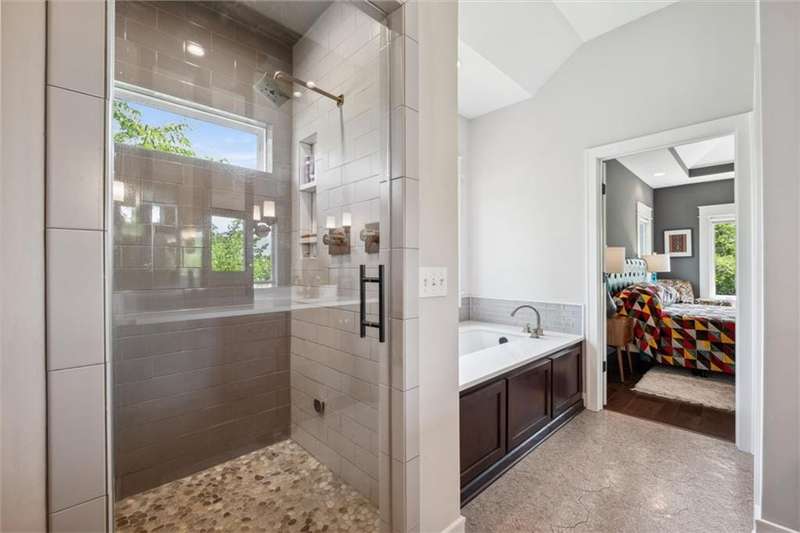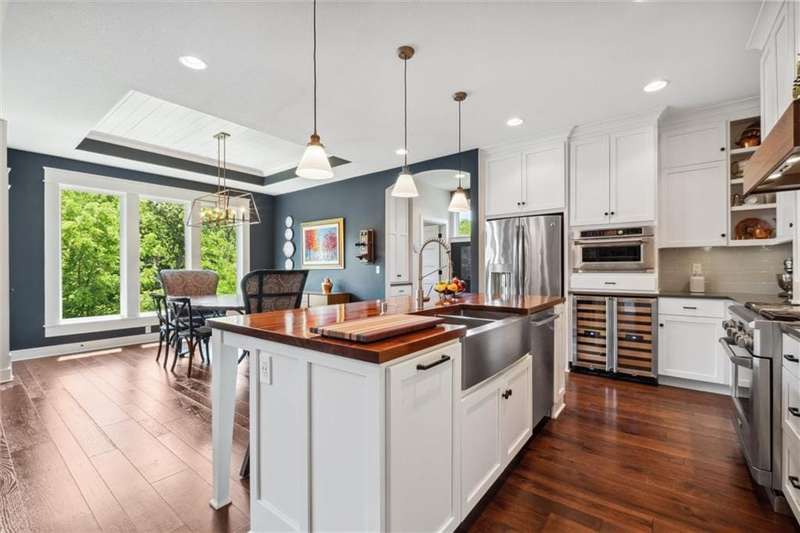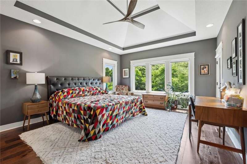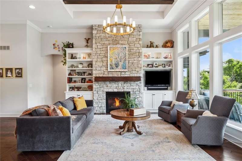 Welcome to this meticulously designed and impeccably maintained Reverse 1.5-story home that blends luxury, comfort, and convenience. Located in the heart of JOCO, this beautiful residence offers easy access to major highways, putting countless amenities just minutes away. From the moment you arrive, youre welcomed by stunning, mature landscaping that sets the tone for whats inside. The spacious main level boasts an open floor plan centered around a striking stone fireplace with built-ins and floor-to-ceiling windows that fill the space with natural light. The main-level primary suite includes power blinds, deck access, and a spa-worthy en suite featuring custom mosaic tilework laid-piece-by-piece and a walk-in steam shower and heated whirlpool tub for ultimate relaxation and wellness. The kitchen features a farmhouse sink, mosaic tile backsplash, wine cooler, and a walk-in pantry with a built-in coffee bar/drink stationperfect for mornings or entertaining. Also on the main floor: a secondary bedroom, private office, laundry room/mud room, and access to the oversized garage, equipped with a mini-split for year-round comfort. The walkout lower level offers three additional bedroomstwo sharing a Jack & Jill bath, and one with a private ensuite. A second living area with a full bar makes for an ideal gathering or entertaining space. Dont miss the HIDDEN, CLIMATE_CONTROLLED ROOM under the suspended garageperfect as a retreat, home gym, or theater. Additional highlights include: New roof (2024) with 40-year Class 4 shingles (transferable warranty), tankless hot water heater, whole-home water softener and purifier, all major mechanicals replaced in 2017, plantation shutters, and diamond-cut concrete in the driveway and covered patio. Pool Table, Card Table & Couch in secret room, all stay with the sale! Home backs to greenspace. This residence stands out with high-end finishes, thoughtful design, and exceptional functionality truly one-of-a-kind.