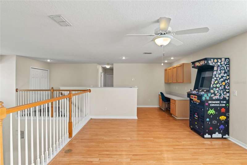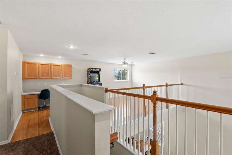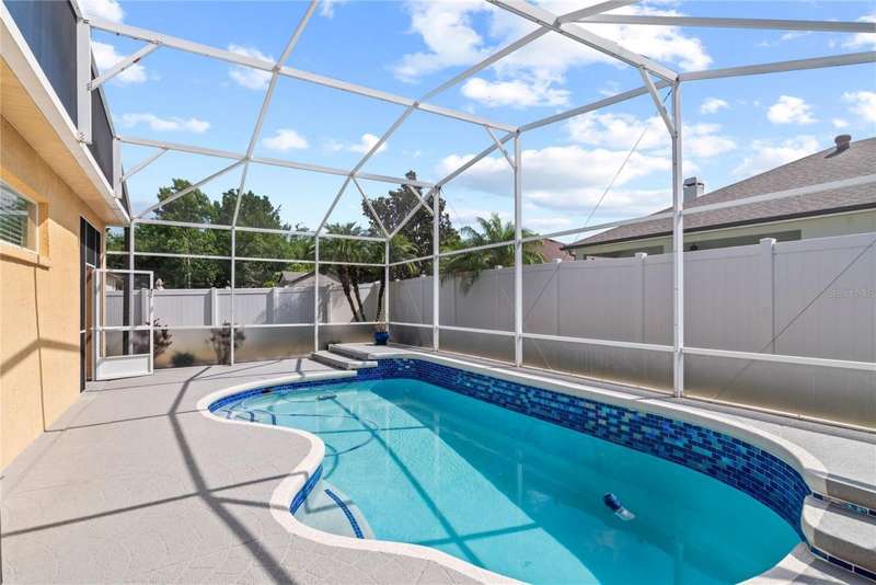 Move-in ready pool home in Lake Mary's desirable gated community of Woodbridge Lakes! This spacious 3-bedroom, 2.5-bath home also features an office/den, loft, formal living and dining rooms, and a large family room, offering plenty of flexible living space. You'll love the dramatic 20-foot ceilings that greet you as you enter, along with the open layout and neutral color palette. The dedicated office or den at the front of the home includes bay windows and is perfect for working from home or a quiet reading space. The kitchen overlooks the family and dining rooms and features granite counters, maple cabinetry, stainless steel appliances, a breakfast bar, closet pantry, and plenty of prep space. Off the family room, a glass slider opens to a newly screened covered patio with privacy screens-ideal for morning coffee or evening relaxation. Just beyond, enjoy your own private, screened-in saltwater pool that's been resurfaced, re-tiled, and includes a freshly redone pool deck and fenced yard.The primary suite is conveniently located downstairs and includes a walk-in closet, access to the patio, and an en-suite bath with dual sink vanity, maple cabinets, a garden tub, glass-enclosed shower, and separate water closet. A half bath and laundry room with access to the 2-car garage are also on the first floor. Upstairs you'll find a spacious loft with a built-in desk-perfect for a homework or gaming station-as well as two additional bedrooms and a full guest bath with double sinks and a tub/shower combo. Recent updates include a new dining room light fixture, re-screened pool enclosure with privacy screens, and updated pool tile and surface. Woodbridge Lakes offers gated security, a community playground, and convenient access to top-rated Lake Mary schools, shopping, dining, SunRail, International Parkway, I-4, the 417, and the 429. Don't miss your opportunity to live in one of Lake Mary's most sought-after communities!