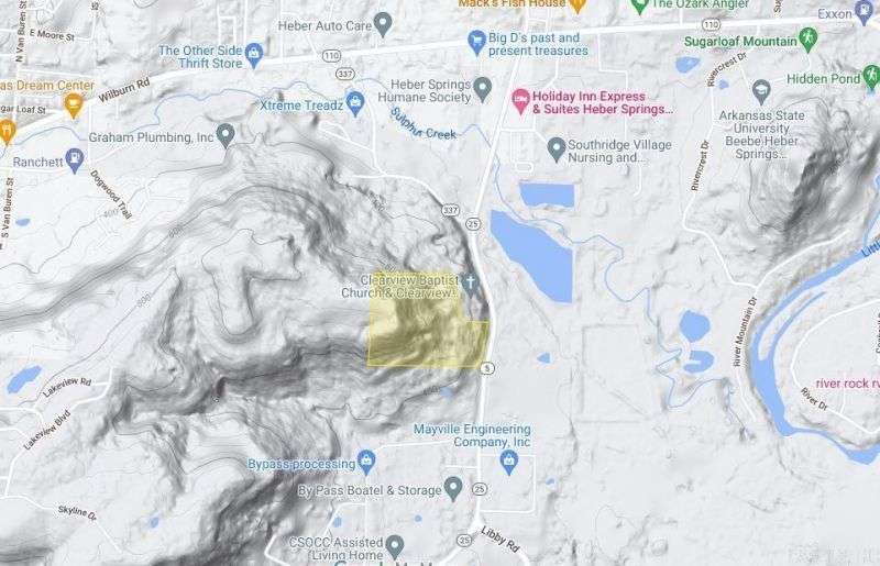 41.65 acres with Hwy 25 bypass frontage, located 1 mile from the Little Red River and approx 3 miles from Greers Ferry Lake, 2021 Arkansas Highway Traffic count is 6800. survey, ownership map, topo map and traffic count in docs online