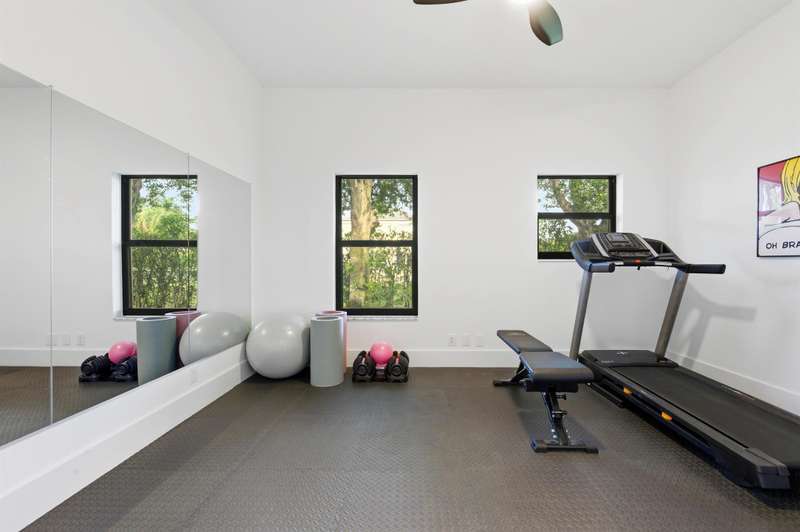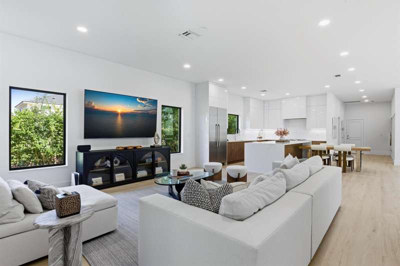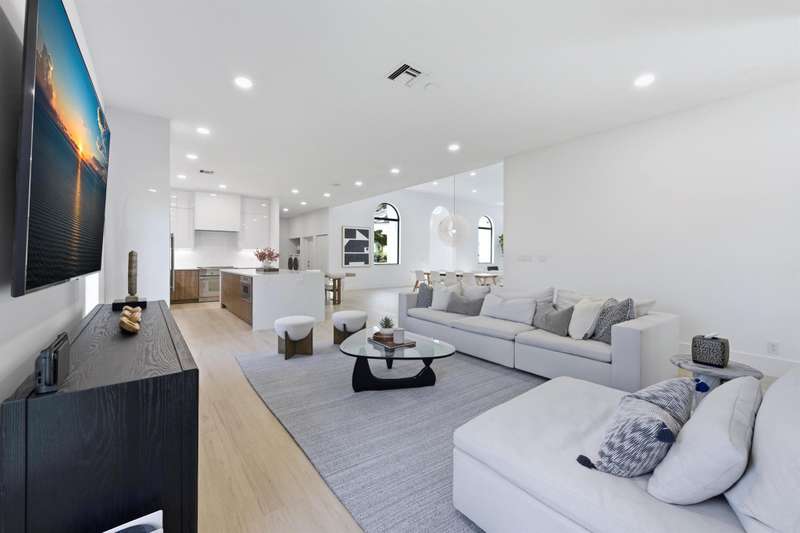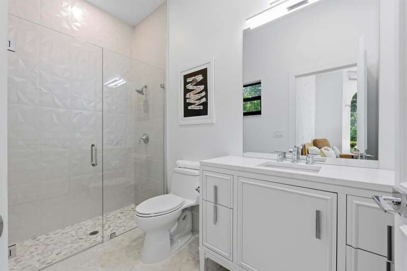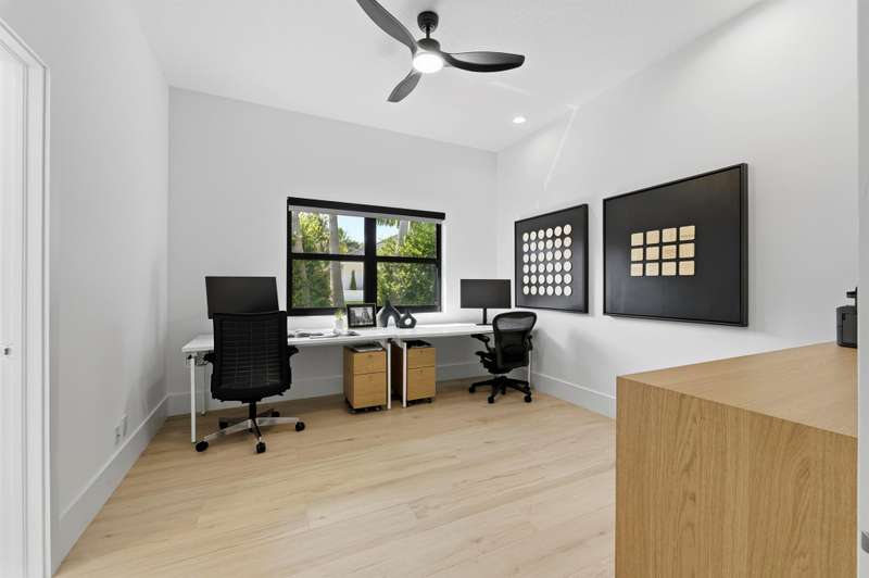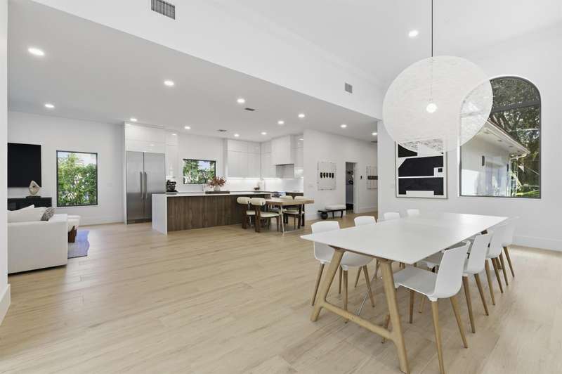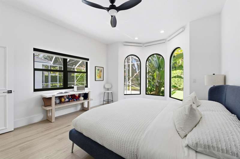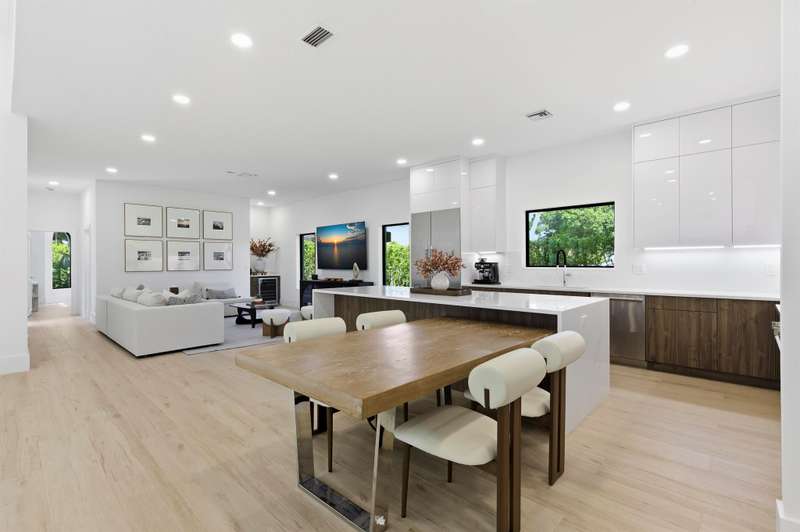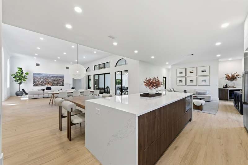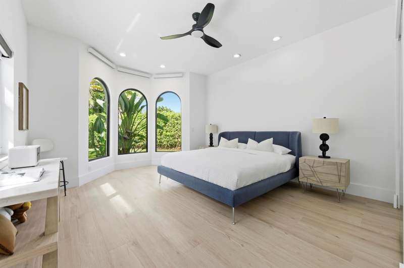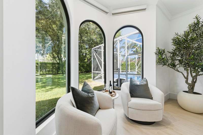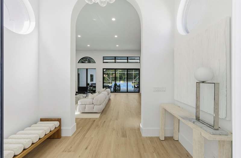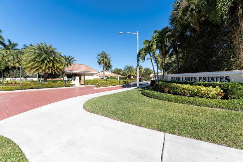 Effortless Modern Luxury in Bear Lakes. Experience the pinnacle of modern design and South Florida living in this fully reimagined single-story residence, nestled on a quiet cul-de-sac within the prestigious gated community of Bear Lakes on Seminole Circle. Meticulously renovated and curated for those who value minimalism, refined comfort, and open-concept living, this 4-bedroom plus flex room (optional 5th bedroom), 4.5-bath home offers 4,505 square feet of luxurious living space designed for both everyday ease and grand entertaining.Step inside through a 15-foot foyer illuminated by a designer chandelier, leading into an expansive great room with 13-foot ceilings and sliders that open to a serene marble courtyard--creating a seamless indoor-outdoor connection.