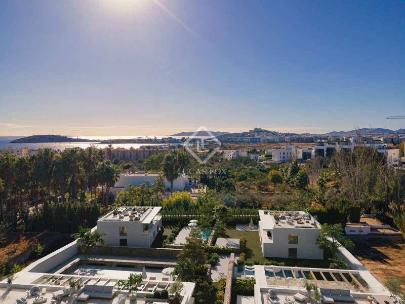 Lucas Fox presents this villa in an exclusive new build development located in S'Estanyol, close to Ibiza town and Talamanca. This magnificent villa is part of a limited series of four villas, making it very exclusive. The villa features contemporary architecture with modern and Mediterranean elements and enjoys abundant natural light with its large floor-to-ceiling windows. The large ceilings of more than 3.7 meters high maximize the feeling of spaciousness. Finally, the villa is southerly aspect, so it receives plenty of natural light throughout the day. The property has a very practical layout , with the main rooms on the ground floor. Here, we find the living-dining room with the open-plan kitchen, with large windows that lead access to the terrace that leads to the rest of the exterior space. The first floor houses the night area, with four spacious bedrooms and four luxurious bathrooms. The rooftop terrace offers a unique experience with 360-degree views. Finally, the lower ground floor offers parking space and other rooms that can be adapted to your needs. Exterior, there is a large 850 m² garden with vegetation and various settings, such as a chill-out area. It also has a private pool, where you can relax while enjoying panoramic sea views. The property includes excellent qualities and finishes, as well as cutting-edge technology, for example with a home automation system and underfloor heating that provides exceptional comfort at all times of the year. In addition, the property has an A+ energy certification that demonstrates the commitment to sustainability and energy savings. The property is located just a few minutes from Ibiza Town and Talamanca with its beautiful beach and enjoys quick access to local attractions, restaurants and nightlife. Completion of the work is scheduled for summer 2025 (villa 2), and mid-2026 (villas 1 & 4). Please contact for more information.