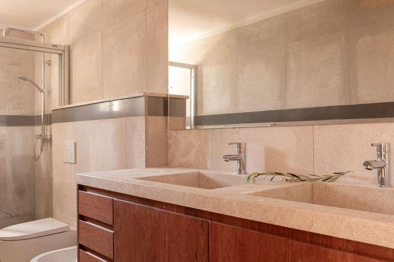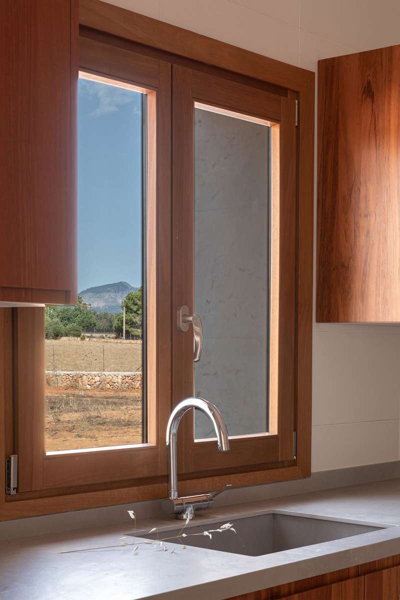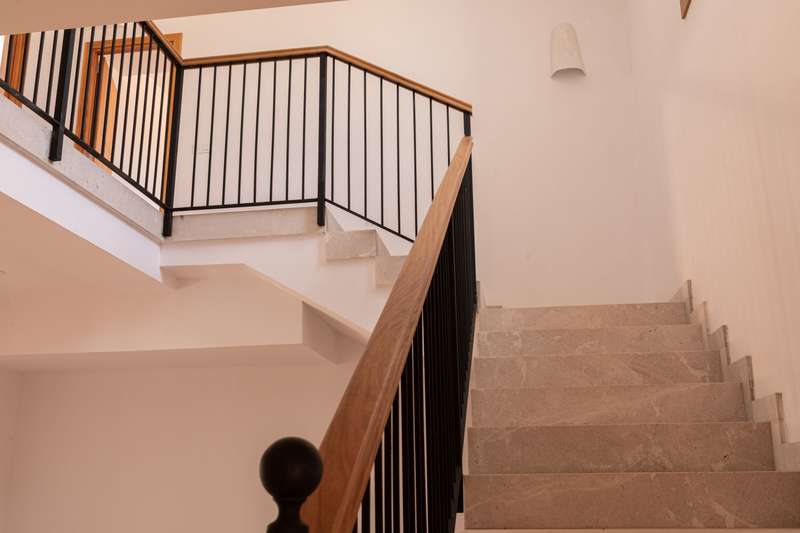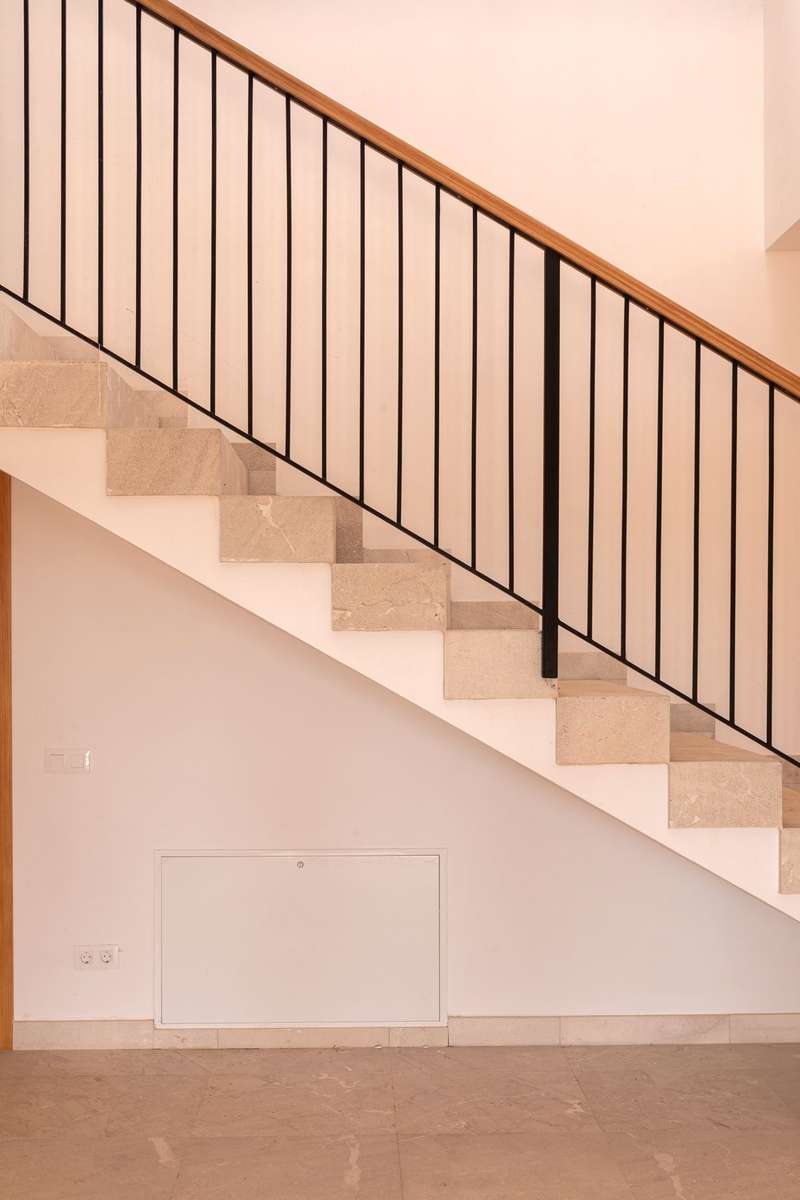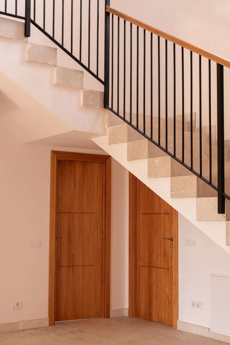 This lovely villa is located in the Pla region of Mallorca with beautiful views of the Tramuntana mountain range. It is a detached house featuring a private pool, garage, and its own water well, set on a fully fenced and enclosed plot of 15,000?m² — ideal for nature and animal lovers. As a newly built villa, completed in July 2025, it is finished to the highest standards. The house features natural Binissalem stone flooring, underfloor heating on both levels, ducted air conditioning throughout, and a wood-burning fireplace in its approx. 450?m² of living space, with the layout as follows: On the ground floor, there is an exceptionally spacious living room with a fireplace and access to a 40?m² covered porch. The living area connects through a wide opening to a large, fully equipped kitchen. This floor also includes a bedroom with an en-suite bathroom, a guest toilet, and an impressive entrance hall. On the first floor, there are four bright and spacious bedrooms, two of which have en-