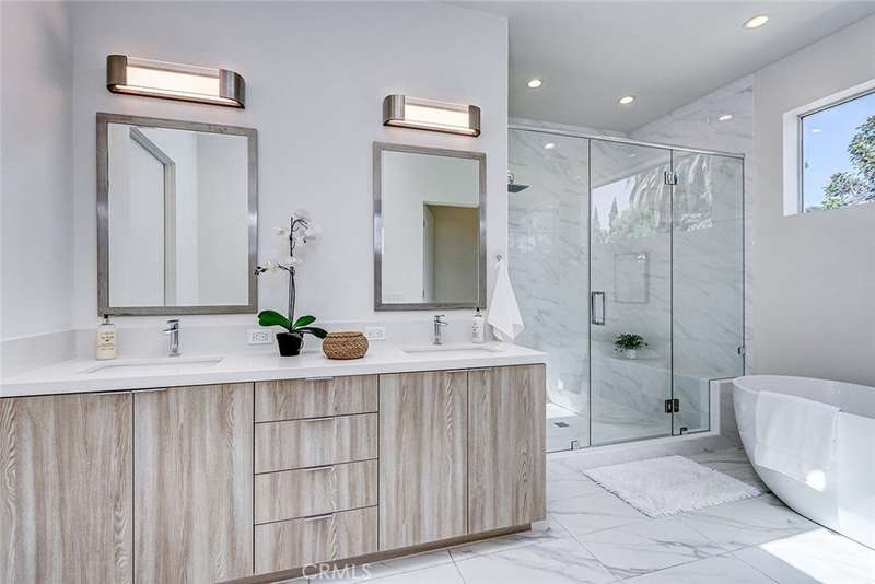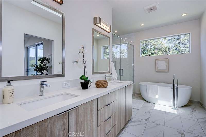 This modern, newer construction home blends contemporary luxury with minimalist elegance. Located on a tree lined street in the desirable Carlson Park neighborhood just blocks from Downtown Culver City. Soaring ceilings, expansive windows, and natural white oak flooring create a bright, open living space. The sleek kitchen features European cabinetry, Thermador appliances, quartz countertops, a large island with seating area and a spacious walk-in pantry. Upstairs, find three en-suite bedrooms and a laundry room. Primary suite has custom cabinetry, quartz counters, marble flooring, oversized shower, soaking tub, walk-in closet, and a private patio. Enjoy seamless indoor-outdoor living with oversized sliding doors leading to a spacious porch and private yard surrounded with a privacy hedge. Additional highlights include a direct access oversized two-car garage currently used as a bonus room/office. Walk to top dining, Erewhon, Trader Joe's, movie theater, and hotspots like the Culver Hotel, the Culver Steps, the Platform and the Ivy Station with Metro access. Close to Sony, Apple, Amazon, and HBO. Walk to desirable Linwood E. Howe Elementary, CCMS, CCHS, Carlson Park and La Ballona Bike path. A rare opportunity in one of LA's most sought-after neighborhoods!