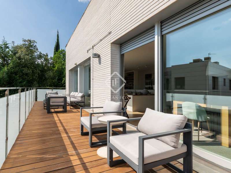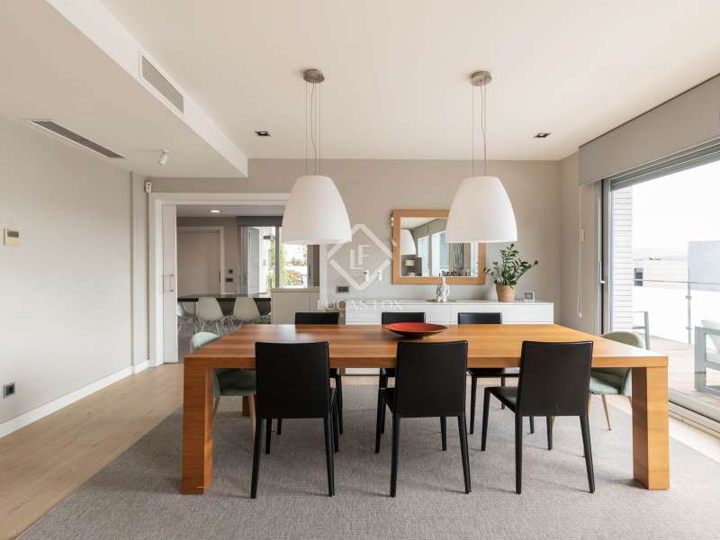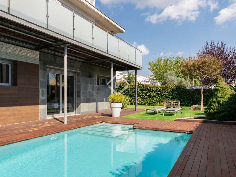 Lucas Fox is pleased to present this luxurious and spacious home in the exclusive area of Can Matas, Sant Cugat del Vallès. This impressive property, with a built area of 555 m² and a usable area of 474 m², sits on a 787 m² plot . The property is spread over three floors connected by an elevator, with a clear separation between the day and night areas . On the ground floor, we enter the house through a spacious entrance hall that leads to a bright and airy living-dining room with a fireplace and direct access to a large terrace, ideal for gatherings and family gatherings. The semi-open kitchen is equipped with high-end appliances and a spectacular central island. This floor also includes a double bedroom with a full bathroom and access to the garage with capacity for two large cars and a motorcycle. The first floor is used as a night area, with three exterior bedrooms with built-in wardrobes. One of them has a full bathroom and a private living room, while the other two share a bathroom. All rooms access onto a large terrace with stunning views of the Collserola mountain range, perfect for enjoying unique sunsets. On the lower ground floor, there is a multipurpose space with direct access to the garden, ideal as an study, summer dining room , or additional living room. Here you will find a spacious bedroom with a full bathroom and dressing room, as well as a practical games room. The exterior features a beautiful private garden and a saltwater pool, inviting you to enjoy the tranquility and Mediterranean lifestyle. The property is equipped with high-quality finishes, an elevator serving all floors, and design details that make it a unique property on the market, such as aerothermics, osmosis, and solar panels. Its location in Can Matas offers tranquility and is close to schools, green areas, amenities and excellent connections to Barcelona. Contact us for more information.