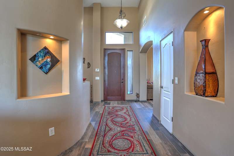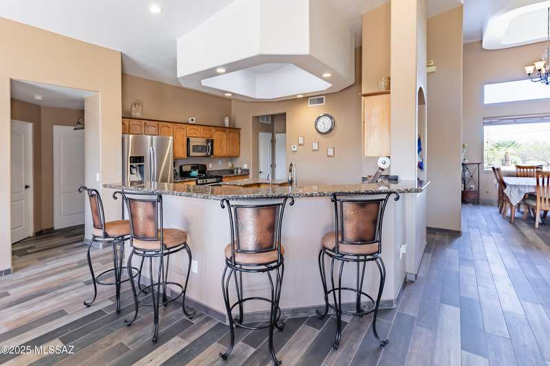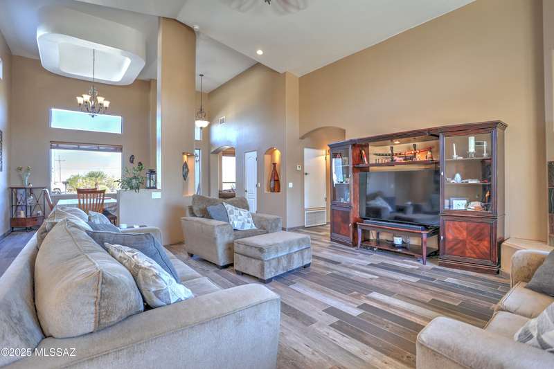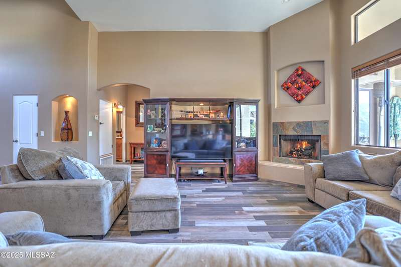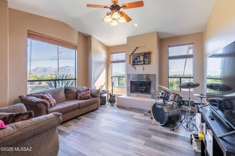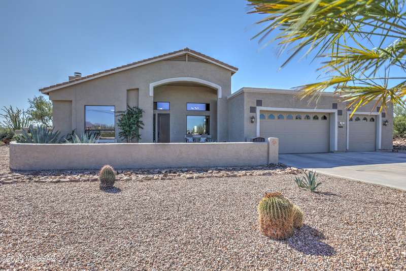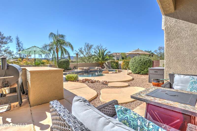 Elevated lot, 360 degree mountain views, city lights to the east, Turn Key ready. The perfect floor plan for large gatherings. This has every buyers wishe. Quality is #1, Great-room, Island Kitchen, office at entry (currently a family room) and private flex-room (off primary), sky lights throughout, Pool, Spa, BBQ, fire-pit/conversion area, 3/4 acre of open owner land around the home. Plus, Jacuzzi tub, formal dinning, Breakfast nook and counter kitchen area, split plan, three fire places, walk-in closet, and a 3.5 size garage. Private cul-de-sac lot, plenty of parking, large bedrooms and solar. Front walled court yard enclosed, walled backyard and side storage. Custom home, great quality. Parking for 9 vehicles. Something for everyone. See agent remarks.