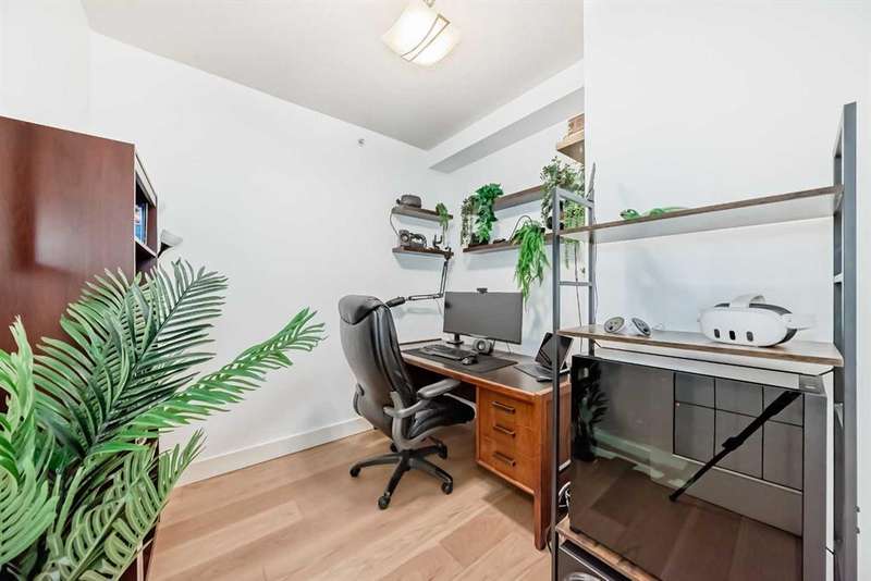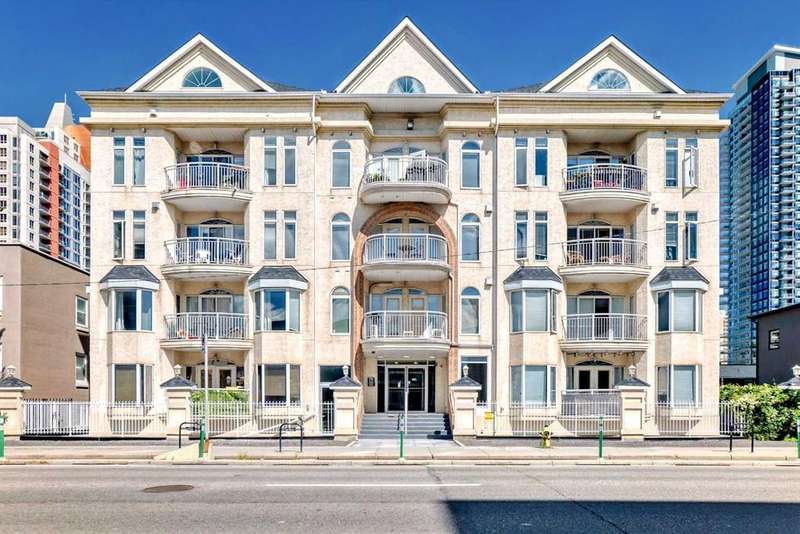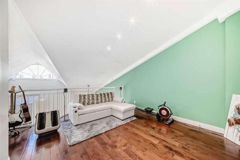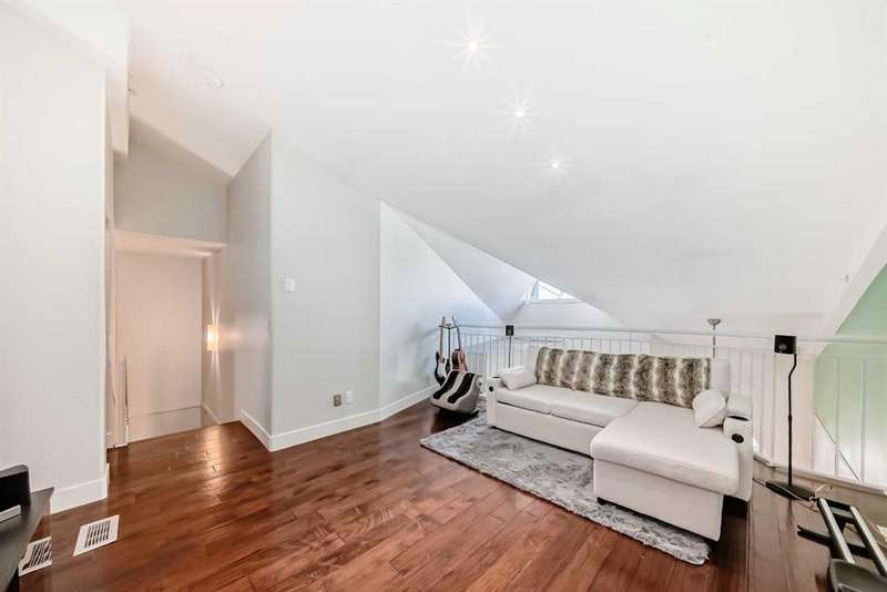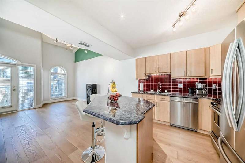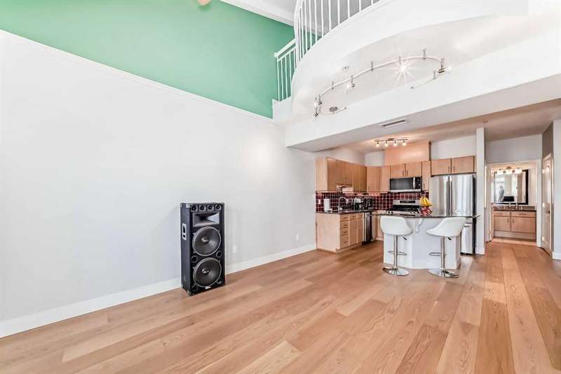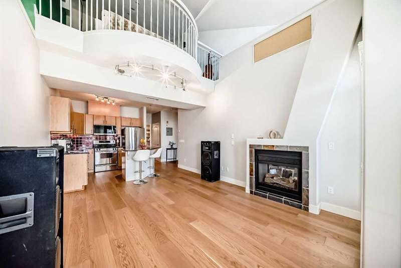 Welcome to sophisticated urban living in the heart of Calgary’s vibrant Beltline! This rare two-story AIR CONDITIONED penthouse offers an impressive 1,191 sq ft of sun-filled space, blending striking architecture with everyday comfort. Step inside to soaring two-story ceilings in the living room, where floor-to-ceiling windows bathe the space in natural light. A striking two-way gas fireplace connects the living area to the king sized primary bedroom, creating both visual appeal and cozy warmth. The open kitchen area is ideal for hosting, with generous counter space and a layout that encourages conversation. The home’s thoughtful design places the primary bedroom and a separate enclosed room—currently used as a home office—on opposite sides of the unit for privacy. Upstairs, the loft space overlooks the living room below, offering the perfect spot for a media lounge, creative studio, or reading nook. Additional storage needs are easily met with a dedicated in-unit storage room plus bonus loft storage. One titled underground parking stall is included and conveniently located just steps from the elevator. Pets are welcomed here with board approval. Living here means more than just owning a stunning home—you’ll enjoy the unmatched walkability of the Beltline, with trendy cafés, award-winning restaurants, boutique shops, and vibrant nightlife just steps away. Green escapes and community events bring a perfect balance of energy and relaxation to daily life, while nearby C-Train access makes commuting effortless. This exclusive top-floor residence combines striking design, smart functionality, and an unbeatable location—a truly rare find in Calgary’s most sought-after urban neighbourhood.