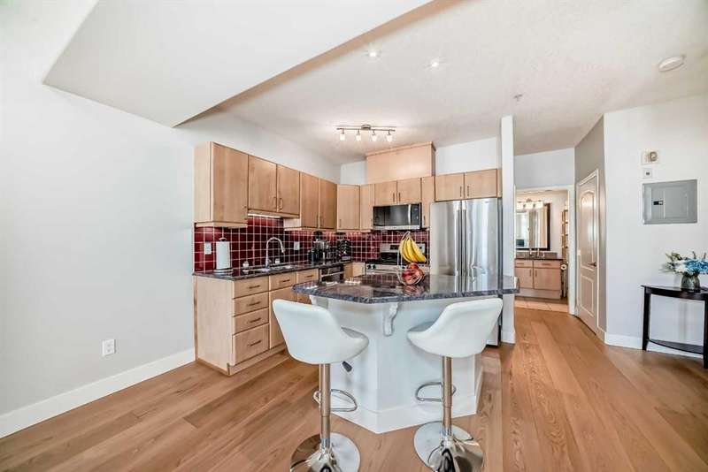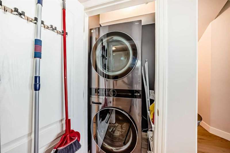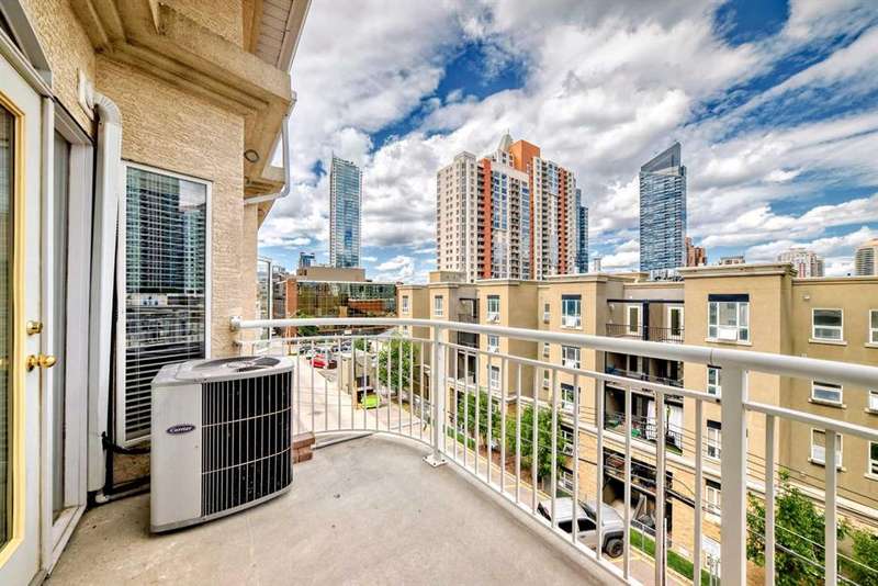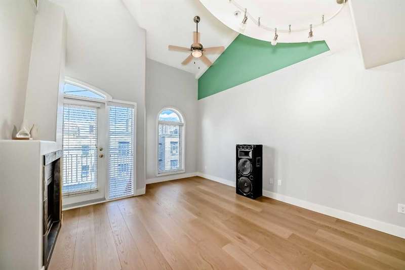 Welcome to sophisticated urban living in the heart of Calgary’s vibrant Beltline! This rare two-story AIR CONDITIONED penthouse offers an impressive 1,191 sq ft of sun-filled space, blending striking architecture with everyday comfort. Step inside to soaring two-story ceilings in the living room, where floor-to-ceiling windows bathe the space in natural light. A striking two-way gas fireplace connects the living area to the king sized primary bedroom, creating both visual appeal and cozy warmth. The open kitchen area is ideal for hosting, with generous counter space and a layout that encourages conversation. The home’s thoughtful design places the primary bedroom and a separate enclosed room—currently used as a home office—on opposite sides of the unit for privacy. Upstairs, the loft space overlooks the living room below, offering the perfect spot for a media lounge, creative studio, or reading nook. Additional storage needs are easily met with a dedicated in-unit storage room plus bonus loft storage. One titled underground parking stall is included and conveniently located just steps from the elevator. Pets are welcomed here with board approval. Living here means more than just owning a stunning home—you’ll enjoy the unmatched walkability of the Beltline, with trendy cafés, award-winning restaurants, boutique shops, and vibrant nightlife just steps away. Green escapes and community events bring a perfect balance of energy and relaxation to daily life, while nearby C-Train access makes commuting effortless. This exclusive top-floor residence combines striking design, smart functionality, and an unbeatable location—a truly rare find in Calgary’s most sought-after urban neighbourhood.