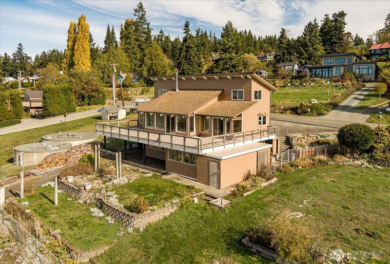 Panoramic West-Facing Views in Coveted Bush Point. 180° sweeping vistas of Admiralty Inlet, the Olympic Mountains, & the ever-entertaining shipping lanes from this spacious Bush Point home. On two lots, this 3-BR, 3+ Bath home offers room to breathe & space to gather. Watch eagles soar, whales pass by, and salmon leap - all from our expansive deck or great room with open-beam ceilings & a wall of windows. The open kitchen & living area flow for easy entertaining. Flexible spaces include an office, hobby room, & a generous rec room. Two driveways, abundant storage, & a room that could easily convert back into a garage. Enjoy community amenities: the private boat launch, beach access, & some of the island's best fishing. Welcome to Whidbey!