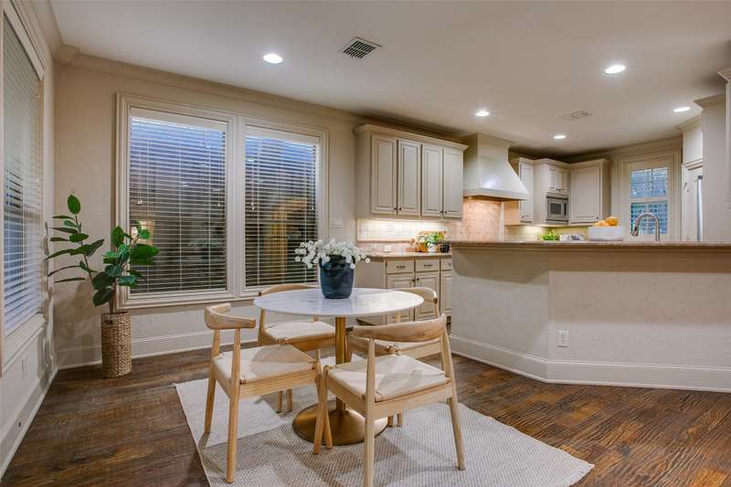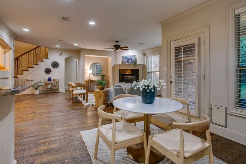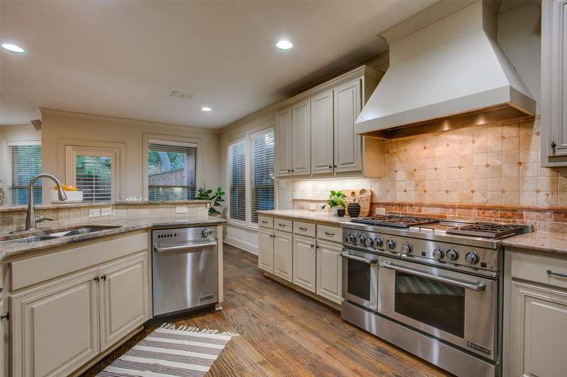 Nestled on a corner lot in the heart of Lakewood Hills, this residence feels less like a house and more like a setting for lifes unfolding moments. Step into the two-story foyer where sunlight spills down from above, guiding you into a living room framed by a fireplace and an expanse of windows that open the home to the trees beyond. The rhythm of the main floor flows with ease; dining and living blending naturally with a kitchen designed as the heart of the home. Here, granite counters, stainless steel appliances, and a professional gas range ground the space in both function and beauty, while a breakfast nook carries you outside to the covered veranda. Everyday details are thoughtfully placed: a wood-paneled office with warmth and presence, a guest suite tucked downstairs for privacy, and a mudroom that quietly organizes the flow of daily life. Upstairs, the primary suite rises to meet vaulted ceilings and a wall of floor to ceiling windows, a retreat defined by openness and calm. The bath pairs a generous shower with a soaking tub, while dual vanities and a walk-in closet complete the picture of intention. Two additional bedrooms and a laundry room round out the second floor, offering both comfort and connection. Out back, evenings stretch long beneath the canopy of mature trees. The veranda runs the length of the home, overlooking a fenced lawn where fireflies flicker at dusk; a reminder of natures quiet magic in the heart of Dallas. Beyond the doorstep, the location connects seamlessly to daily life: a short walk to White Rock Lake and its winding trails, just a block from favorite neighborhood restaurants, and part of the highly regarded Lakewood Elementary district. Fifth bedroom is the office as its separate dedicated space in addition to the other 4 bedrooms. Recent updates include roof replacement, cedar fencing with automated gate, and two replaced water heaters.