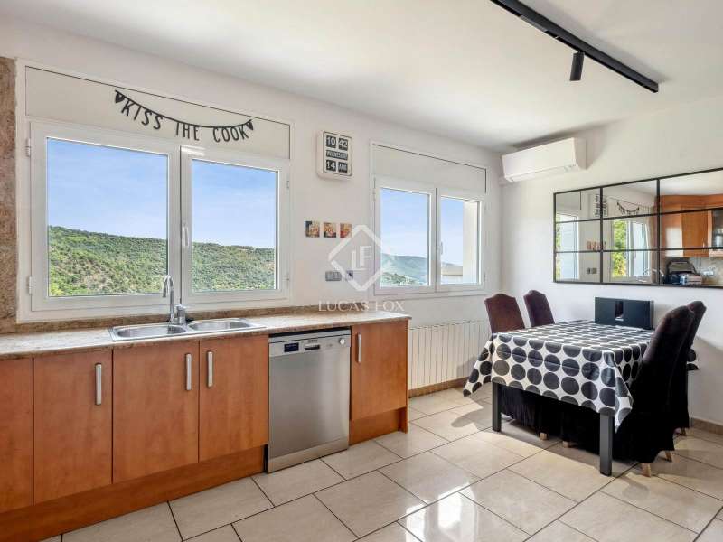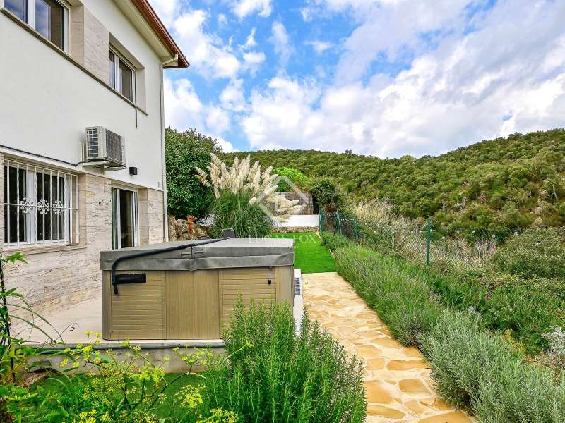Lucas Fox presents this five-bedroom house for sale in Calonge, Costa Brava. The property is located in the exclusive residential area of Cabanyes, just 5 kilometres from the most impressive beaches of the Costa Brava. It is distinguished by its impeccable condition and by having a unique design in every detail. The house is spread over two floors. Upon entering the main floor , a spacious and bright living room welcomes us. It has large windows facing south and north, which provide plenty of natural light throughout the day. From the living room, there is direct access to the garden, which has a heated pool and a covered area, perfect as an outdoor bedroom area . On this same floor, there is a fully equipped kitchen diner , with a large pantry and utility room. In addition, there is an additional toilet on this floor. The garage, with space for two cars, is internally connected for greater convenience. The ground floor, intended for relaxation, houses four spacious bedrooms, including two double bedrooms. The main bedroom has an en-private bathroom and access to a private terrace with a Jacuzzi, ideal for relaxing in total privacy. An adjoining room offers versatility, as it can be used as a fifth bedroom, study or dressing room. The layout of the house is designed to ensure privacy and comfort for all its inhabitants. The property, surrounded by a privileged natural environment, offers spectacular mountain views. With its multiple terraces, barbecue area, jacuzzi and heated pool, this house is ideal for families or for those looking for a spacious and private home in an exceptional setting. In addition, the house has a tourist license. Please contact for more information.
