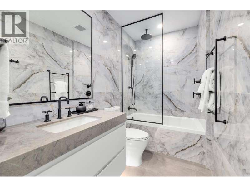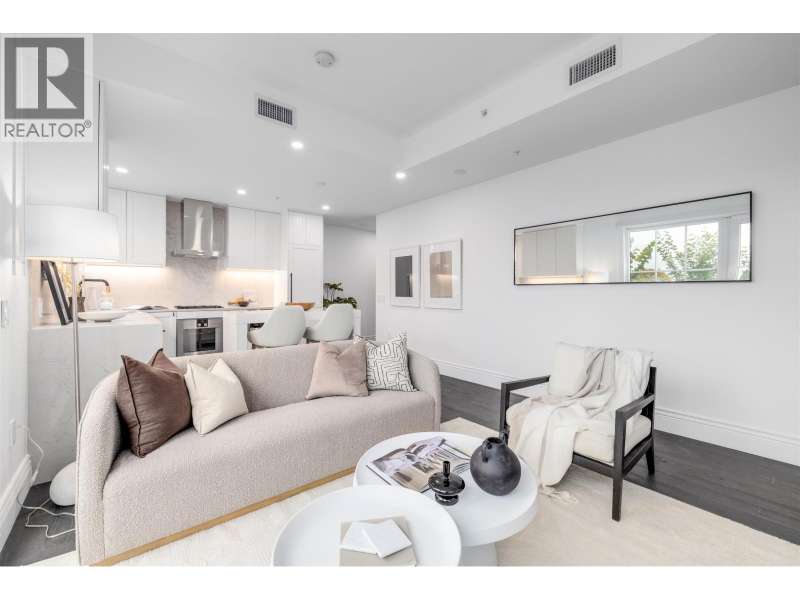 Discover Chloé in the prestigious heart of Kerrisdale. This 624 SF 1-bedroom+den with large 624 sf private deck features Parisian-inspired interiors by CHIL Interior Design, overheight ceilings, herringbone engineered hardwood floors, Italian porcelain tile, and Gaggenau appliances including a gas cooktop. Bath boasts quartz counters, Kohler sink and fixtures, plus Nu Heat in-floor heating. Air conditioning included. Quality concrete construction ensures durability, complemented by a 2-5-10 year warranty. Enjoy concierge service, elegant lounge & music room, fitness studio, landscaped courtyard with seating, and a common rooftop terrace. Steps from boutique shops, cafés, parks, and top schools, offering effortless city living in a serene, historic neighborhood. (id:58403)