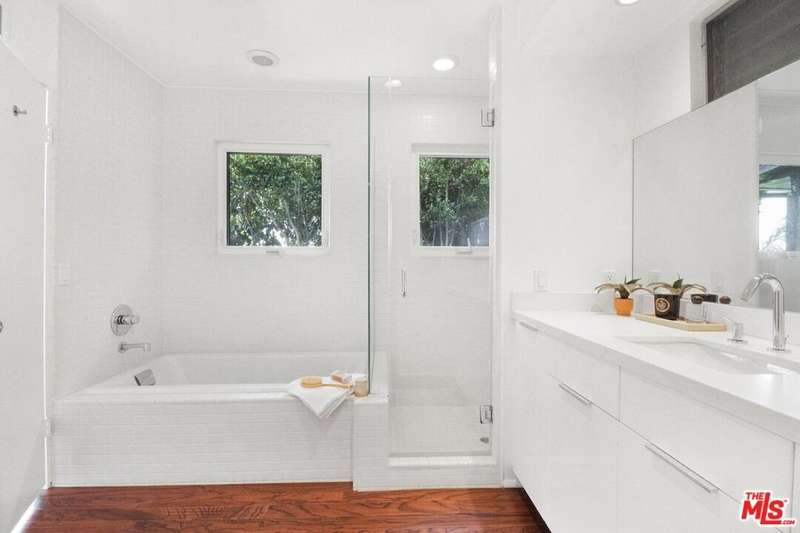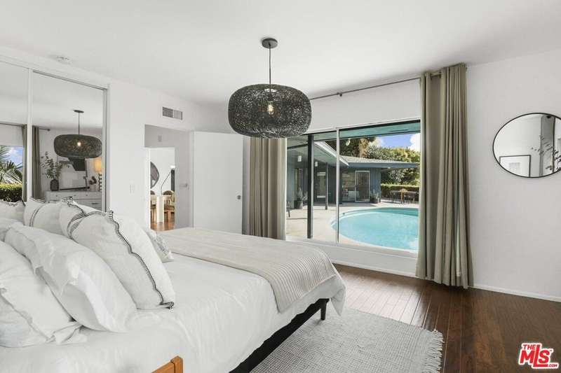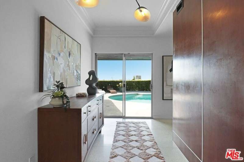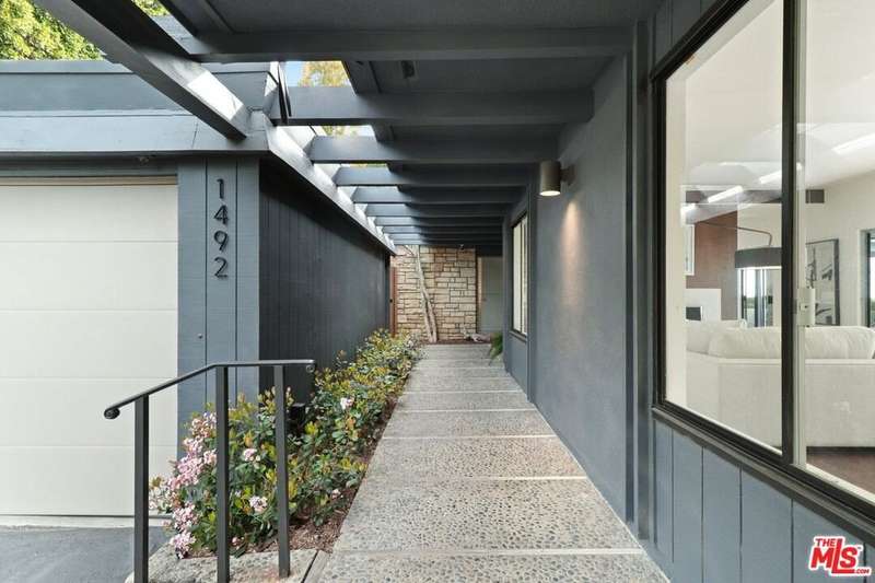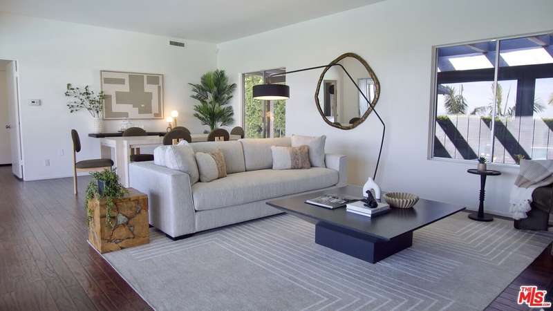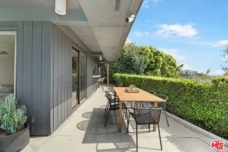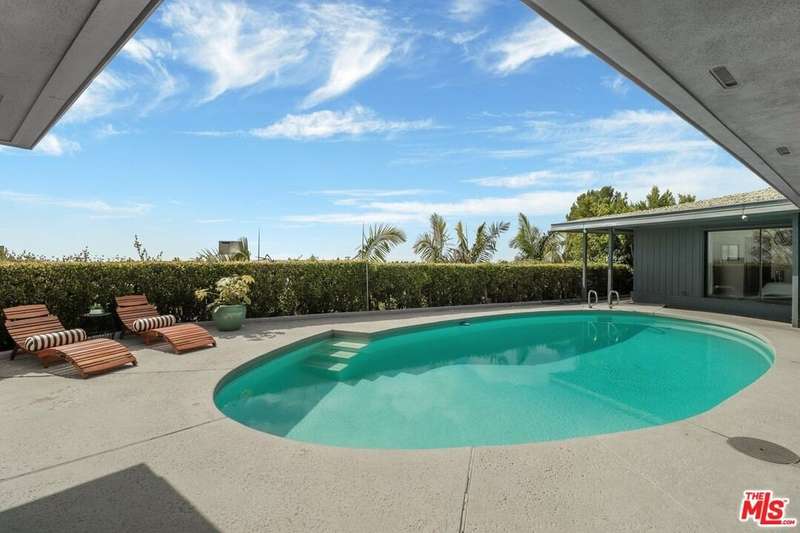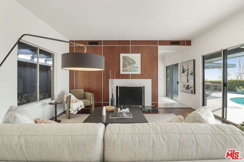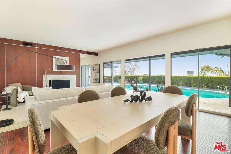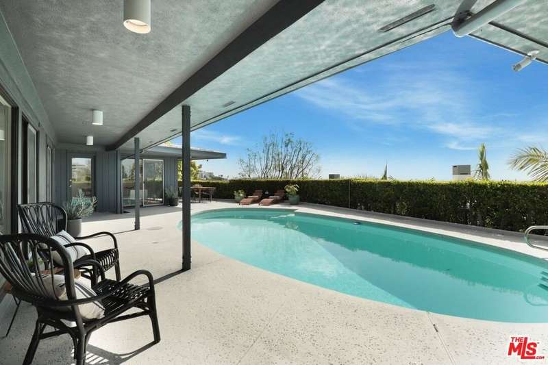 Perched along the illustrious Blue Jay Way, within the coveted enclave of the Bird Streets, resides an exceptional offering: a Mid-Century modernist jewel presenting unparalleled value. This residence, spanning a generous 2,413 square feet, graces a remarkably level parcel, commanding sweeping, jetliner vistas that stretch from the vibrant tapestry of Downtown Los Angeles to the shimmering expanse of the Pacific Ocean. A symphony of minimalist design and seamless indoor-outdoor living unfolds within, featuring three bedrooms and three baths. Expansive floor-to-ceiling glass walls and sliding doors artfully dissolve the boundaries between interior and exterior, creating an effortless flow from the entertainer's living room, anchored by a sleek fireplace, to the formal dining and family rooms, and finally, to the secluded, sun-drenched pool terrace. This residence presents a rare duality: a move-in-ready sanctuary, or a canvas for visionary transformation. Ready-to-issue (RTI) architectural plans, meticulously crafted by the esteemed firm TagFront, await, offering a turnkey opportunity to realize a contemporary masterpiece. These plans, the result of a meticulous two-year approval process, promise to elevate the property with a design that celebrates natural light, amplifies indoor-outdoor connectivity, and maximizes the breathtaking panorama. Renderings, detailed floor plans, and comprehensive construction bids are available for discerning eyes, offering a glimpse into the potential of this exceptional property. This is a singular opportunity to acquire a coveted address on Blue Jay Way, where architectural ingenuity meets the unparalleled allure of the Bird Streets.
