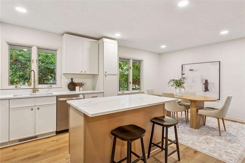 Completely renovated from top to bottom, this all-brick rambler offers timeless curb appeal with every modern convenience. A welcoming front porch leads to a bright, open floor plan. The fully updated kitchen features a center island, stylish coffee bar, and modern finishes that make everyday living and entertaining a breeze. The blend of brand-new LVP flooring with refinished original oak floors strikes the perfect balance between modern design giving a respectful nod to its original mid-century vibe. Four bedrooms on the main level including an stylish primary suite with a custom-tiled bath, and three beautifully finished baths. The lower level provides a spacious family room, home office, laundry, and mudroom. All the major updates are complete - new HVAC, plumbing, electrical panel, drain tile, sump pump, doors, and more! Situated on a quiet, tree-lined street, this turnkey home is just minutes to Theodore Wirth Park, trails, lakes, shopping, dining, and downtown Minneapolis, offering the perfect blend of comfort, style, and location.