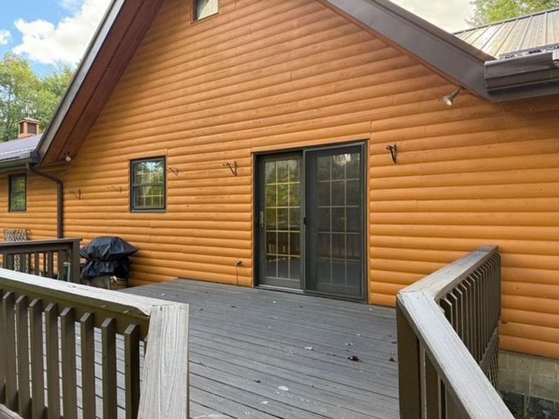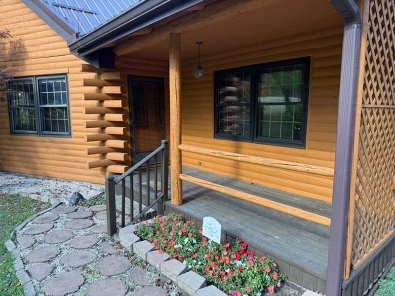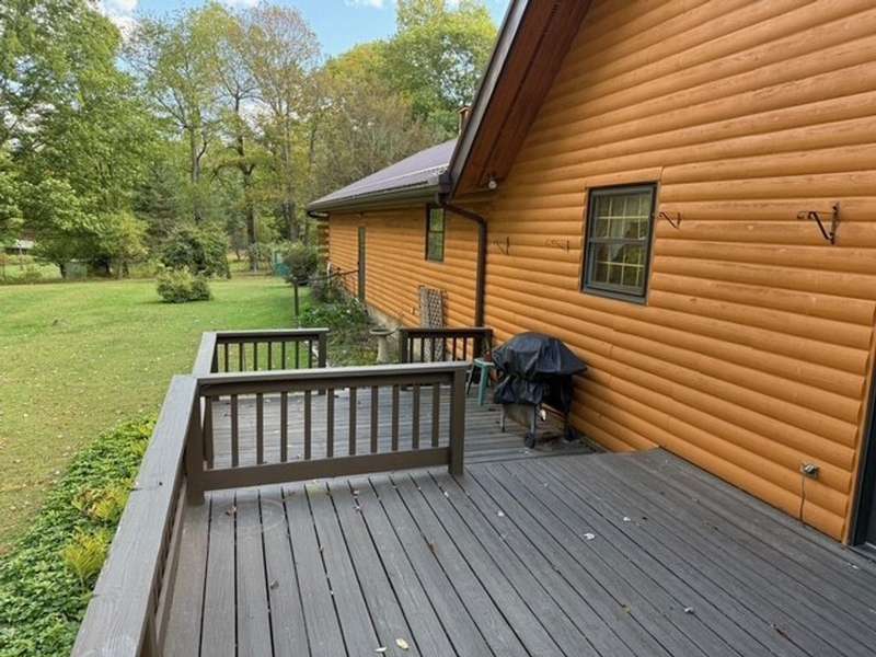Amazing Log Home with elevator on 2.86 beautiful acres in Mercer County! Cathedral, vaulted ceiling, a gorgeous two-sided cut-stone fireplace and open concept contribute to the WOW factor! 2 level private deck, loft above kitchen and dining room, newer metal roof, storage shed, playhouse, full basement, bonus room off garage, and greenhouse are just some of the amenities. Gazebo in the fabulous yard!! Home recently painted (2022).