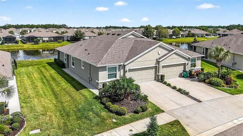 Exceptional, MAINTENANCE-FREE living starts HERE at Stonebrook in Watergrass! Your new home awaits in the Villas of Stonebrook, a maintenance-free village of the resort-amenity rich community of Watergrass. Your new home has an extra wide lot and a stunning pond view. Single story floor plan with tile flooring has ample living space and 3 bedrooms + a great outdoor lanai space. The Siesta floor plan has a 3 way split of the rooms with the central living areas staying open and accessible to all. Enter into the living area with bright glass sliders to your outdoor views. The kitchen and dining area seat a table of 4-6 comfortably and 3 additional seats at the island. Stainless steel appliances and a closet pantry make for a great space to cook and stay connected to the rest of the home. The primary suite also faces the stunning back yard water views. Large walk-in shower, dual sinks, and walk-in closet make this living area a great retreat from the other bedrooms. Bedroom 2 is situated toward the front of the property next to bathroom 2 with tub and shower. Bedroom 3 sits centrally to the home and can also be used as an office, flex space, play area, work out room- the options are endless for you! Another spacious walk-in closet is in bedroom 3. The Watergrass community prioritizes recreation and amenities for its residents. Events throughout the year, a playground and park/green space in every village, and not one but two amenity centers. Play tennis year round or work out at the Watergrass Club. Our clubhouse has a resort pool and 6=lane Jr Olympic lap pool, tennis courts, fitness center, work/meeting space, and full kitchen. The resort pool will be heated during the cooler Florida months for year-round enjoyment. Prefer pickleball and a picnic? We've got you! Promenade Park is where our third pool can be found, dog park, splash pad, outdoor pavilion, and picnic/playground/park areas PLUS we are adding two pickleball courts! Our amenities put a focus on our community but in case you still needed more, venture down Overpass Rd for everything you need close by! CircleK, Starbucks, Publix, Chase Bank, GoodVets, Nail Salons, Chick Fil-A, Florida Medical Clinic, and more retailers coming soon. There's truly not much they left out. Be 10min from I-75 highway access to our beautiful Gulf beaches and downtown Tampa attractions, or just stay close to home and enjoy all Watergrass has to offer. We welcome YOU to Watergrass!
