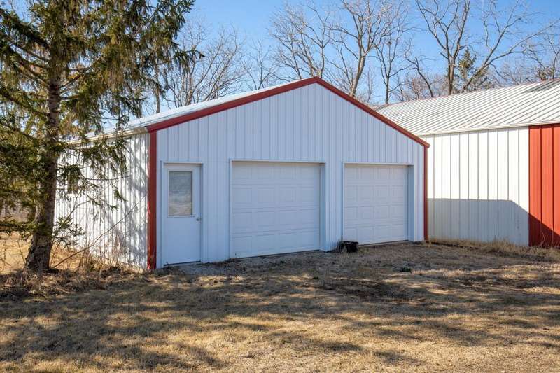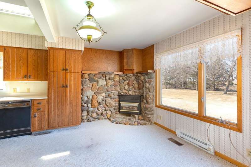 LOCATION - LOCATION - LOCATION.......Situated on 3.96 acres and on a hard surface road, this desirable property is approx. 2 miles north of Allison. This charming home offers country comfort at its best. The eat-in kitchen has many cabinets, and a nice work area plus enjoy the gas, stone fireplace in the breakfast nook. There is a large, open dining-living area with welcoming natural light that flows throughout the living space. There is a bonus room off of the kitchen that offers laundry area and would be a great office space or family room. Lots of natural light in this space also. If you feel you need additional light, there are two skylights, one in the kitchen and one in the bonus room. There is one main floor bedroom and full bath. The second floor has two nice size bedrooms and half bath. The full basement is used for storage. There is a two-car attached garage (980 sq. ft.) with a large workshop area. Take a look at the 44 x 60 steel utility building w/concrete floor and a 24 x 28 metal building. Lots of tender loving care has been given to this country property and it shows! New septic system installed up to Iowa code.