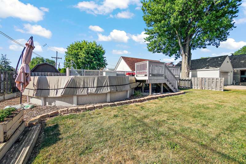 Welcome to the cutest 3-4 bedroom, 1.5 story home tucked in the heart of central Bourbonnais! A covered front porch invites you inside where charm meets function. The cozy living room features a gas fireplace with built-ins, creating the perfect gathering space. The beautifully updated eat-in kitchen boasts maple cabinetry, stone countertops, stainless steel appliances and a pantry for extra storage. Two main floor bedrooms showcase hardwood floors, while the upstairs offers a third and possibly fourth bedroom to fit your needs. Convenience continues with main floor laundry and an enclosed porch/breezeway that's truly a vibe.. ideal for morning coffee, casual dinners, or curling up with a book. Step outside to enjoy the above ground pool with a huge deck for summer fun, or gather around the fire on the lower deck, all within the fenced yard. A shed provides additional storage and the oversized 2.5-car garage with extra concrete drive space makes room for projects, parking, and play. Roof (2022), HVAC components (2021), pool pump and filter (2023), plus a perma-sealed crawl space. Centrally located near shopping, schools, groceries, and restaurants, this home truly offers comfort, convenience and character all in one!