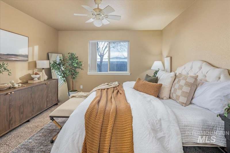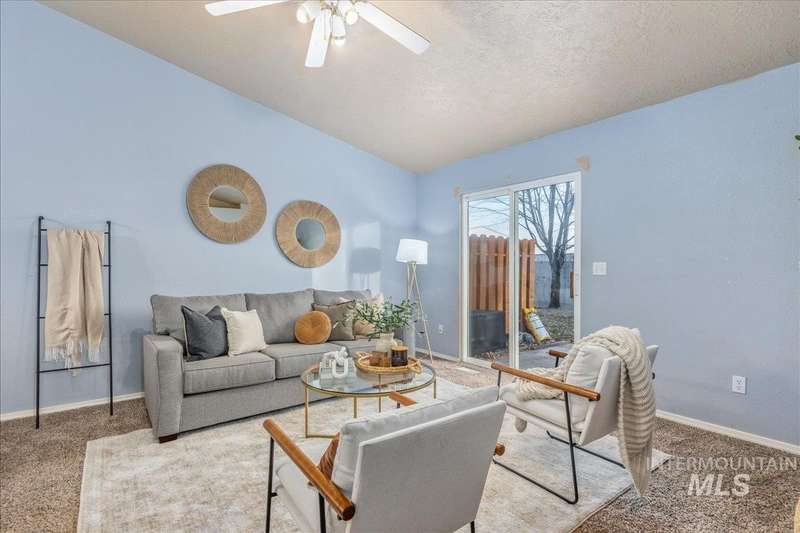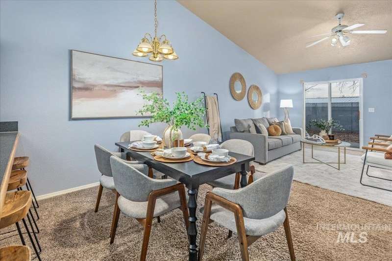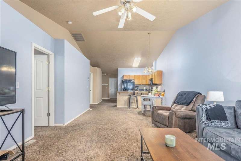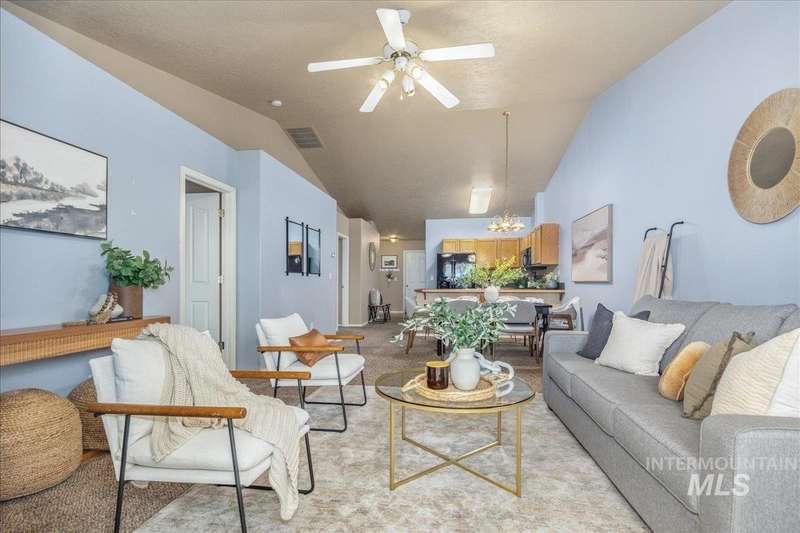 Welcome to effortless single-level living in this charming 2-bedroom, 2-bath home designed for comfort and convenience. Step inside and enjoy an inviting open floor plan highlighted by soaring vaulted ceilings that create a spacious atmosphere perfect for both relaxing and entertaining. The thoughtfully designed kitchen flows seamlessly into the living and dining areas, making gatherings easy and enjoyable. The private primary suite features a generous walk-in closet and en-suite bath, offering a peaceful retreat at the end of the day. A second bedroom and full bath provide flexibility for guests, an office, or hobbies. Practicality meets peace of mind with a two-car garage and the added privacy of no rear neighbors. Conveniently located near the airport, freeway access, shopping, dining, and entertainment, this home offers the ideal blend of lifestyle and location. Best of all, the HOA makes low-maintenance living simple by covering landscaping, water, mowing, sprinkler care, tree trimming, exterior painting—allowing you to spend less time on chores and more time enjoying life. With style, convenience, and comfort built in, this home is ready to welcome its new owner.