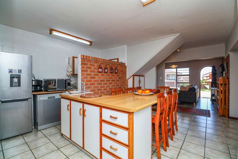Lovely Lock Up and Go, low maintenance Family Home in Bay View. Discover this rare find in the highly sought-after and secure Bay View, Hartenbos – a modern double-storey 4-bedroom family home, two bedrooms downstairs, and 2 bedroom upstairs, just 250m from the pristine Blue Flag beach. Perfectly designed as a low-maintenance lock-up-and-go holiday home, this property offers a lifestyle of comfort, convenience, and relaxation along the Garden Route. Upstairs, the home features a spacious open-plan living and braai room that flows effortlessly, with large windows capturing distant sea views as well as the beauty of Mossel Bay. With 4 well-sized bedrooms and 2 bathrooms, this home provides ample space for family and friends to enjoy. Equipped with solar panels and a backup battery, you can enjoy uninterrupted living while keeping running costs low. Hartenbos is one of the Garden Route’s most popular holiday destinations, boasting Blue Flag beaches, golf courses, game farms, wine estates, and hiking trails – all waiting to be explored. With George Airport only 40km away, this is the perfect holiday retreat or permanent residence. Homes like this in such a prime location are truly rare. Don’t miss the opportunity to make this seaside gem yours.