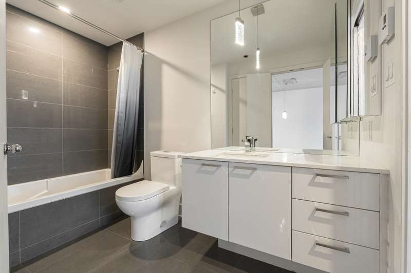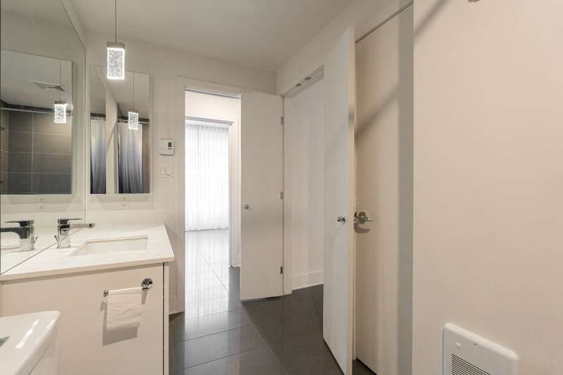 Impeccable one bedroom, one bathroom modern condo ideally located right by the Lachine Canal in Griffintown! This condo includes built-in appliances in the kitchen, washer and dryer, primary bedroom with walk-in closet and ensuite full bathroom dually accessible by the hall, and a storage locker! This building features a rooftop terrasse with pool, indoor pool, gym, and common room. In proximity to Atwater market, ETS, A-740, Rue Notre-Dame, Pont des Seigneurs. Close to the Georges-Vanier metro and bus routes 35 and 36.