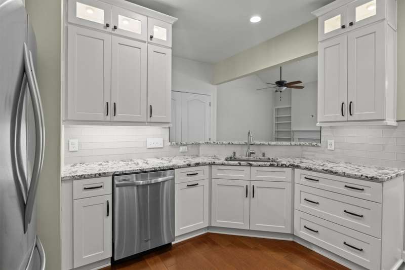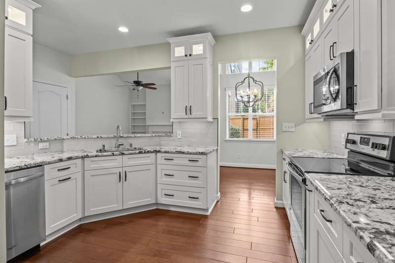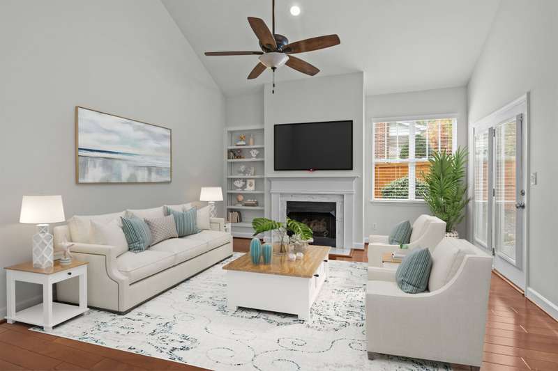 Experience Lake Norman living within the coveted Harborside Community. You'll be able to greet your new neighbors from your charming covered front porch! This luxury end-unit, 3-bedroom, 2.5-bath, 2-story home features a 2-car garage and a host of modern upgrades. You'll appreciate the thoughtful updates throughout, including the kitchen, primary bathroom, fresh paint, new smoke/carbon dioxide detectors, updated window blinds, new hardware, custom lighting, and a new driveway. The spectacular updated kitchen features pristine white shaker cabinets with soft-close drawers and doors, practical pull-out shelves, and elegant under- and over-cabinet lighting with dimmer switches. Choose either the breakfast nook or breakfast bar for dining options. Both open to the large great room featuring a fireplace and vaulted ceiling. The main-level primary suite is a private sanctuary, featuring a spa-like updated bath and a walk-in closet.Upstairs, two large bedrooms with walk-in closets provide ample space, complemented by a generous loft and a versatile flex room. This heated and cooled flex space is perfect for an office, exercise room, or extra storage. Step out back to a fenced private backyard that offers a low-maintenance oasis with pet-friendly artificial turf! The newly painted patio is ideal for al fresco dining and easy entertaining!Embrace the ultimate Lake Norman experience with Harborside's fantastic amenities: direct lake access for easy launching of kayaks or paddleboards, a lakeside community pool, a tennis/pickleball court, and a day dock. Enjoy walks on the picturesque waterfront boardwalk to enjoy the wildlife, for exercise, or to get to the Lakehouse Wine Bar & Grill. All of this is just minutes from local restaurants, grocery stores, Birkdale Village, the new Atrium Hospital, with easy access to Uptown Charlotte and Charlotte Douglas International Airport.Don't miss this rare opportunity for luxury, low-maintenance living in the highly coveted Harborside community.