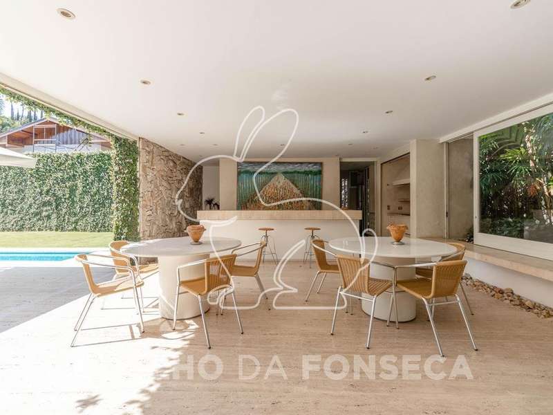 Uma linda residência, terreno bem amplo. Com cinco suítes, sendo a suíte máster com dois closets, com dois banheiros equipados com banheira, seis salas bem amplas e arejadas, adega e área de lazer completa, incluindo uma quadra de tênis com tamanho oficial, além da piscina, salão de festas, sala de ginástica ampla e diversas vagas de garagem, podendo assim receber com toda a segurança os seus moradores.