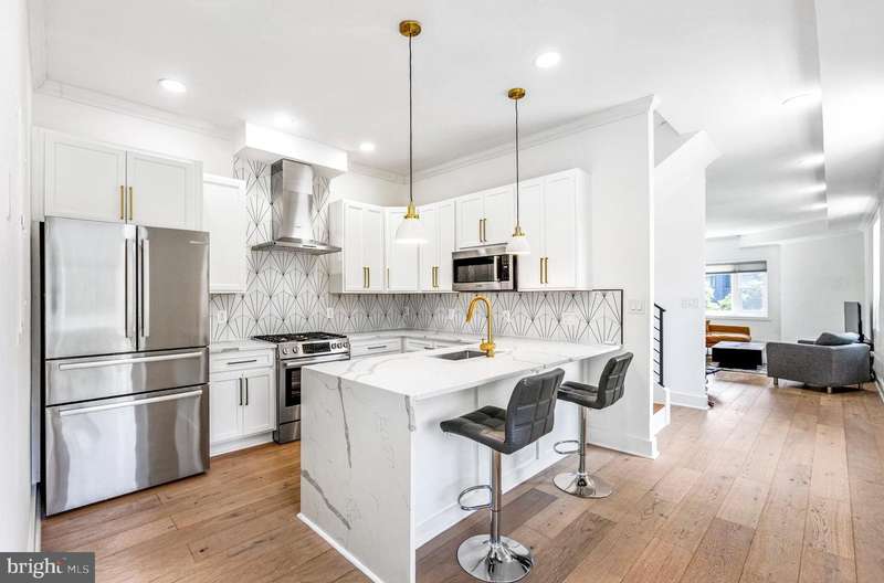 Welcome to 1922 1st St NW, Unit 2 - a breathtaking, penthouse condo offering over 2,250 square feet of luxurious living in the heart of Bloomingdale. This top-tier, end-unit residence impresses with extra-tall ceilings - 10 feet in the living area and a soaring 12 feet in the primary suite - and is flooded with natural light from windows on three sides. Inside, you'll find hardwood floors throughout, solid-core doors, and a chef's kitchen complete with Bosch stainless steel appliances, quartz countertops, and a stunning waterfall island. The home offers three spacious bedrooms, each with custom-designed closets, and three full baths with high-end finishes, plus a convenient half bath on the main level. Storage will never be an issue with closet space unheard of in condo living. The main floor is wired with 4 speakers for streaming music with an amplifier that conveys. Enjoy an expansive rooftop deck with 360-degree panoramic views of DC landmarks like the U.S. Capitol, Washington Monument, National Cathedral, and more. A wet bar adjacent to the rooftop and a dedicated parking space make this home ideal for entertaining. Located just steps from Bloomingdale favorites such as Red Hen, Boundary Stone, and Big Bear cafe, and with easy access to Logan Circle, U Street, and downtown DC, this one-of-a-kind residence delivers both modern luxury and classic neighborhood charm. This is one you have to see in person!
