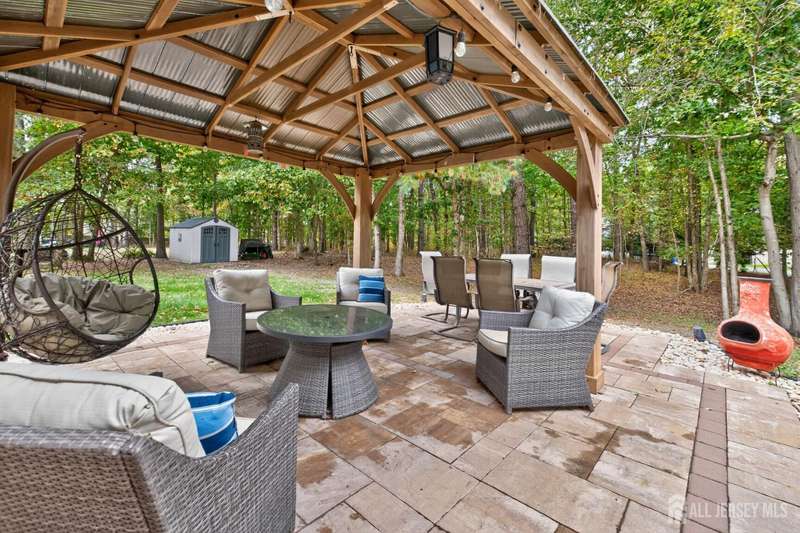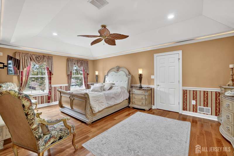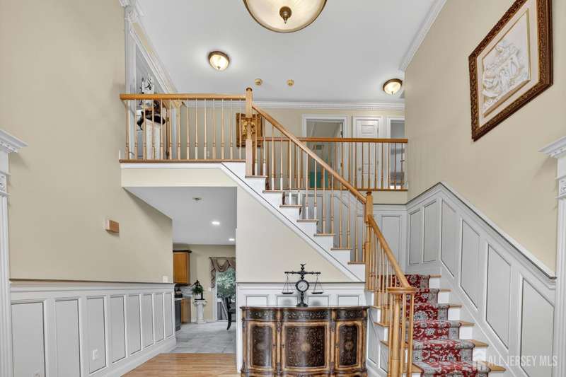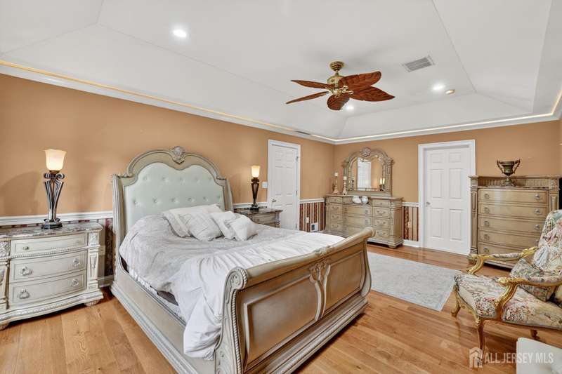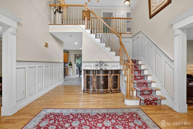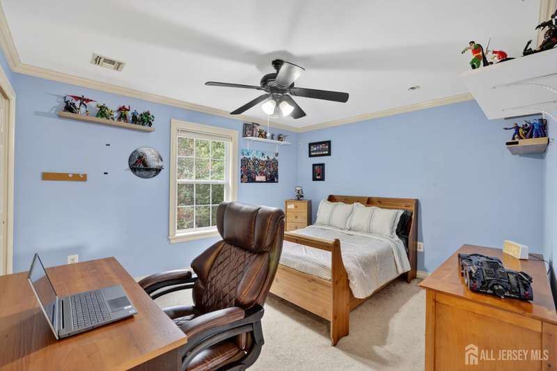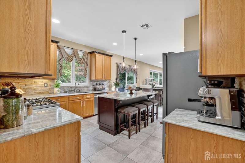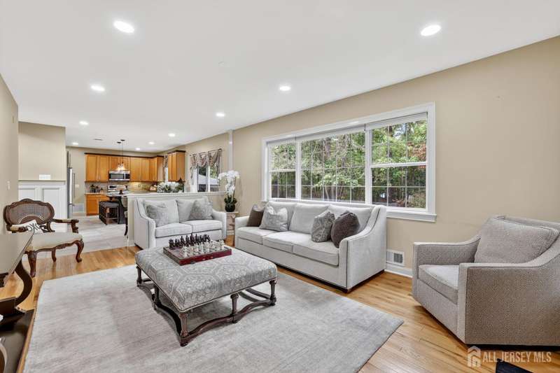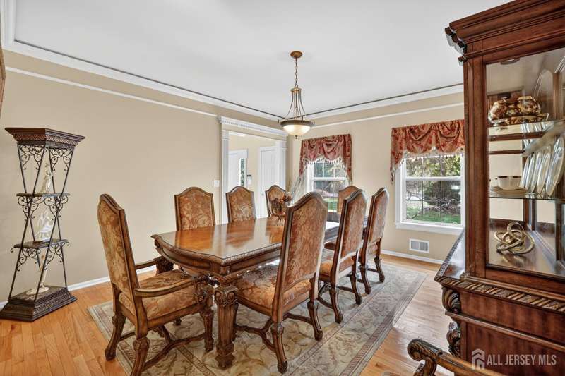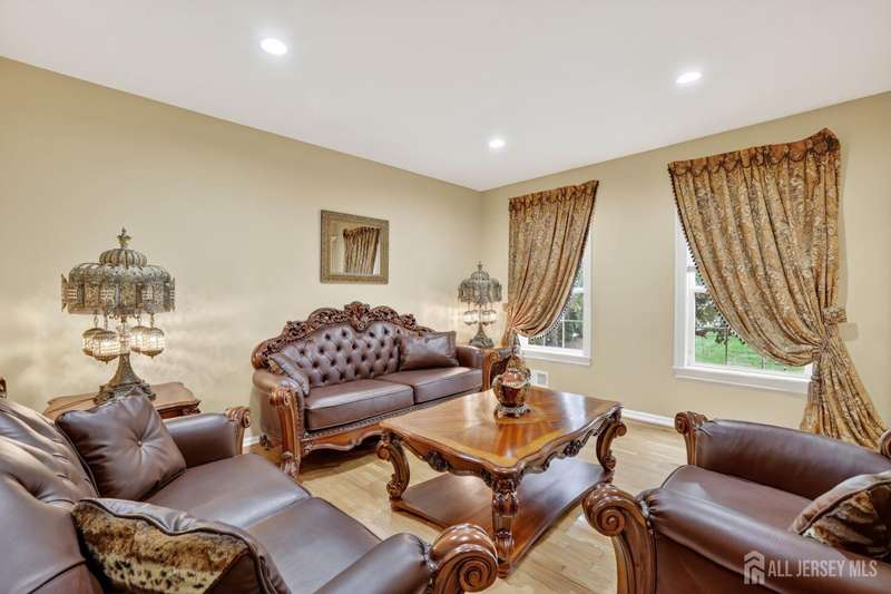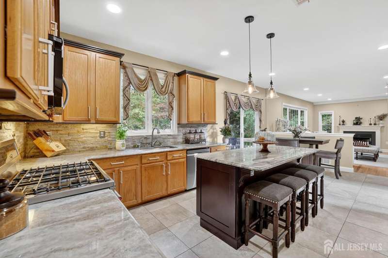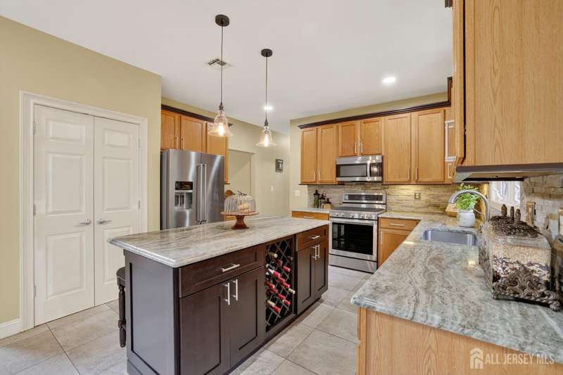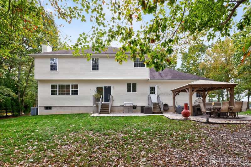 Nestled in a tranquil neighborhood, this elegant colonial home showcases five generously sized bedrooms and 2.5 bathsincluding a versatile first-floor guest bedroom. At the heart of the home lies a stunning gourmet kitchen, complete with marble countertops, a center island with built-in wine rack, pendant lighting, and sleek stainless steel appliances. The kitchen opens seamlessly into a sun-drenched family room anchored by a cozy gas fireplace, creating the perfect space for everyday living and entertaining. Rich hardwood floors span both levels, complemented by custom moldings that frame the dramatic 16-foot foyer and staircase. Throughout the home, extensive mood lighting and recessed fixtures create a warm, inviting ambiance in every room. Additional highlights include a central vacuum system, a beautifully landscaped backyard with a paver patio and gazebo ideal for outdoor gatherings, and an underground sprinkler system for effortless maintenance. This move-in ready residence blends timeless charm with modern upgrades offering comfort, style, and convenience for today's lifestyle.